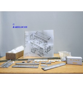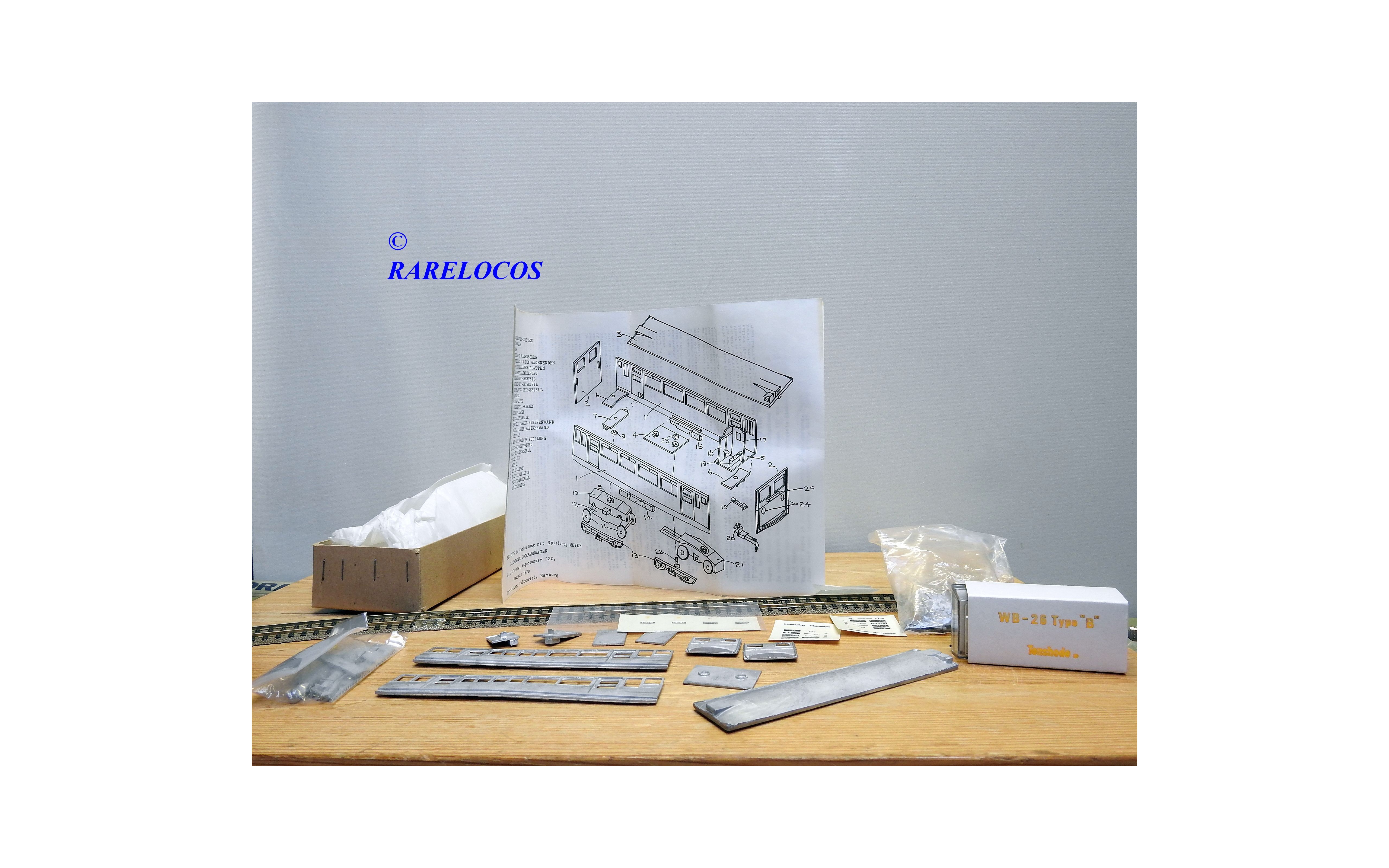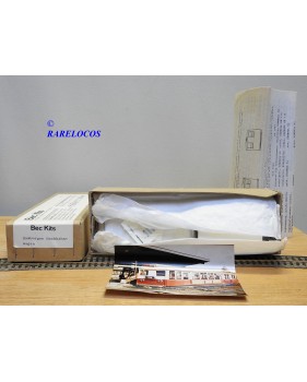 Rare modèle réduit à construire ( kit ) en métal blanc permettant la réalisation d' une voiture motorisée du métro de Hambourg ( Hamburger Hochbahn ) dans les années 20, notide et décalcomanies présents, un bogie motorisé Tenshodo WB-26 type B, boîte d' origine en excellent état.
