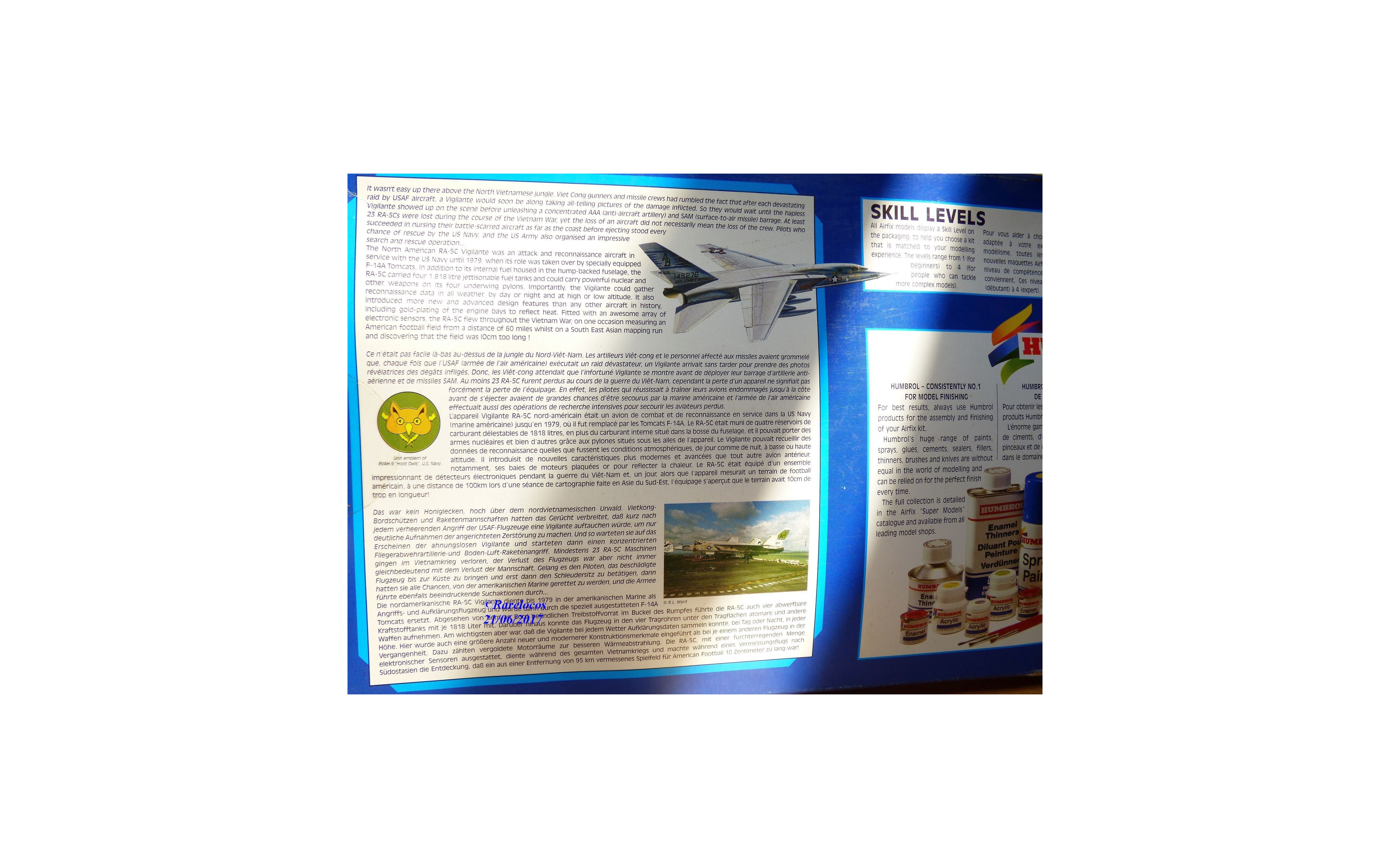 Maquette à construire ( kit ) en plastique à l'échelle du 1/ 72ème de l'avion de reconnaissance ( ex bombardier nucléaire ! ) NORTH AMERICAN RA-5C Vigilante, décalcomanies pour 2 versions ( USS Nimitz ou USS John F Kennedy ), boîte d'origine encore scellée.
