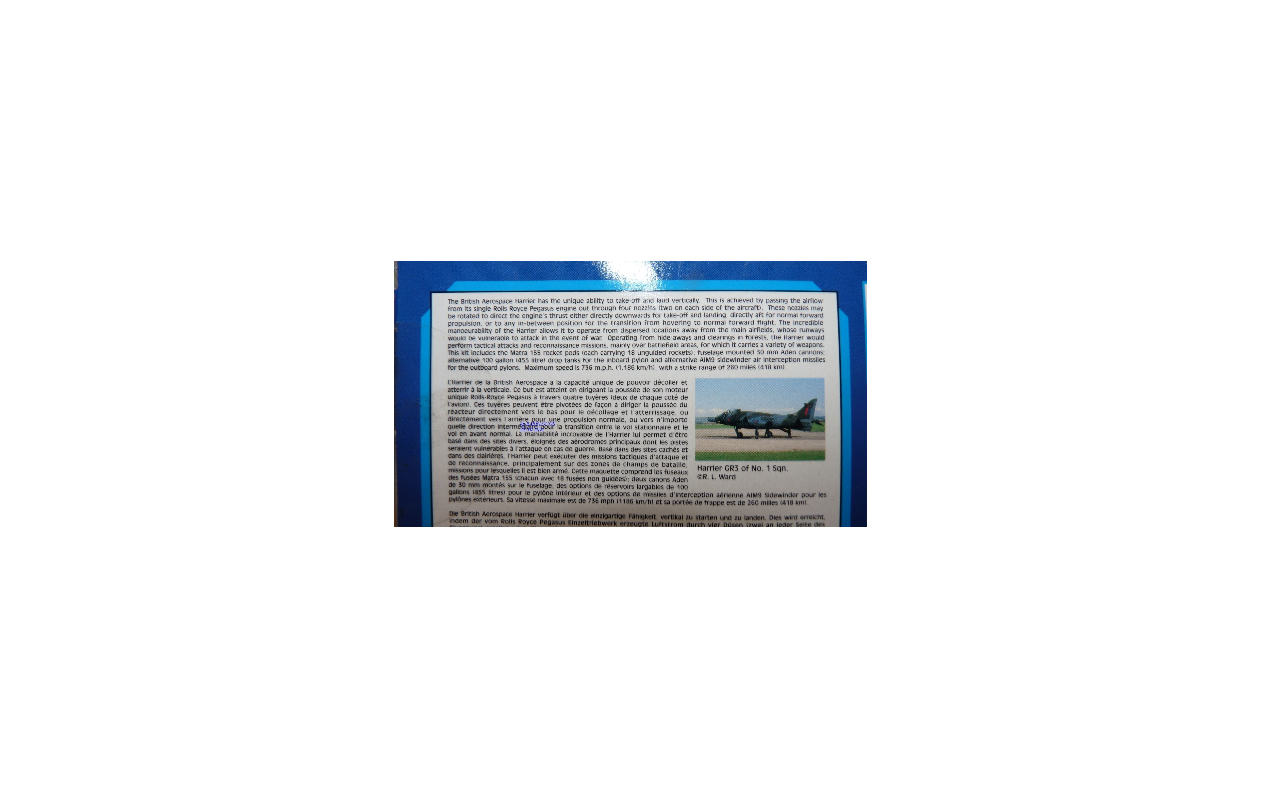 Maquette à construire ( kit ) de l'avion d'attaque au sol à décollage vertical British Aerospace HARRIER GR 3.