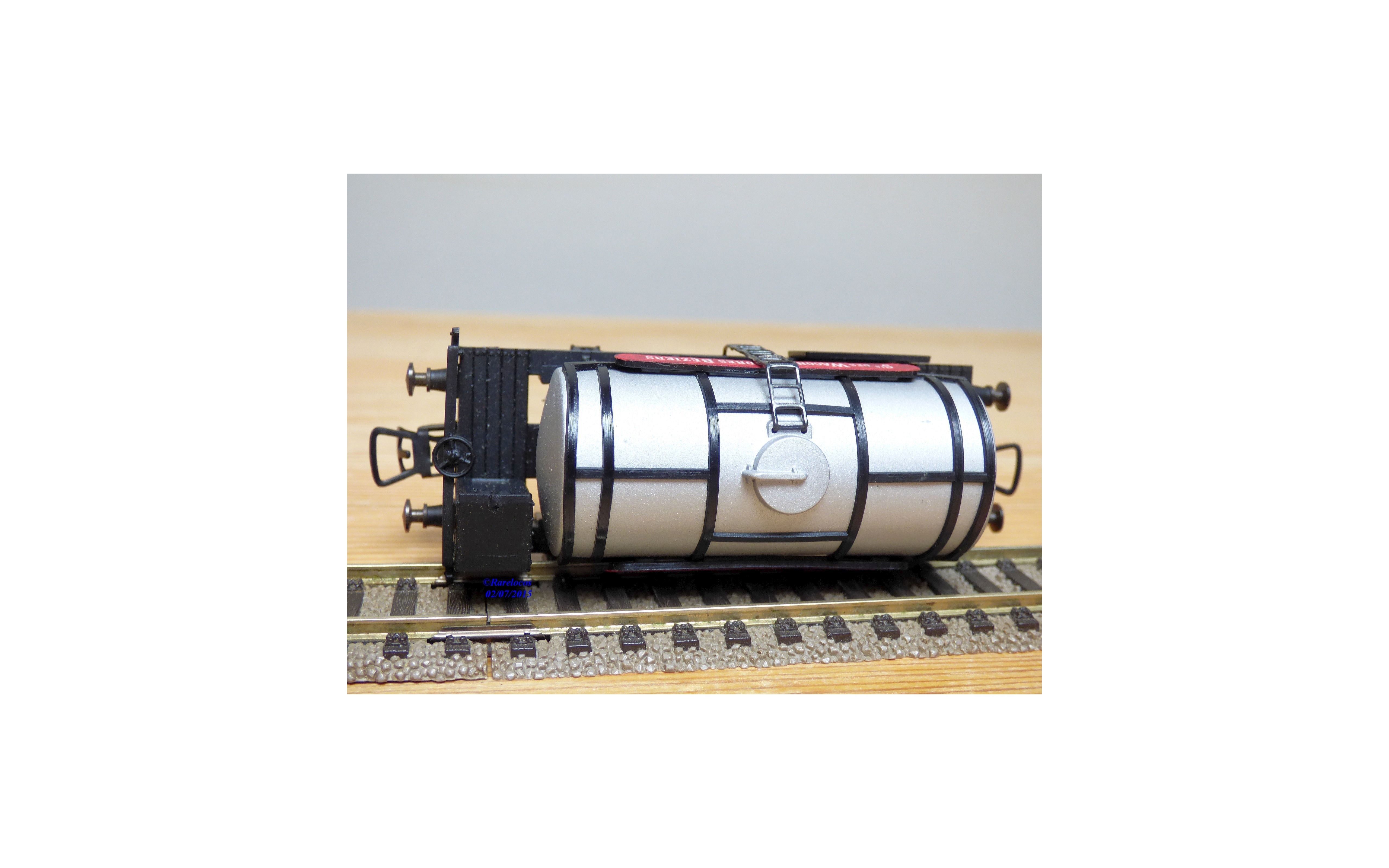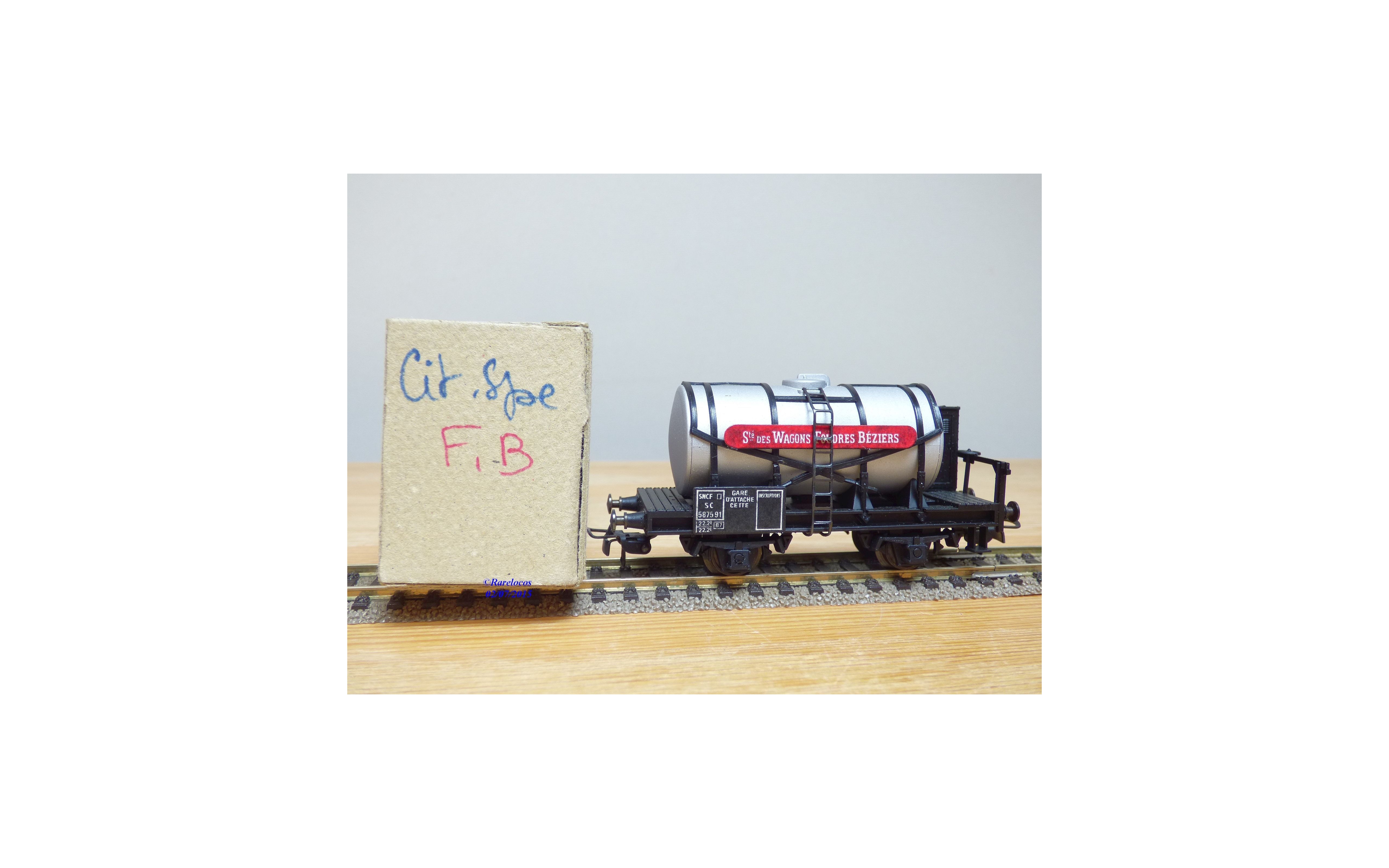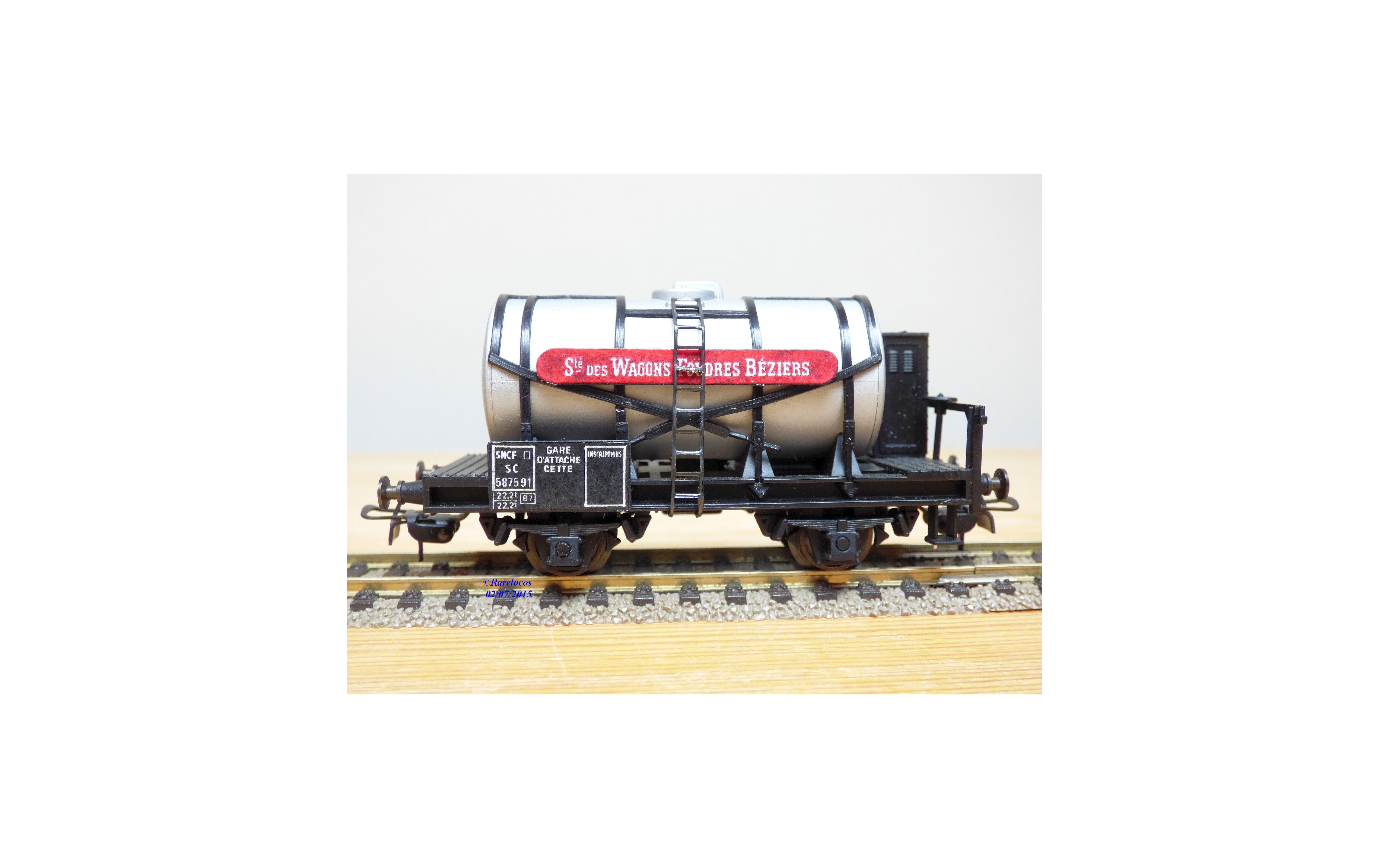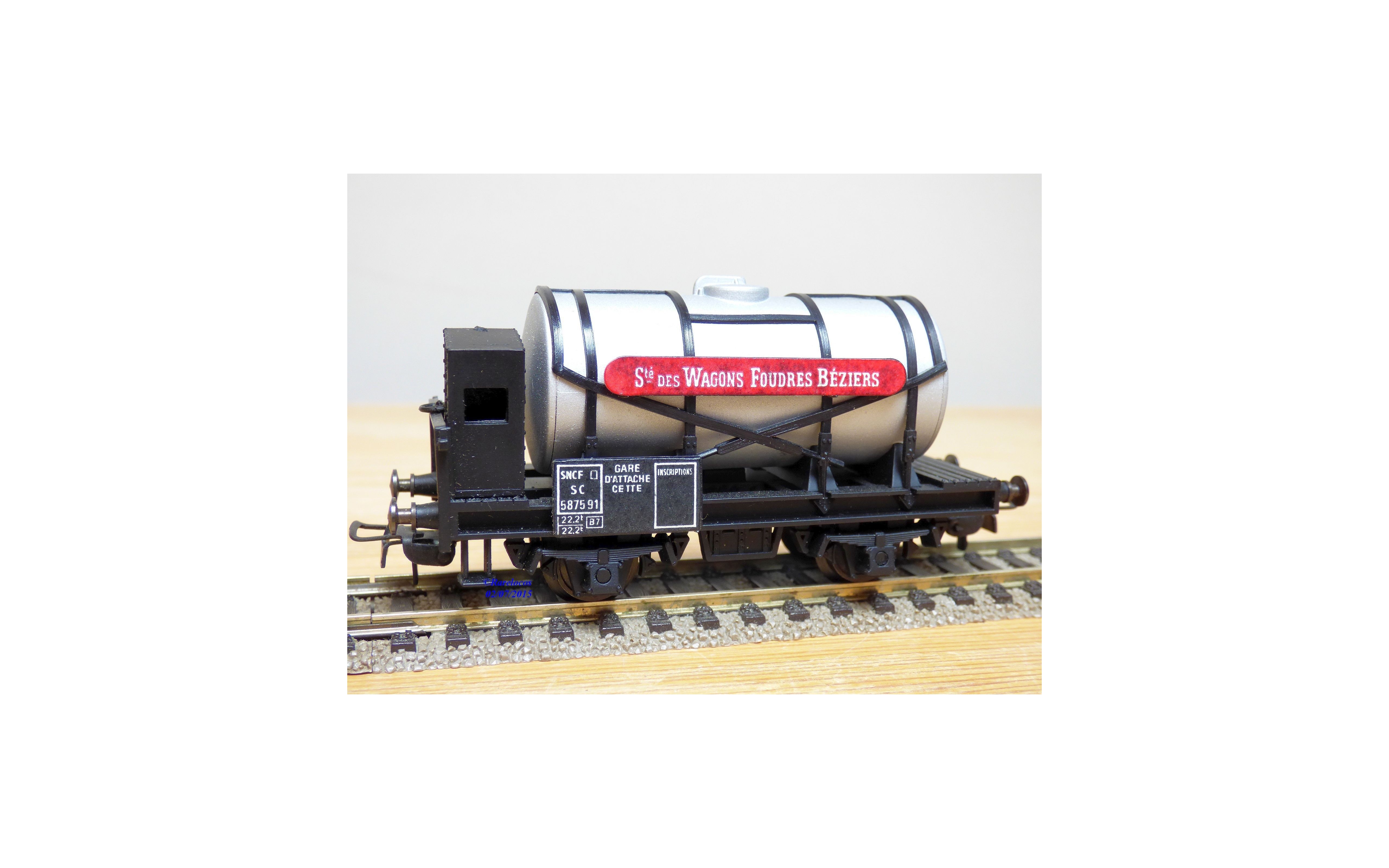 Rare wagon foudre à 2 essieux à guérite de serre freins type SC des chemins de fer français ( SNCF ), livrée gris argent sur chassis noir avec marquages Société des Wagons Foudres de Béziers, boîte d'origine en excellent état.