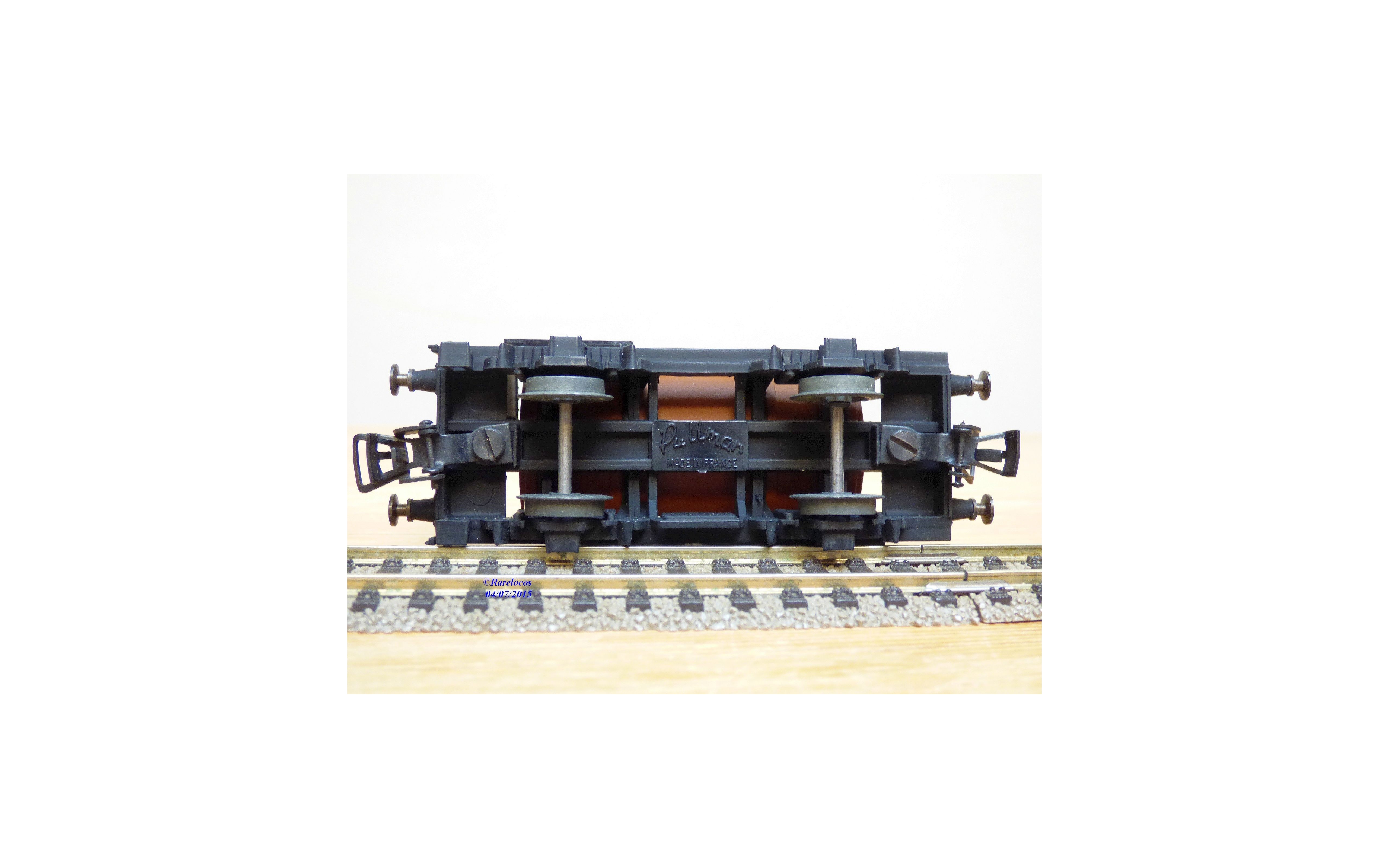 Rare wagon foudre à 2 essieux à guérite de serre freins type SC des chemins de fer français ( SNCF ), livrée brune sur chassis noir avec marquages S.P.N. Narbonne, boîte d'origine en bon état ( un rabat déchiré, présent).