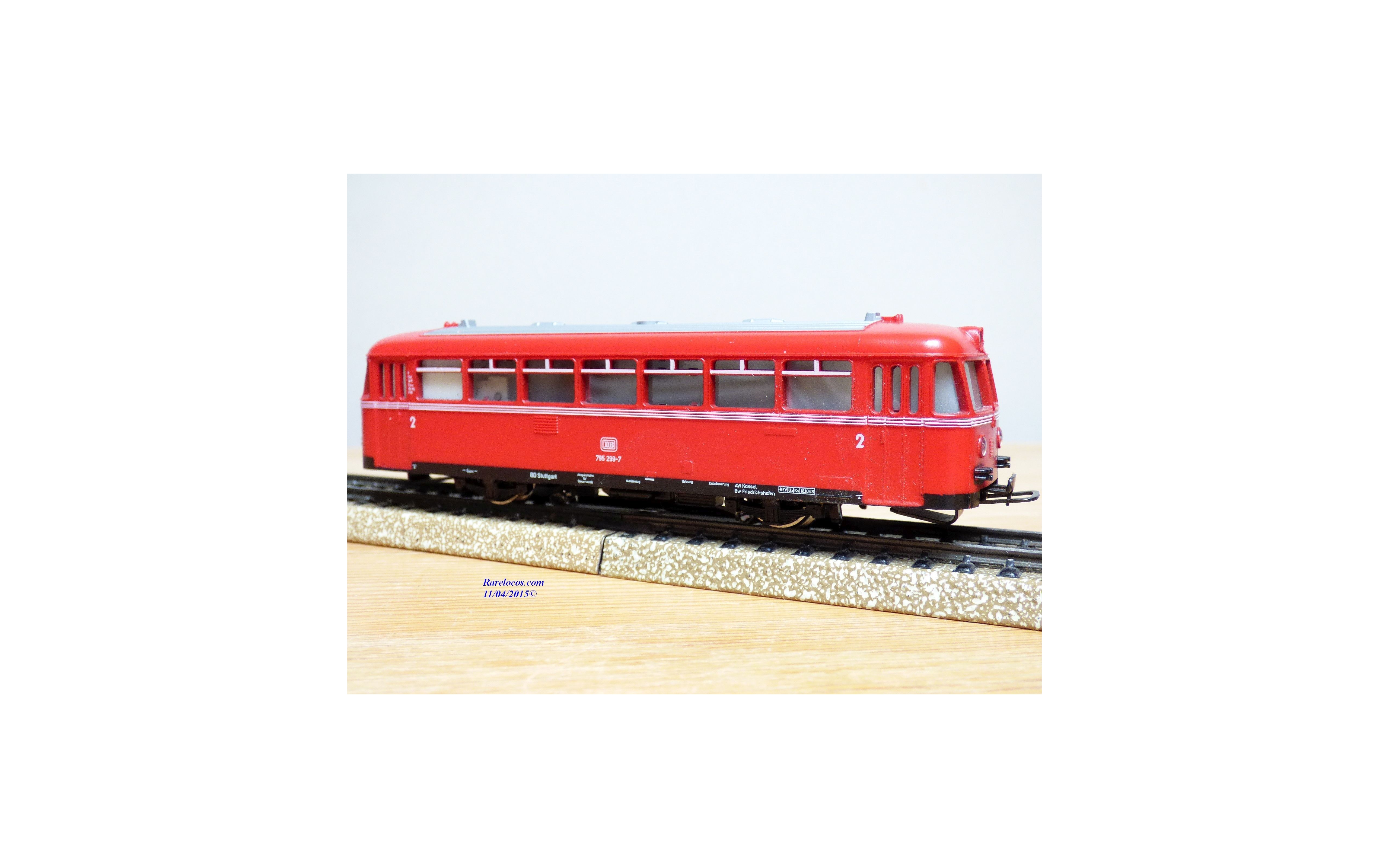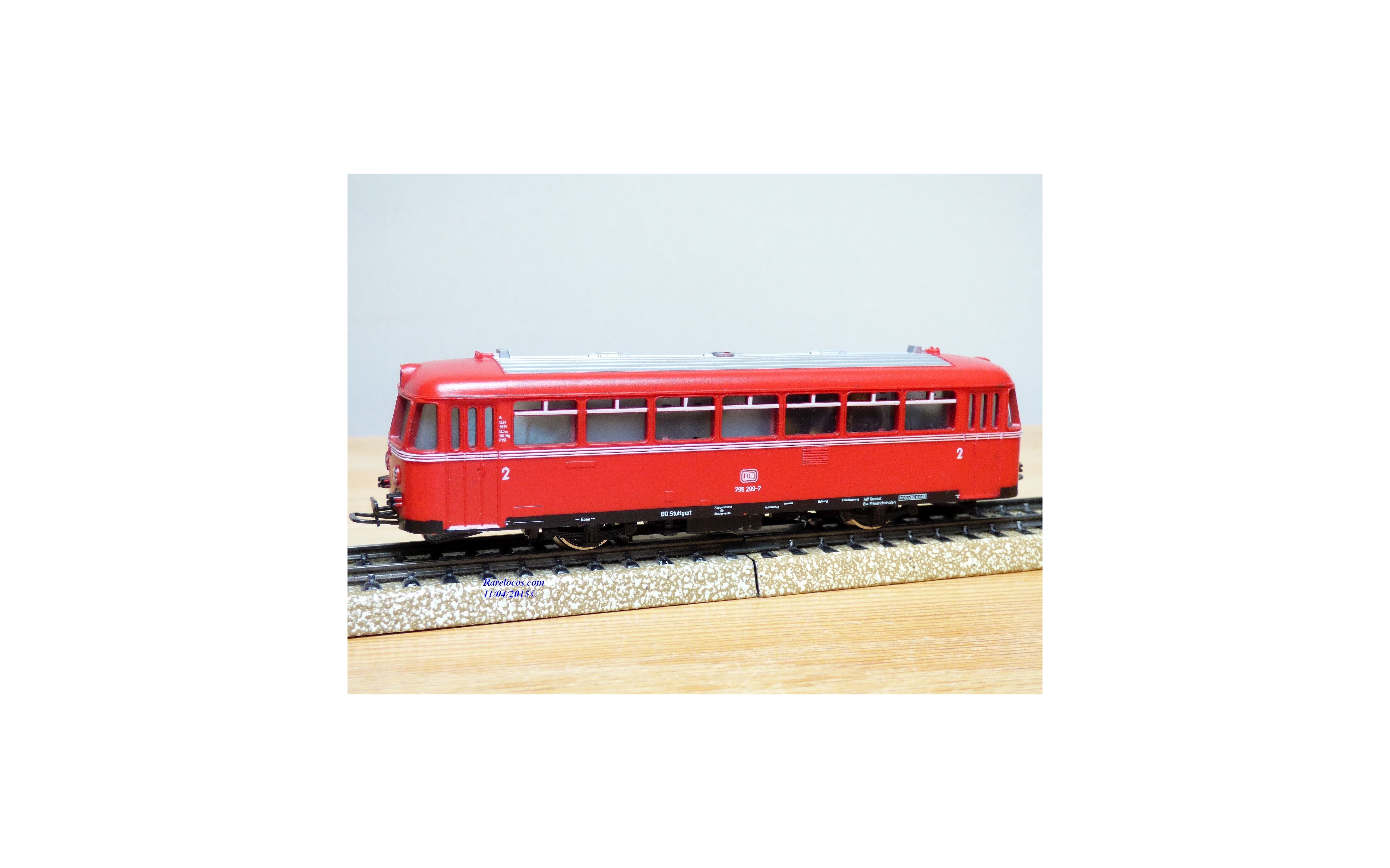 Petit autorail série 795 dit Schienenbus des chemins de fer allemands ( DB ) , livrée lie de vin à toit gris argent, éclairage intérieur, immatriculation : 795 299-7, notice présente, emballage d'origine en excellent état .