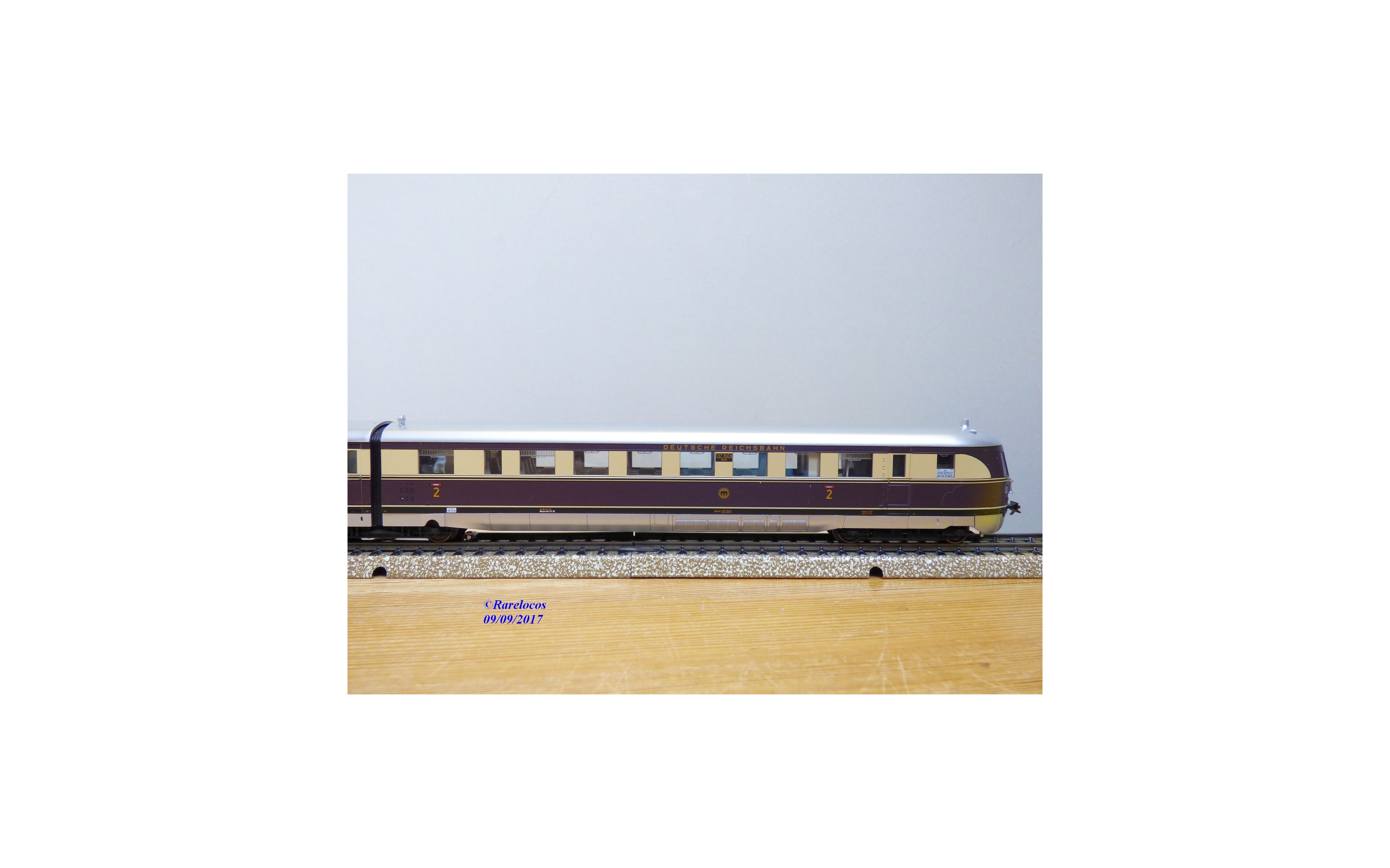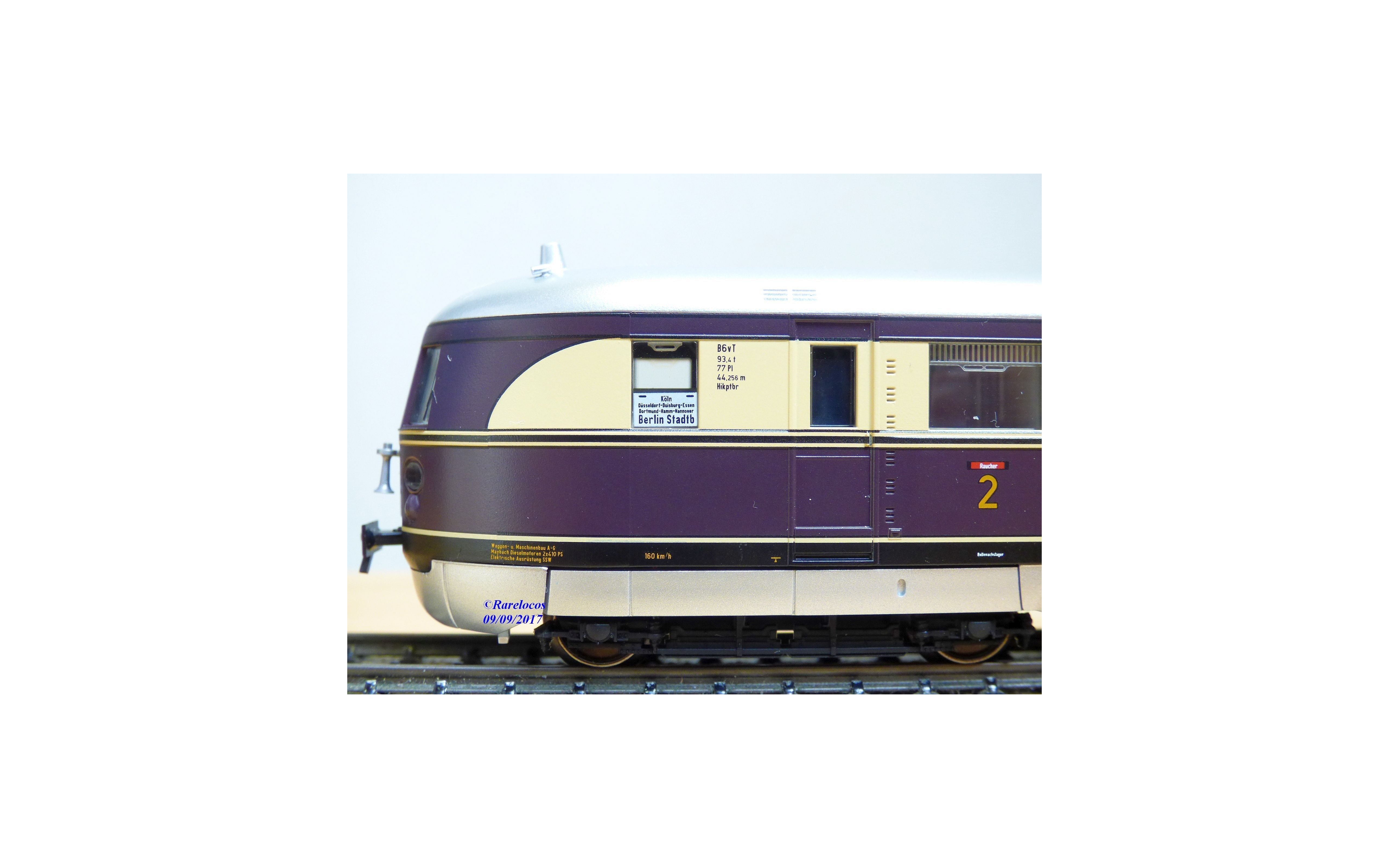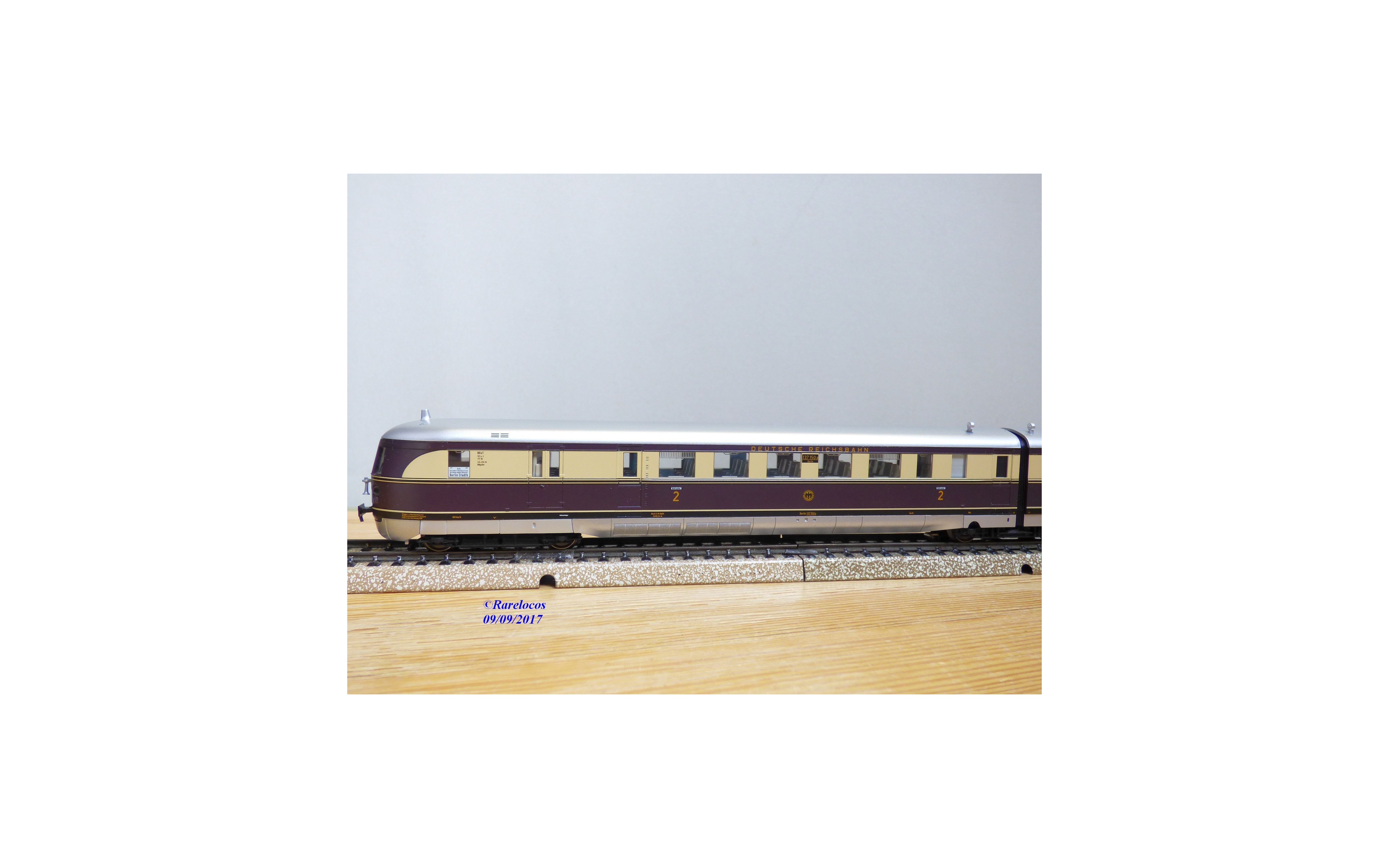 Automoteur rapide ( Schnelltriebwagen ) série VT 137 des chemins de fer allemands ( DRG ), baptisé # Fliegender Hamburger # ( Hambourgeois volant, ndlt), tout métal, digital, aménagements intérieurs, livrée violette et crême, notices présentes, emballage d'origine en bon état.