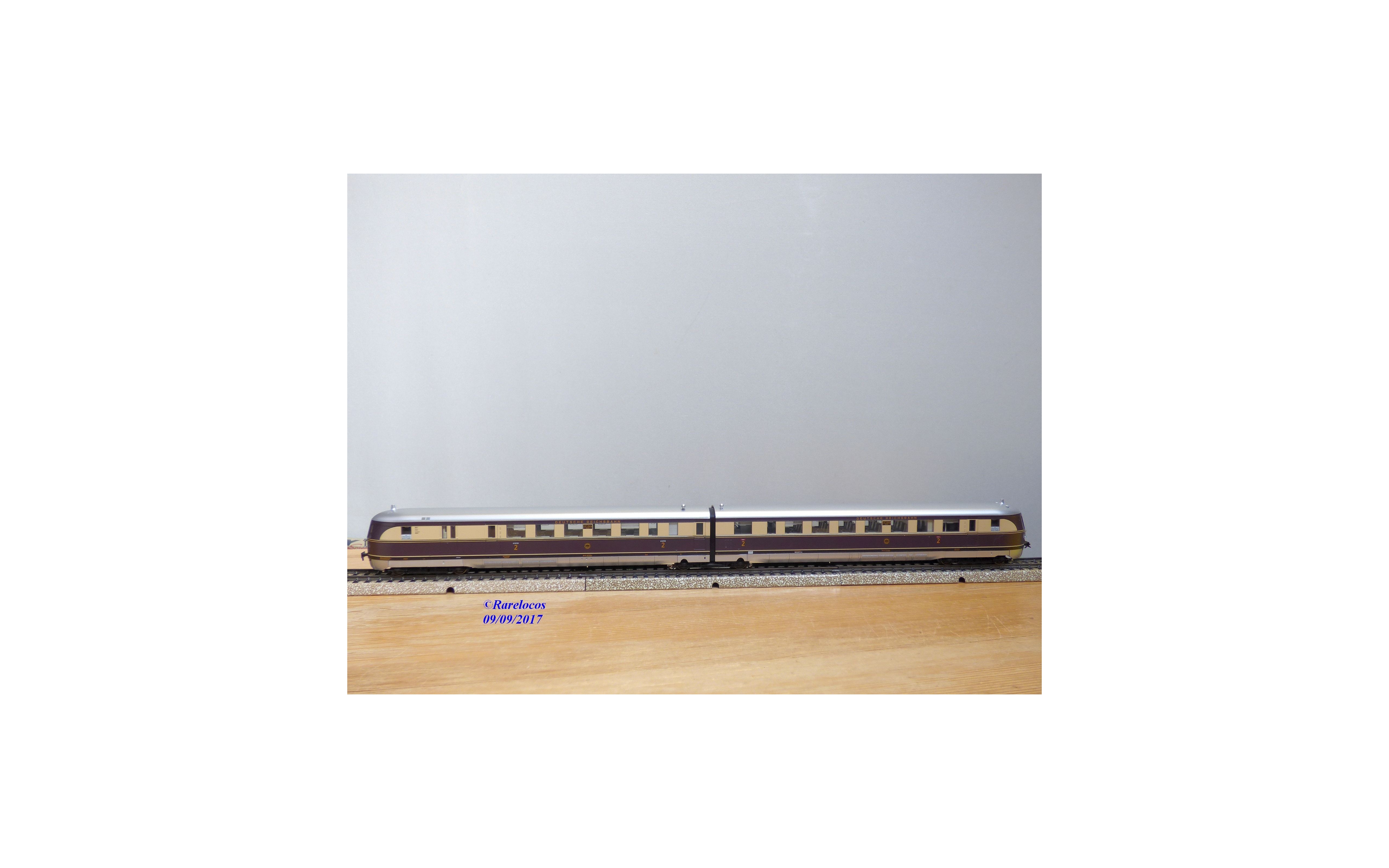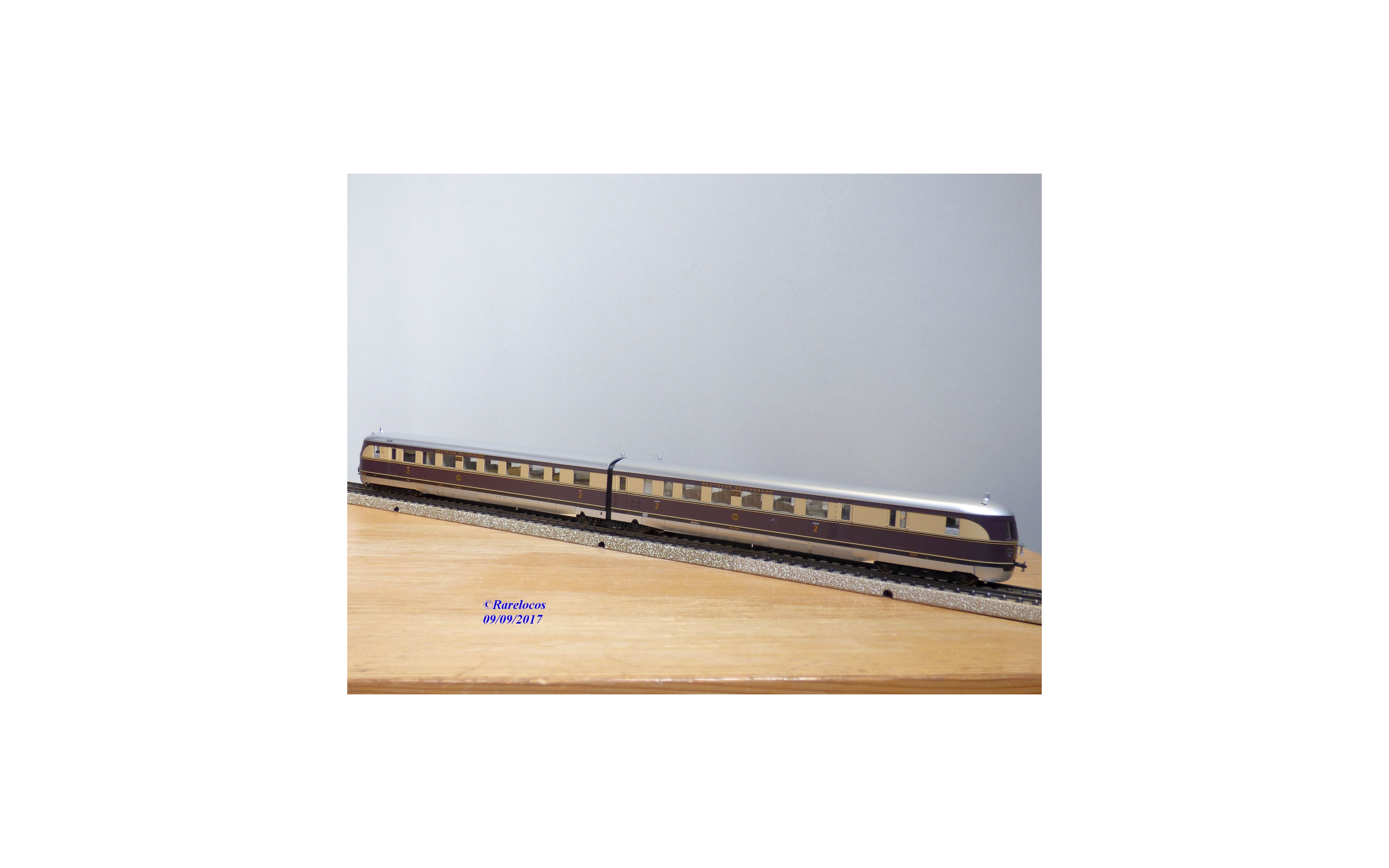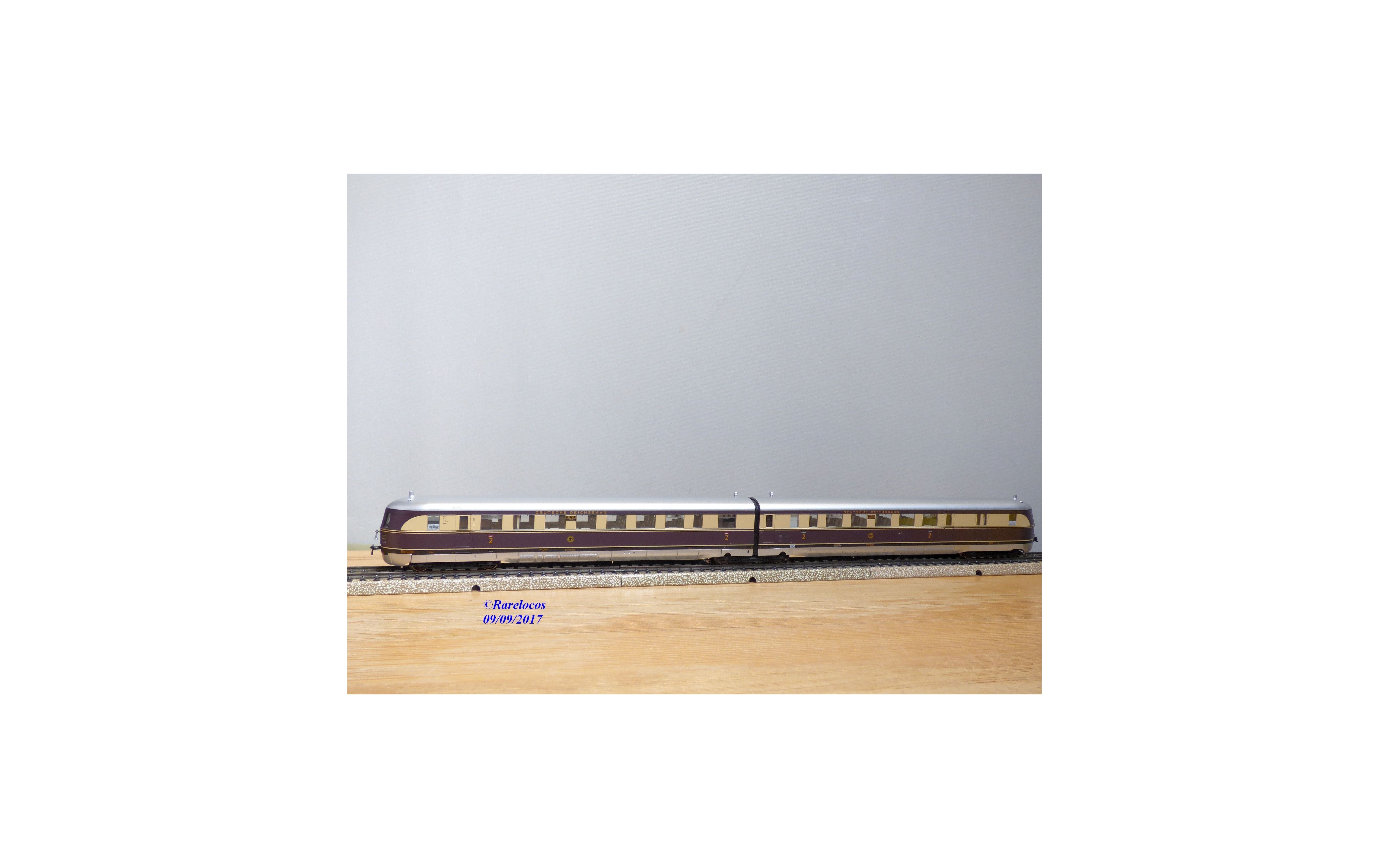 Automoteur rapide ( Schnelltriebwagen ) série VT 137 des chemins de fer allemands ( DRG ), baptisé # Fliegender Hamburger # ( Hambourgeois volant, ndlt), tout métal, digital, aménagements intérieurs, livrée violette et crême, notices présentes, emballage d'origine en bon état.