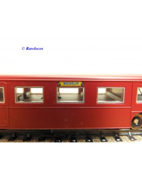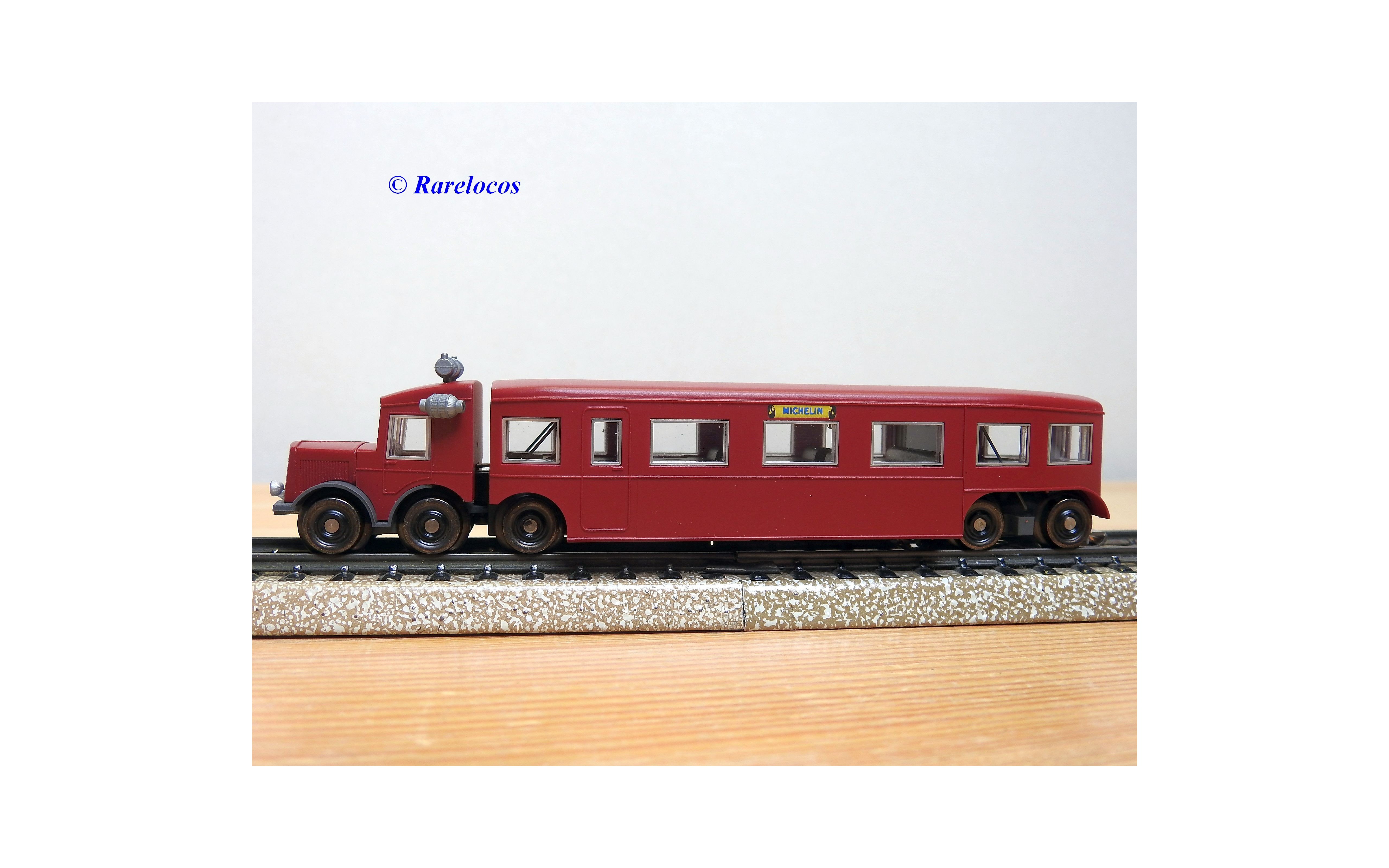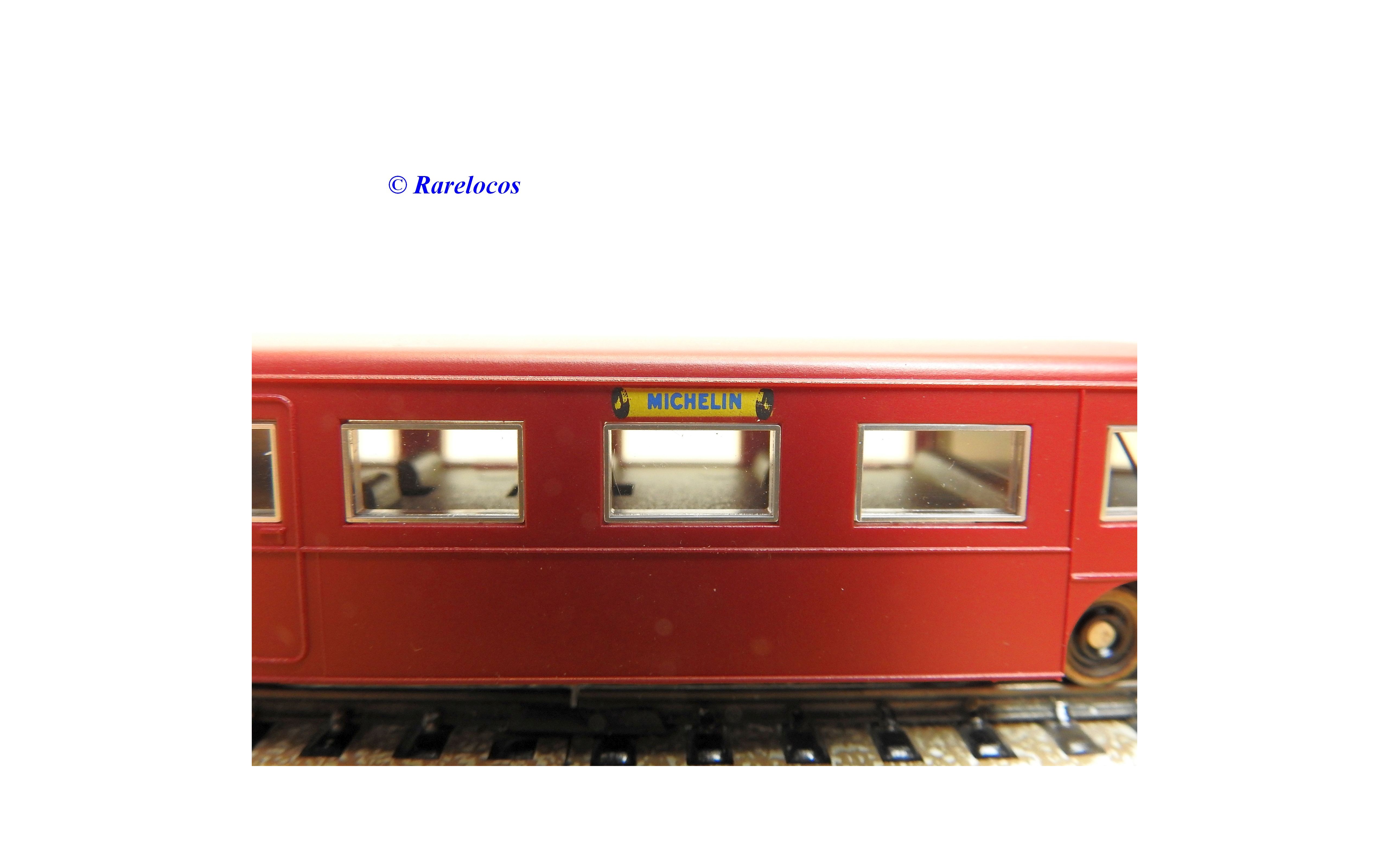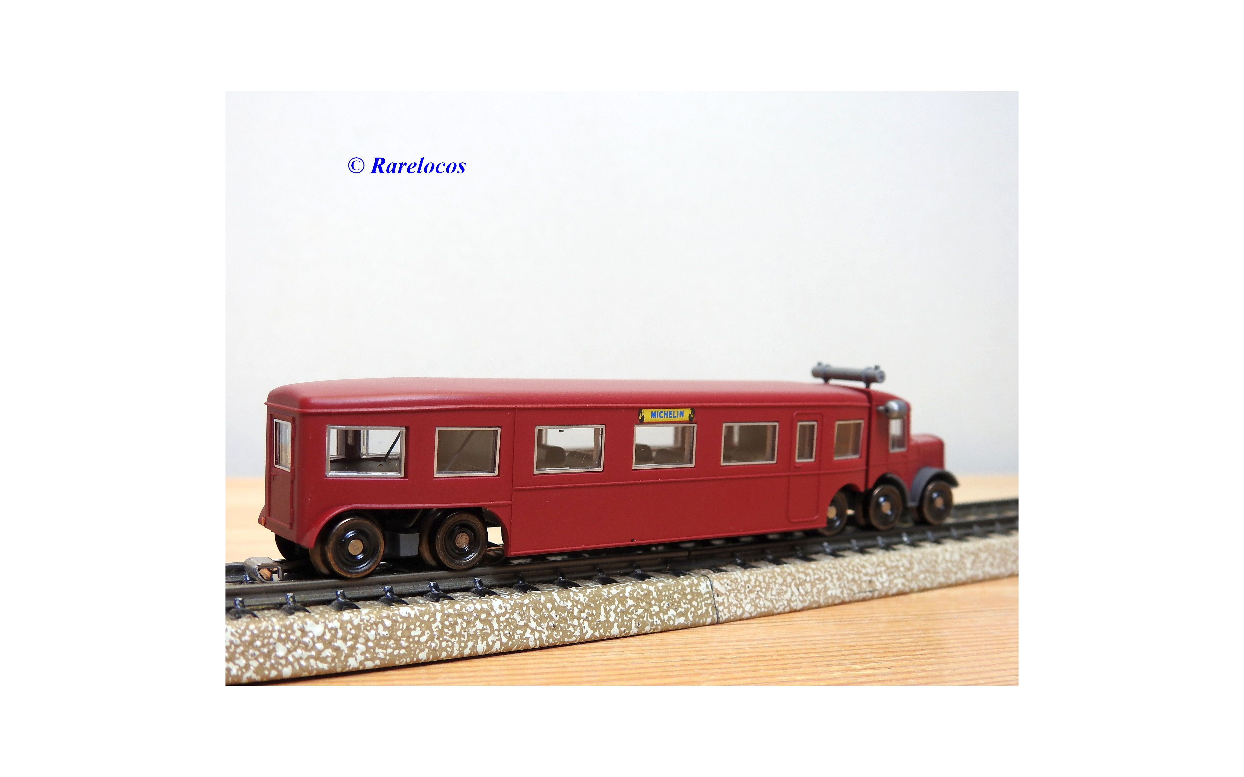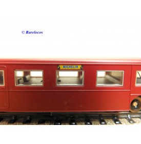Autorail sur pneus dit " Micheline " des chemins de fer français , livrée lie de vin avec marquages MICHELIN, aménagement et éclairage intérieur ( testé OK ), notice présente, boîte d'origine en excellent état .