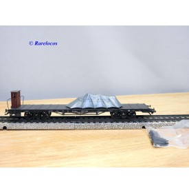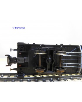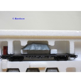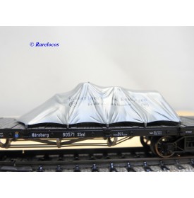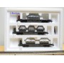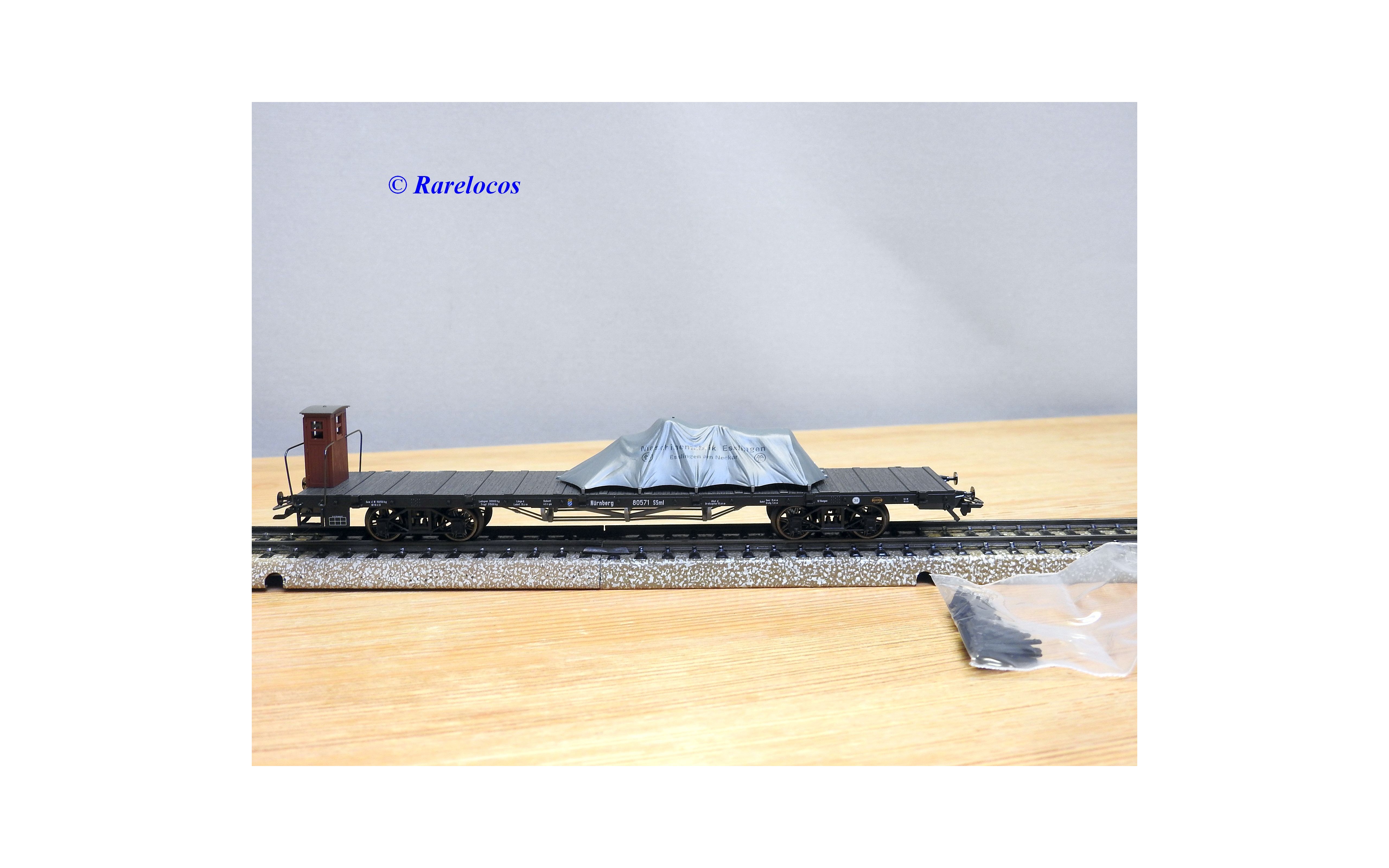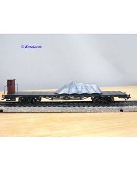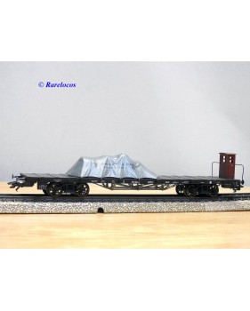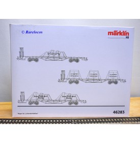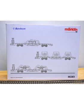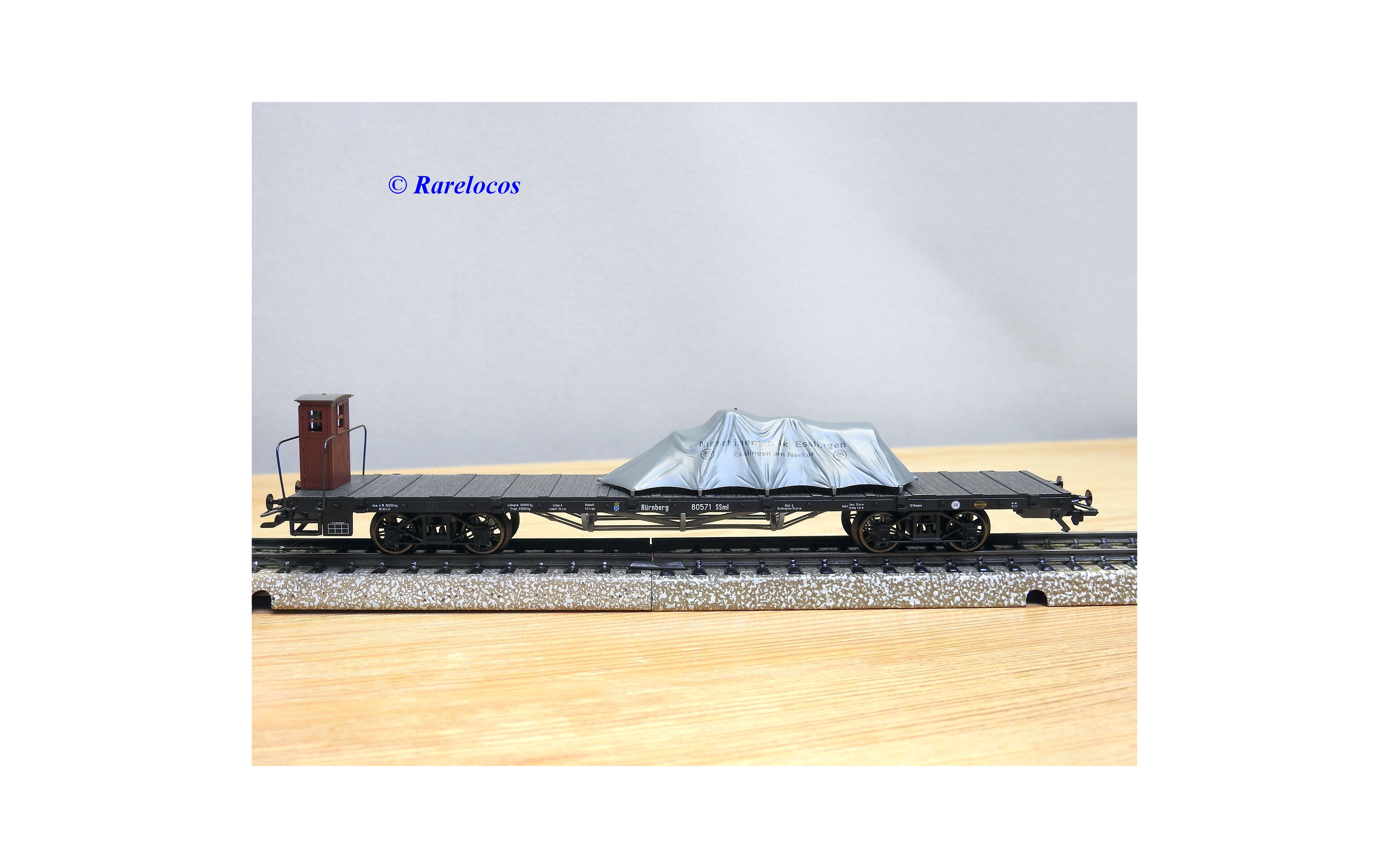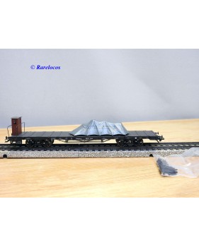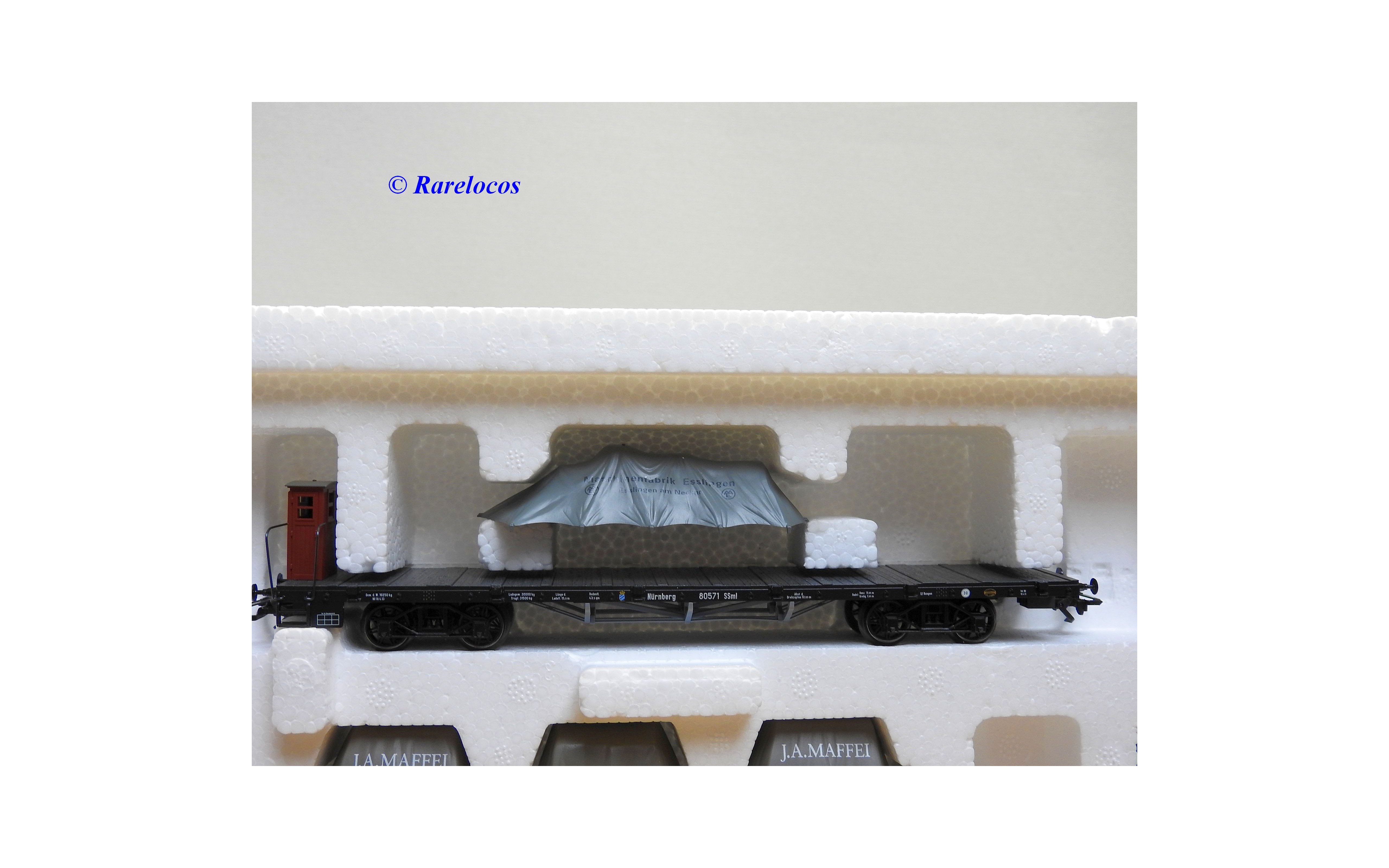 Coffret représentant une rame de transport de pièces de locomotives de 3 wagons plats à ranchers doubles type Ssml des chemins de fer allemands ( K.B.Sts.B.: chemins de fer bavarois ), attelages à élongation, marquages des bâches : Krauss & Comp., Lokomotivfabrik Esslingen et J.A. Maffei, immatriculations différentes, boîte d'origine en bon état.