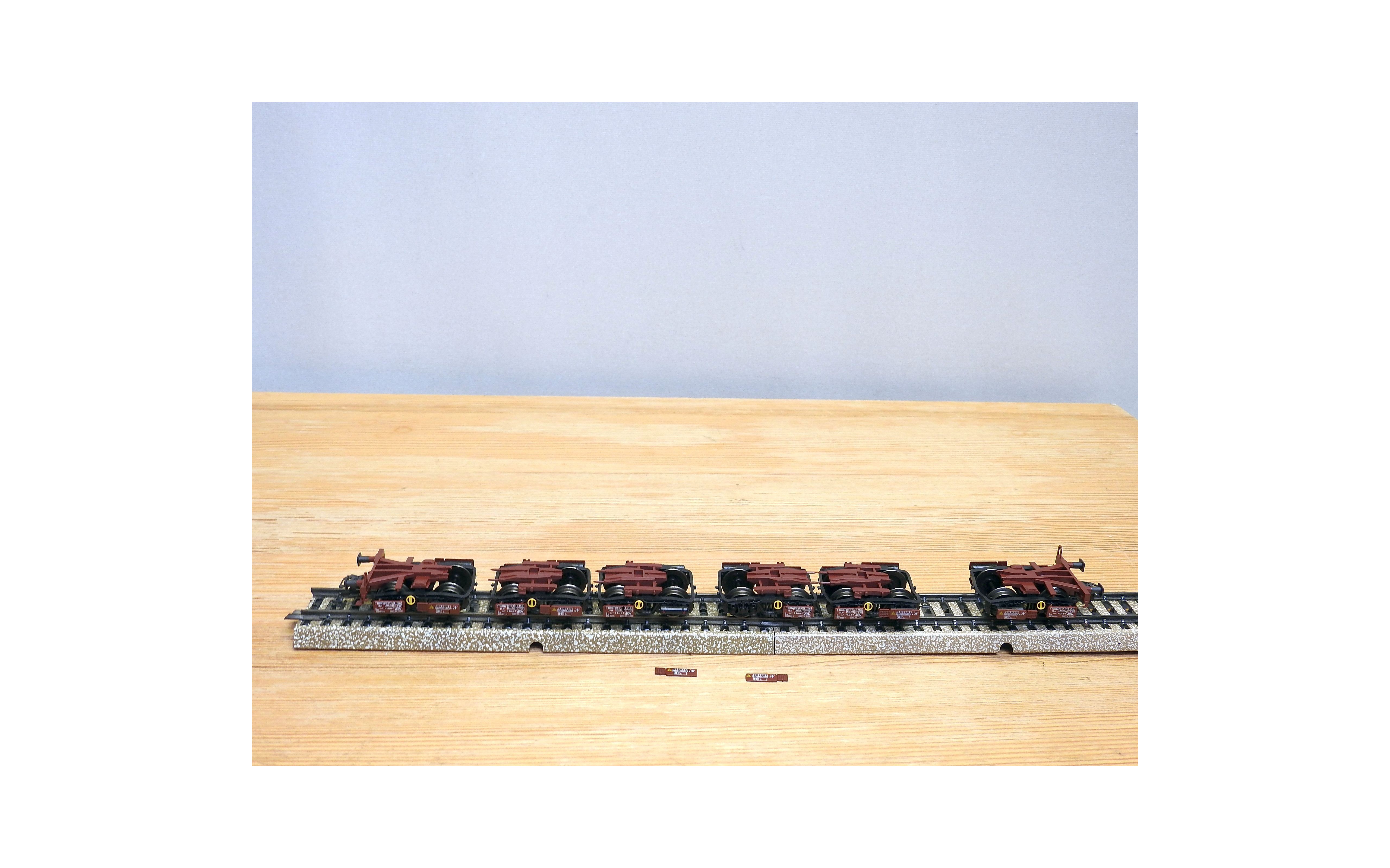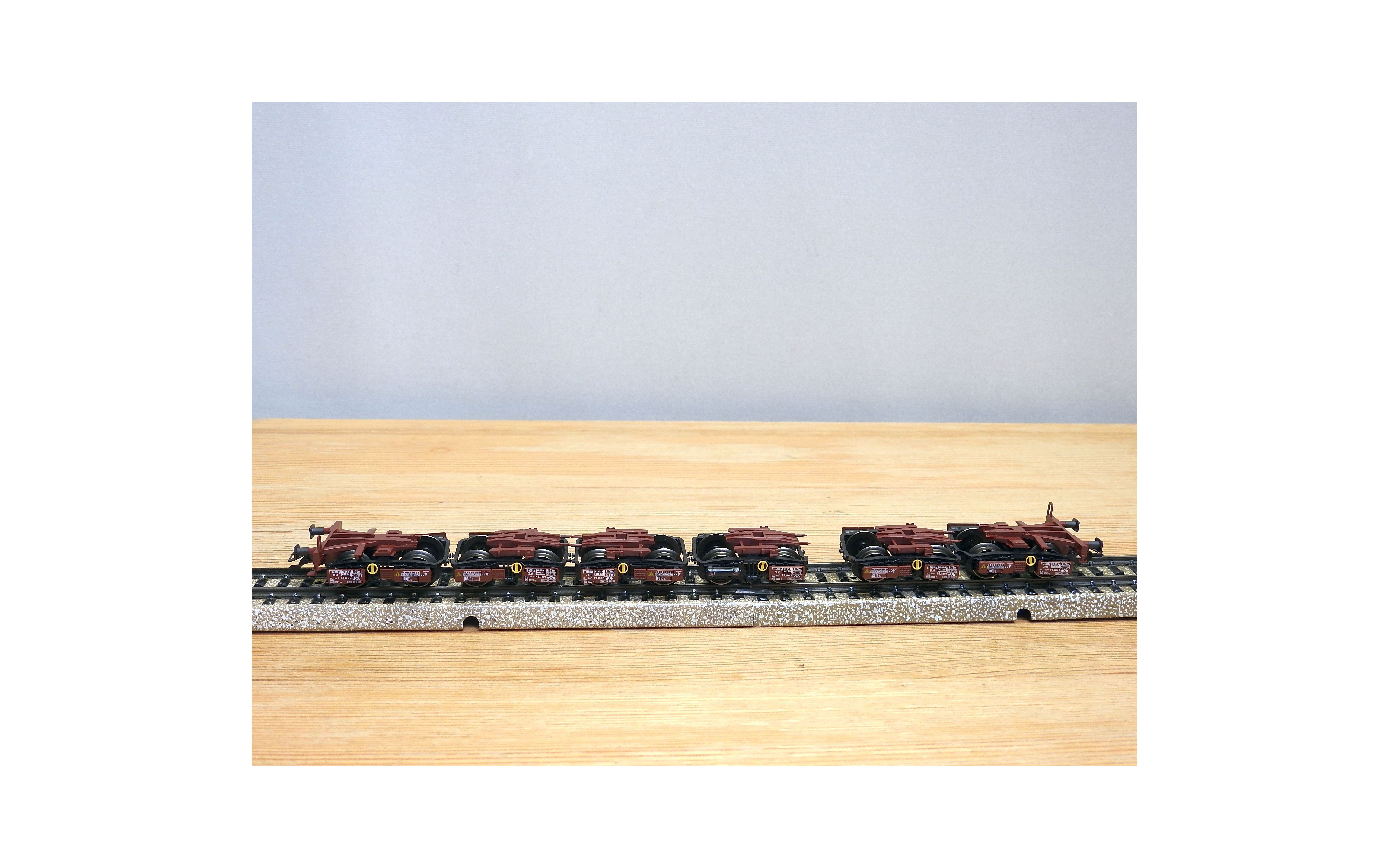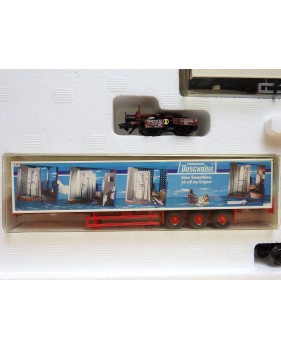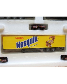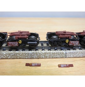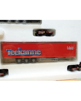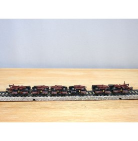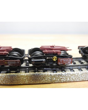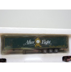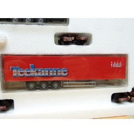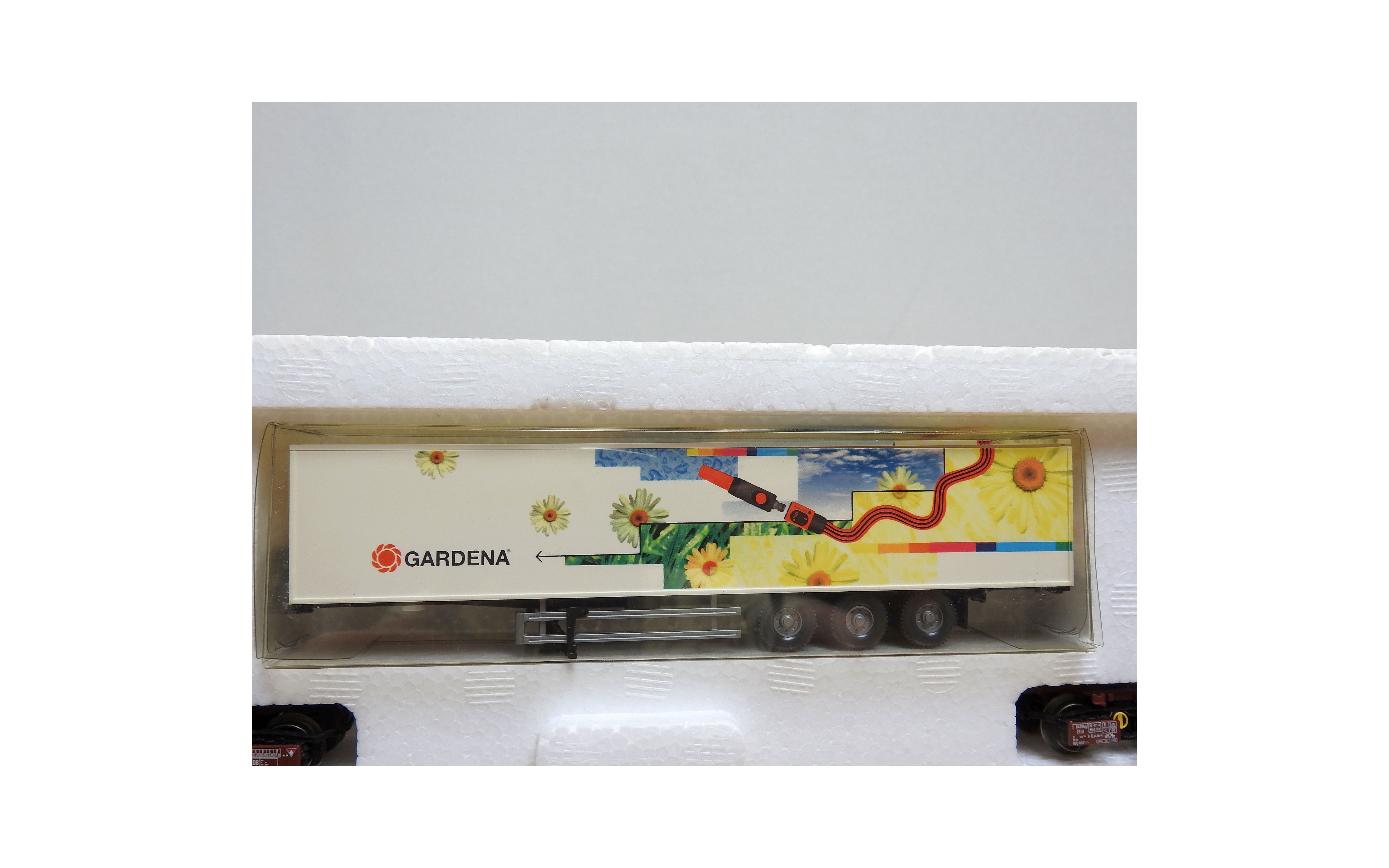 Coffret de 6 bogies et 5 semi remorques type Us 676 des chemins de fer allemands ( DB - AG ), livrée aux couleurs de AFTER EIGHT, GARDENA, DUSCHOLUX, NESQUIK et TEEKANNE, boîte d'origine en très bon état.