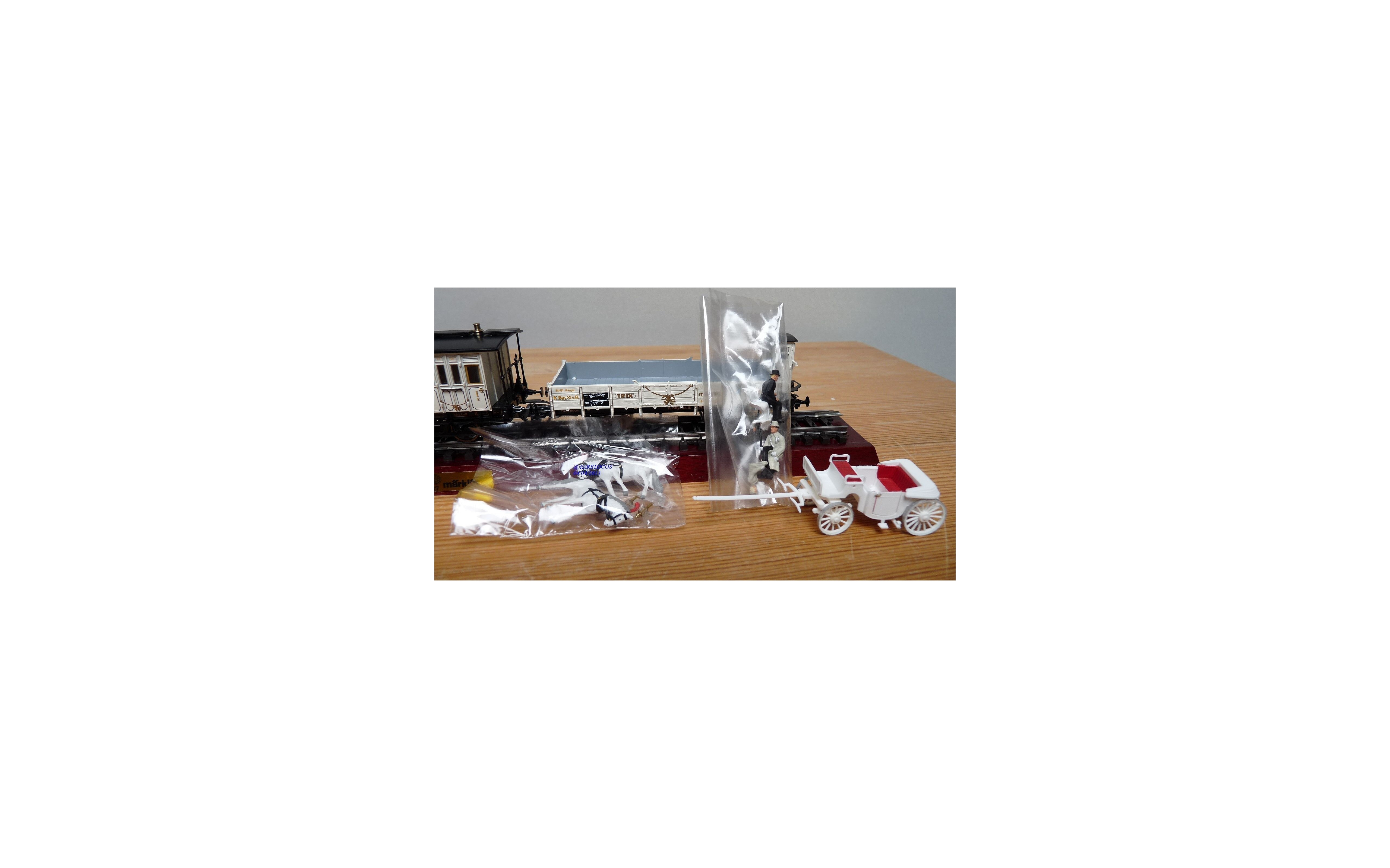 - un attelage de calèche ( Preiser ) comprenant chevaux et personnages