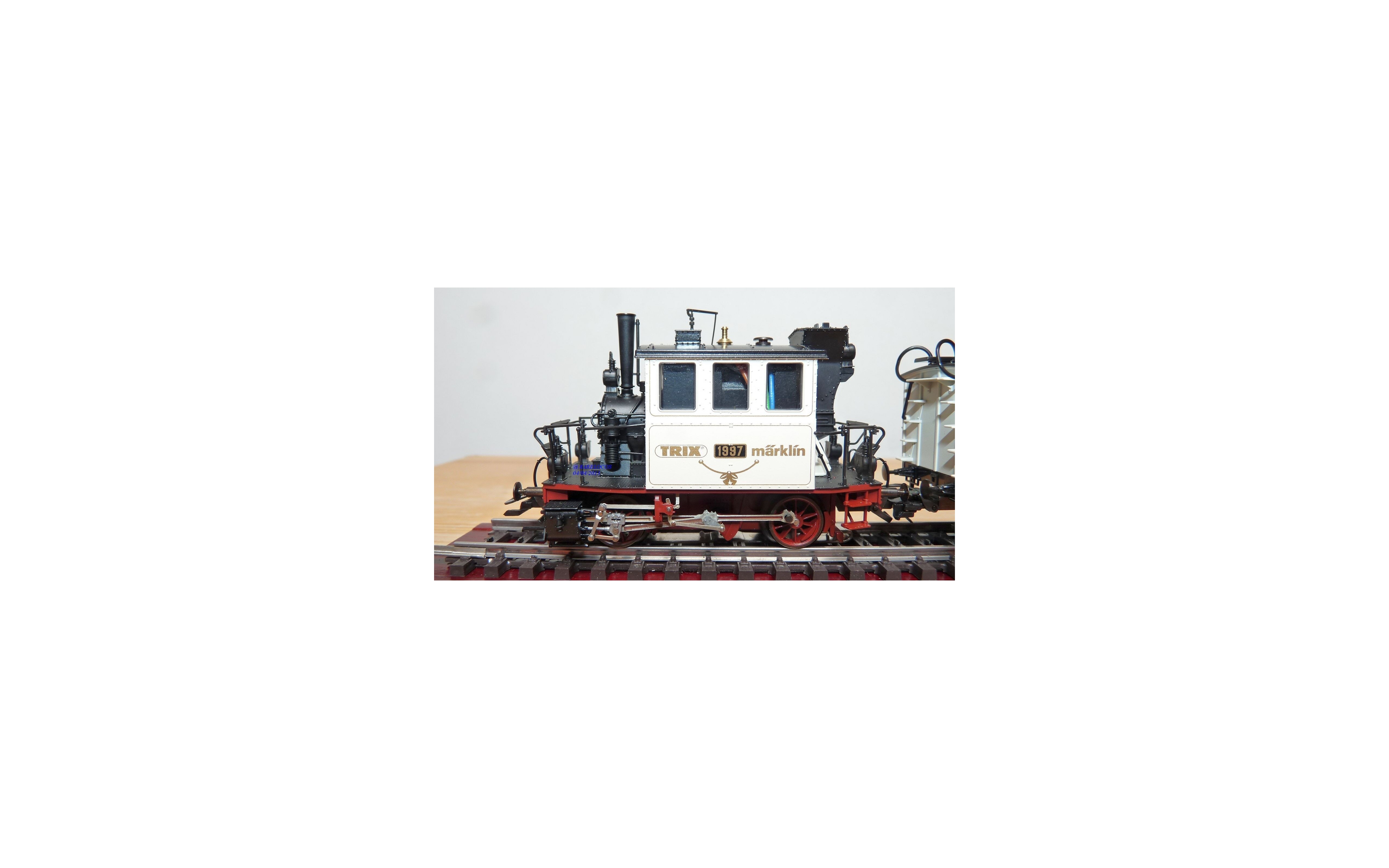 - une locomotive 020T type Ptl 2/2 dite Glaskasten en livrée blanche à liserés noirs avec inscriptions dorées Trix Märklin 1997, système Delta