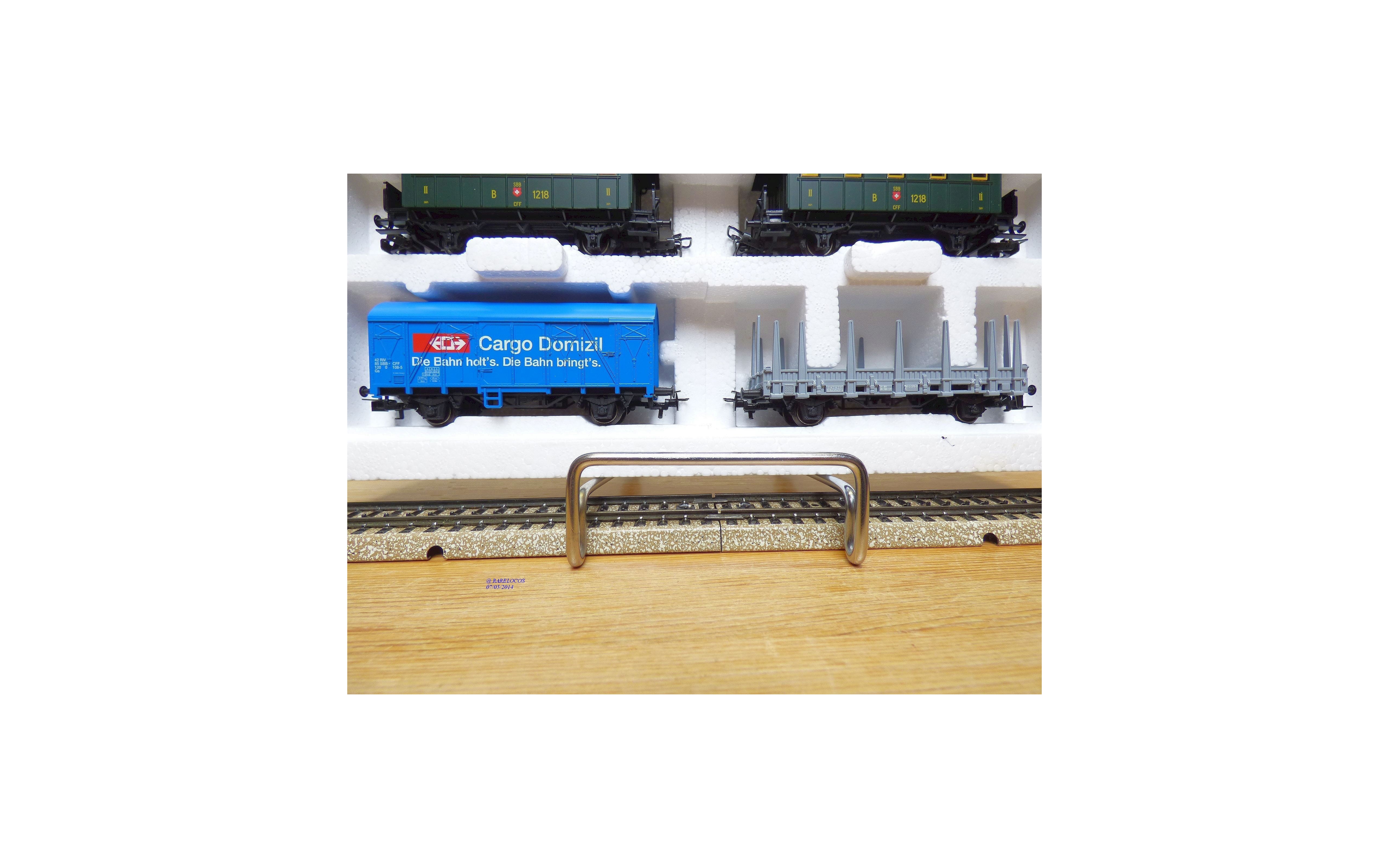 Coffret représentant un train mixte voyageurs / marchandises des chemins de fer suisses ( SBB/CFF/FFS ), notice présente, boîte d'origine en très bon état.