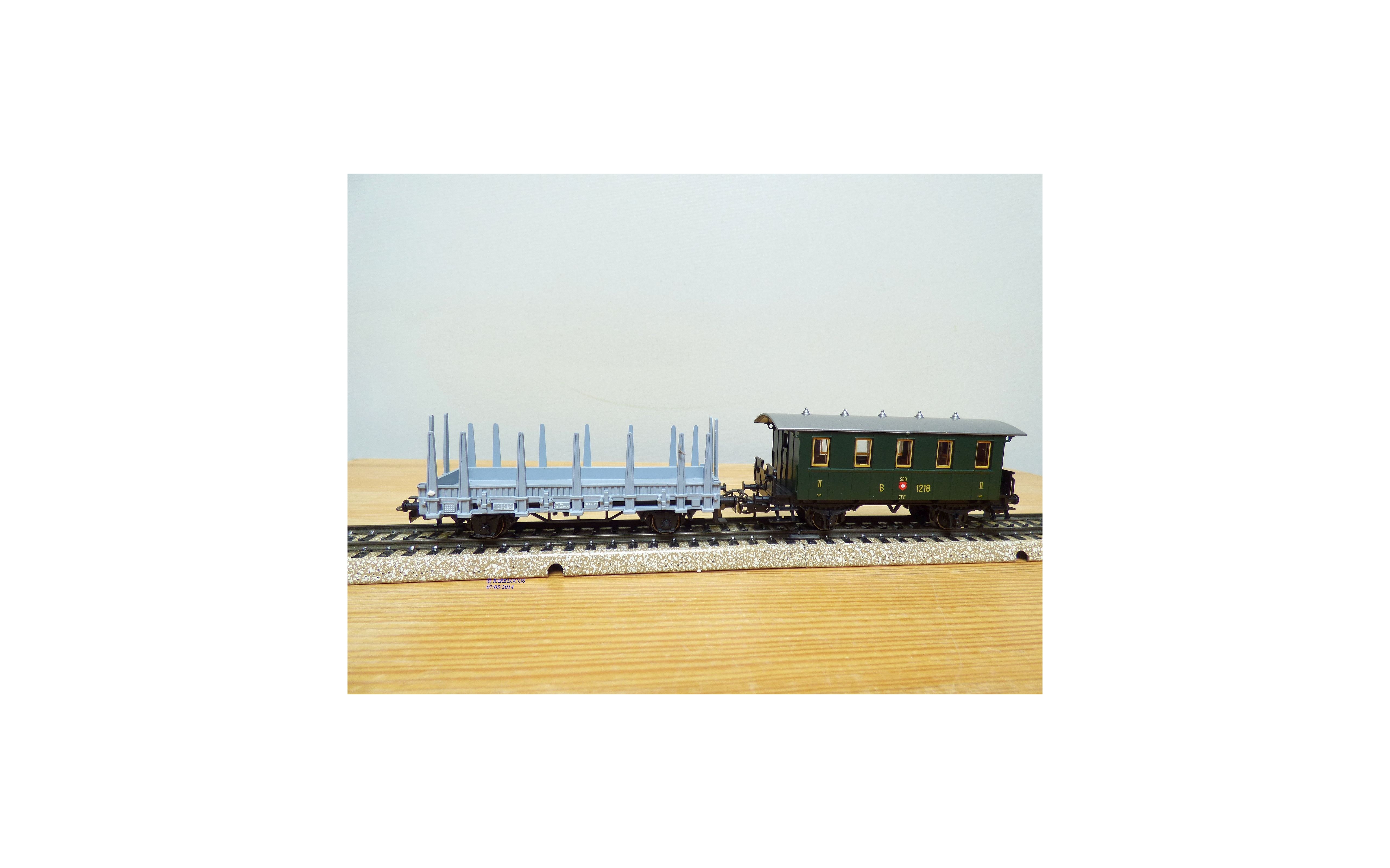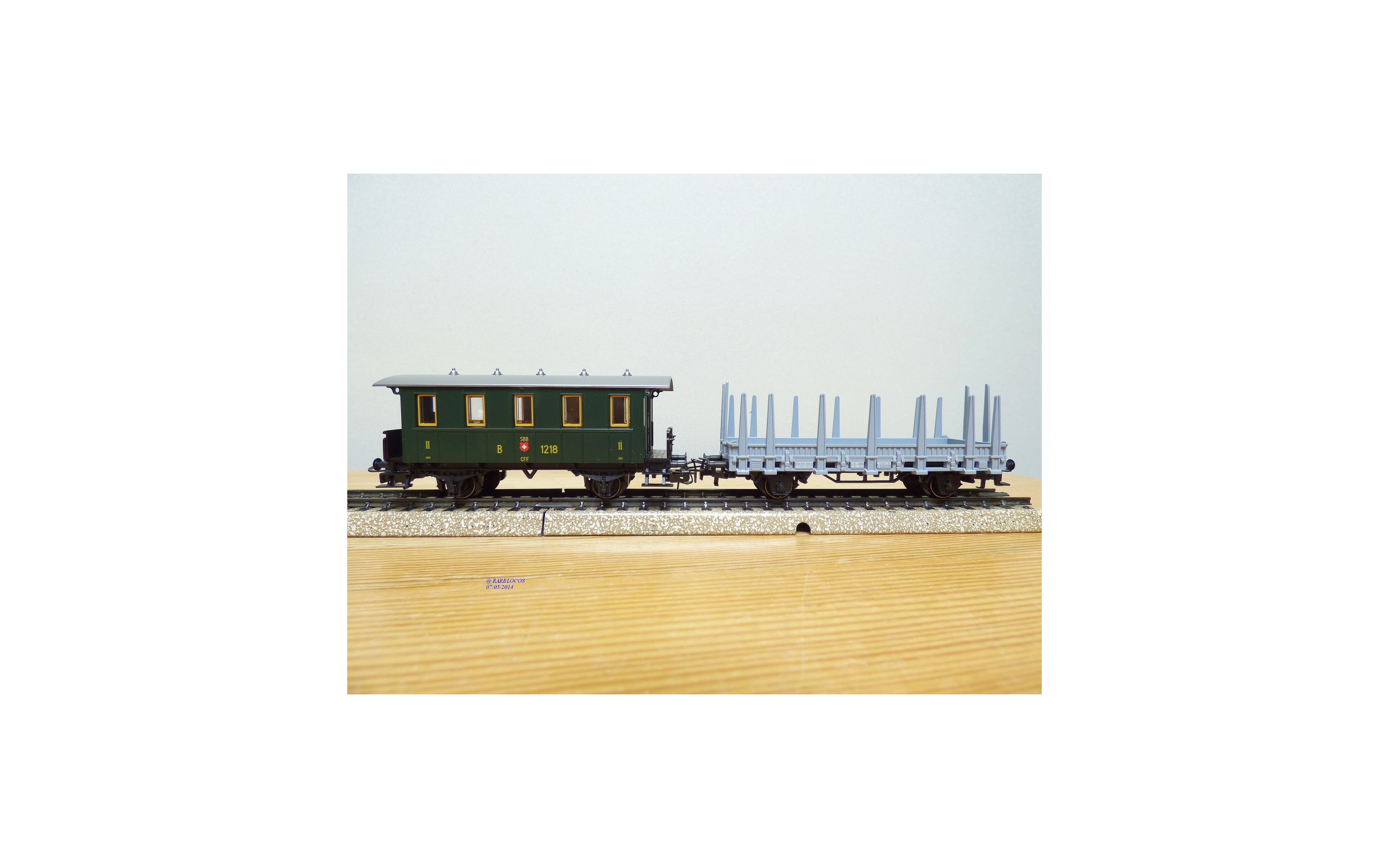 Il comprend une motrice Co à bielles série Ee 3/3 en livrée brun foncé, immatriculation : 16332, 2 voitures à plate formes d'extrémité de 2 ème classe à 2 essieux avec aménagements intérieurs, un wagon couvert et un wagon plat à ranchers, attelages à élongation.