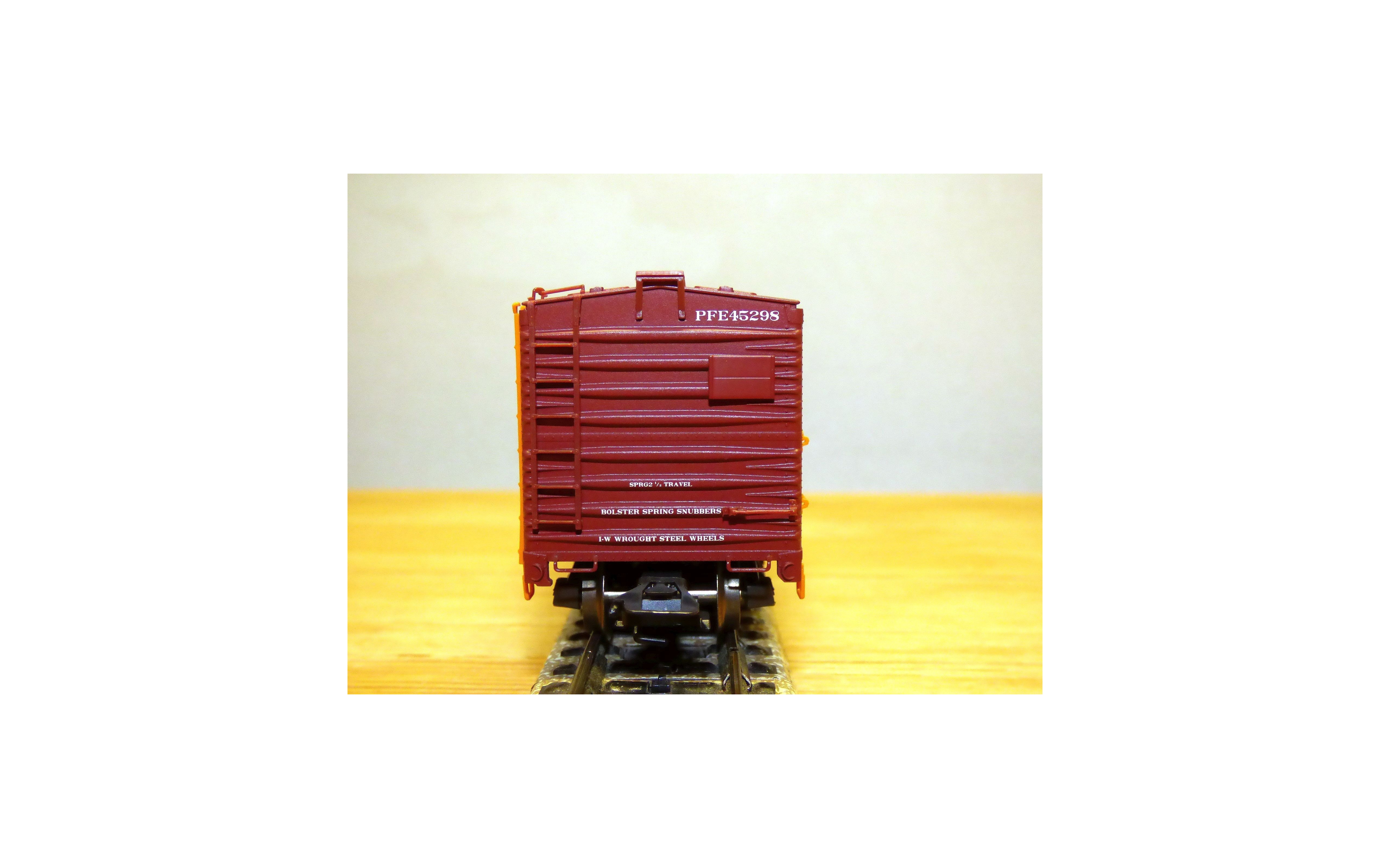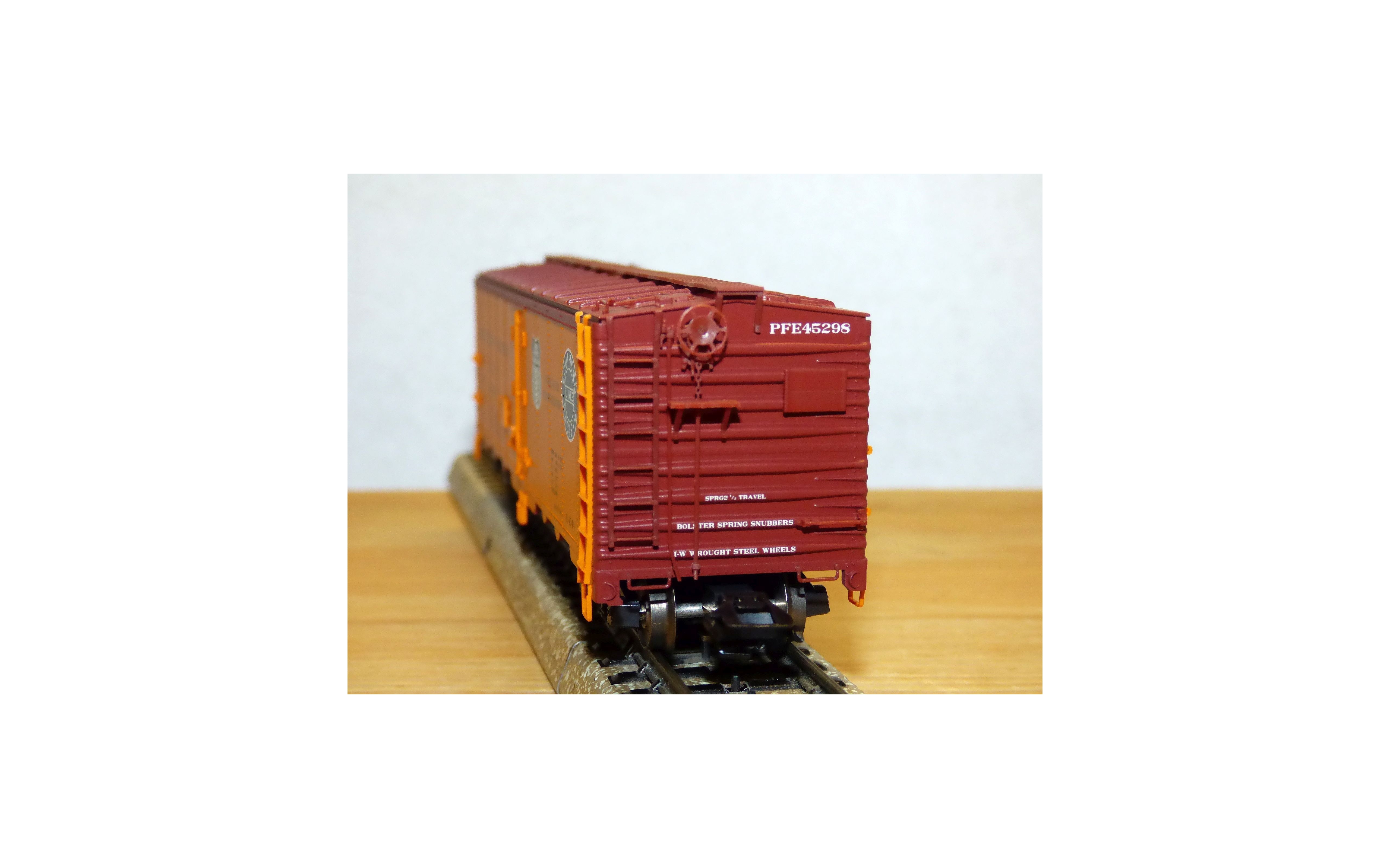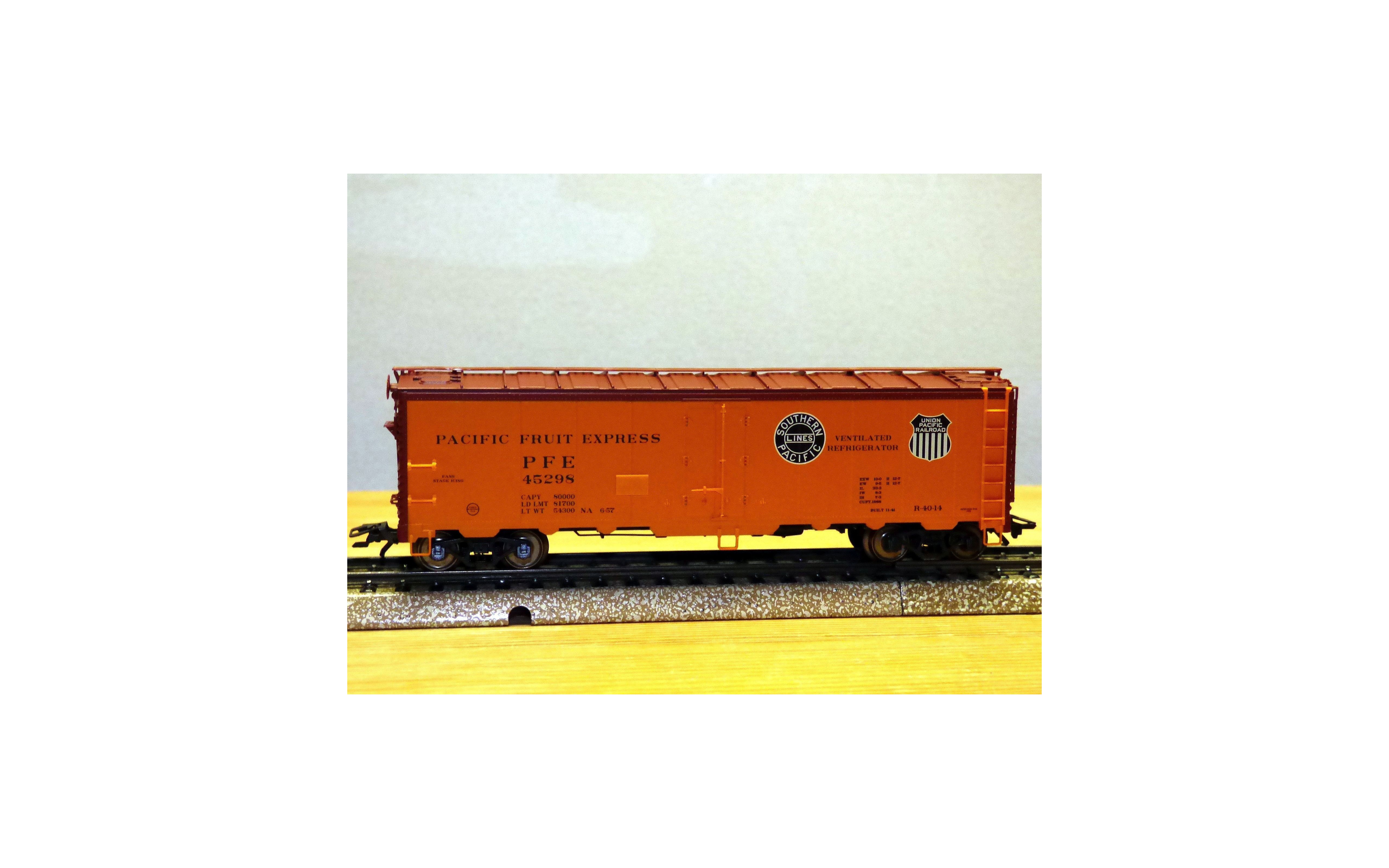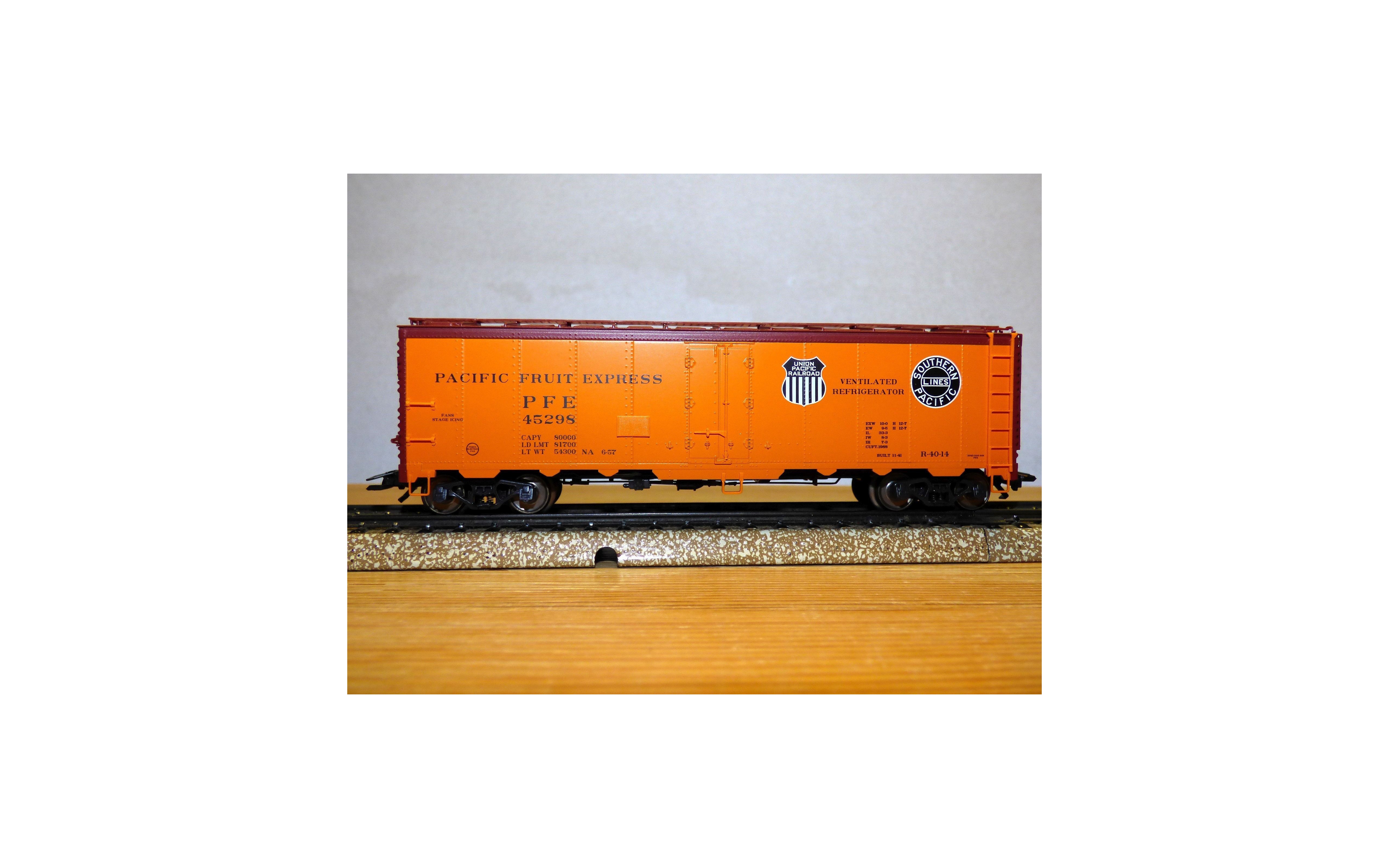 Coffret comprenant 3 wagons couverts réfrigérants ( reefer ) à 2 bogies des chemins de fer américains ( SP : Southern Pacific ) en livrée Pacific Fruit Express, immatriculations différentes, essieux suspendus sur ressorts, boîte d'origine en état neuf.