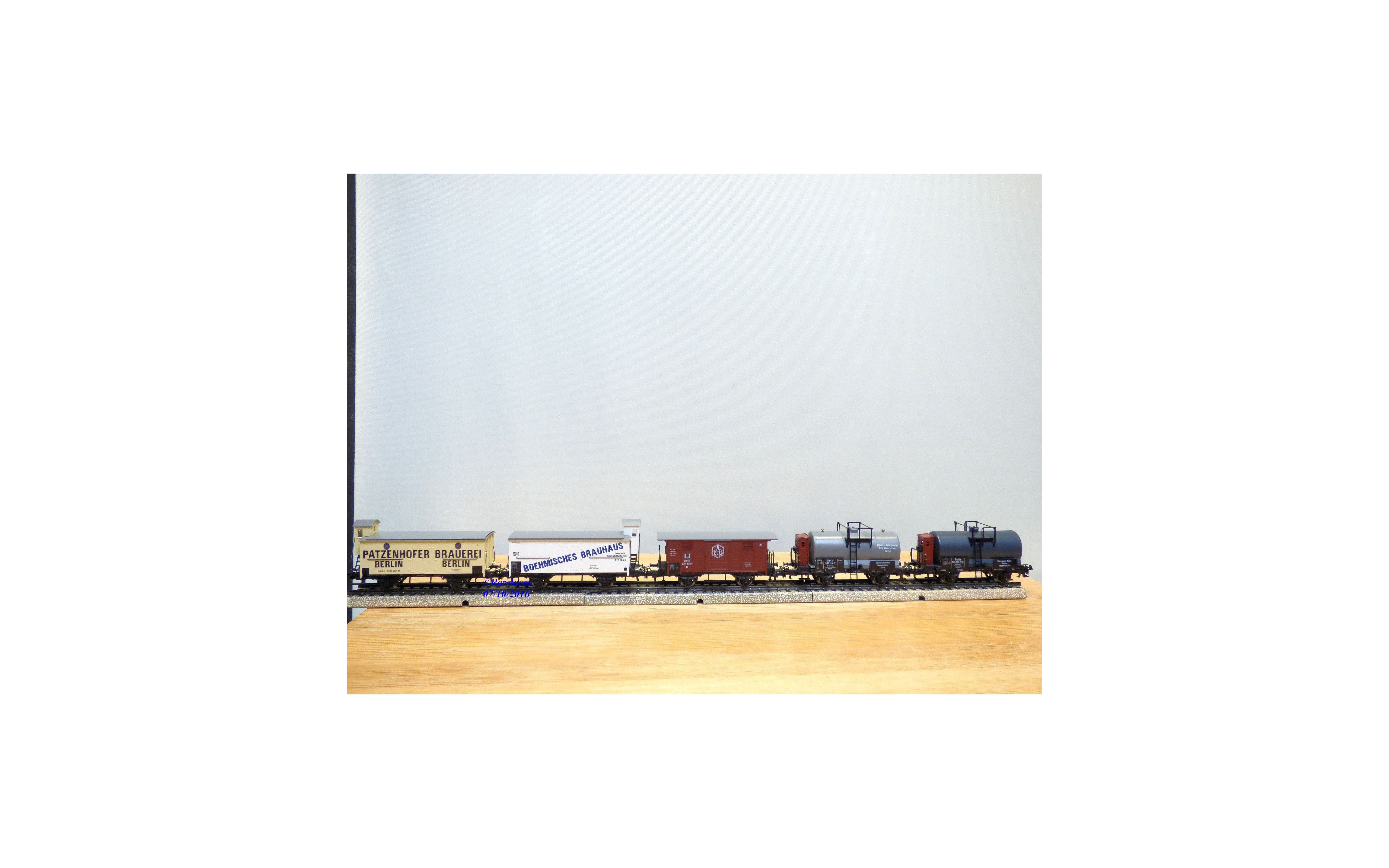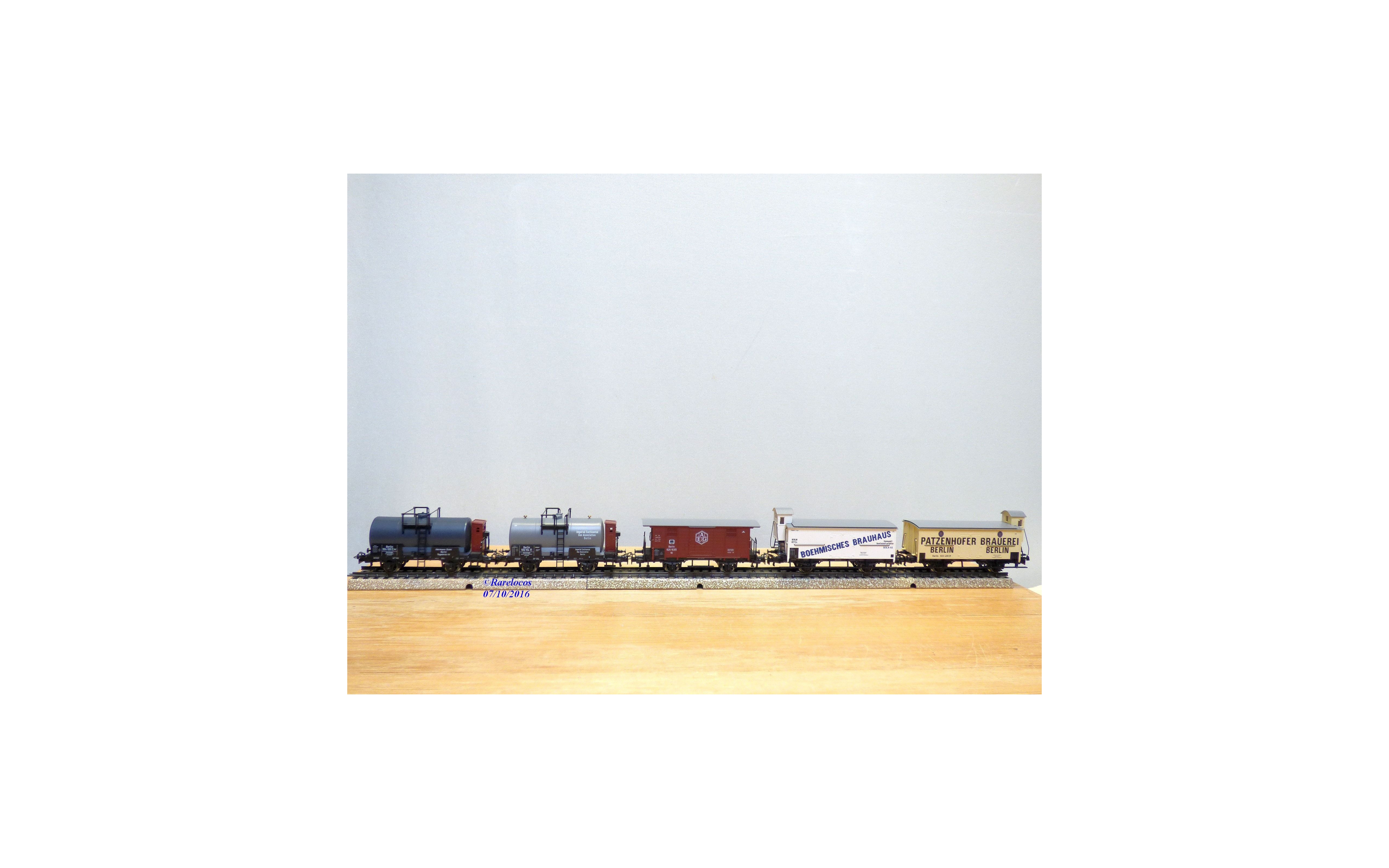 Coffret de 5 wagons anciens des chemins de fer allemands ( KPEV ) baptisé " Berlin ", attelages à élongation, boîte d'origine en état neuf.