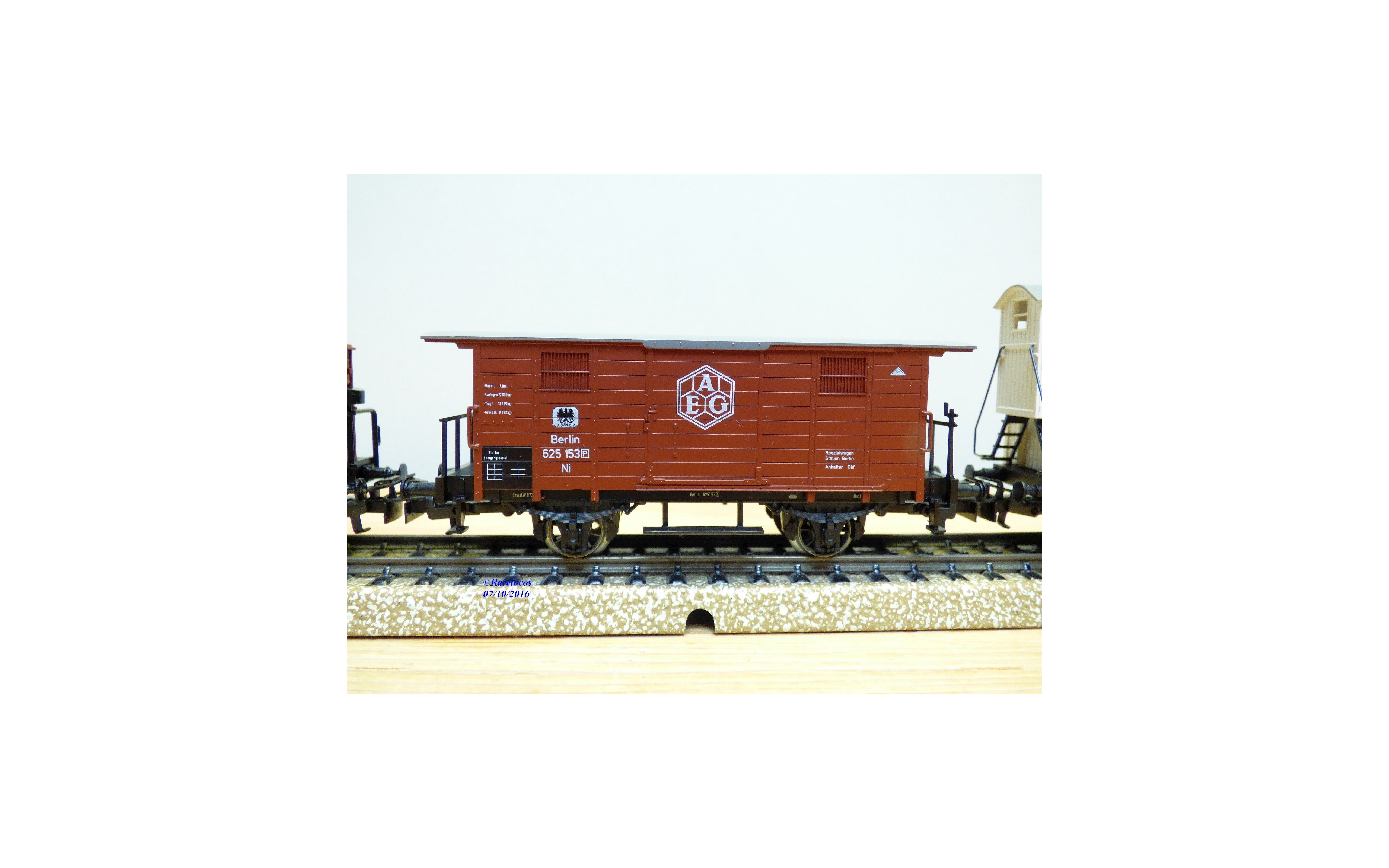 - un wagon couvert à plate formes d'extrémité avec marquages AEG