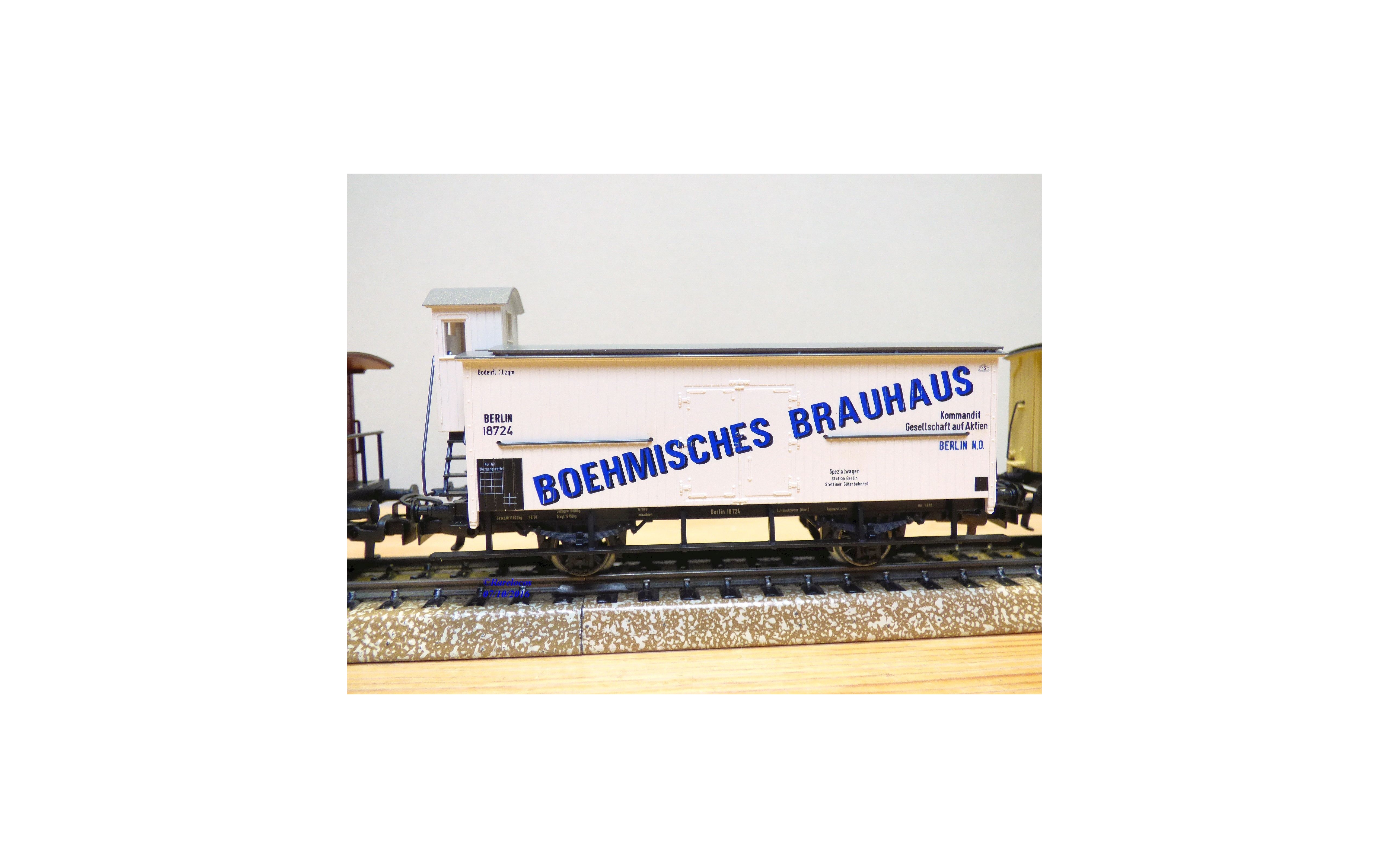 - un wagon couvert réfrigérant à guérite de serre freins pour transport de bièreavec marquages BOEMISCHES BRAUHAUS