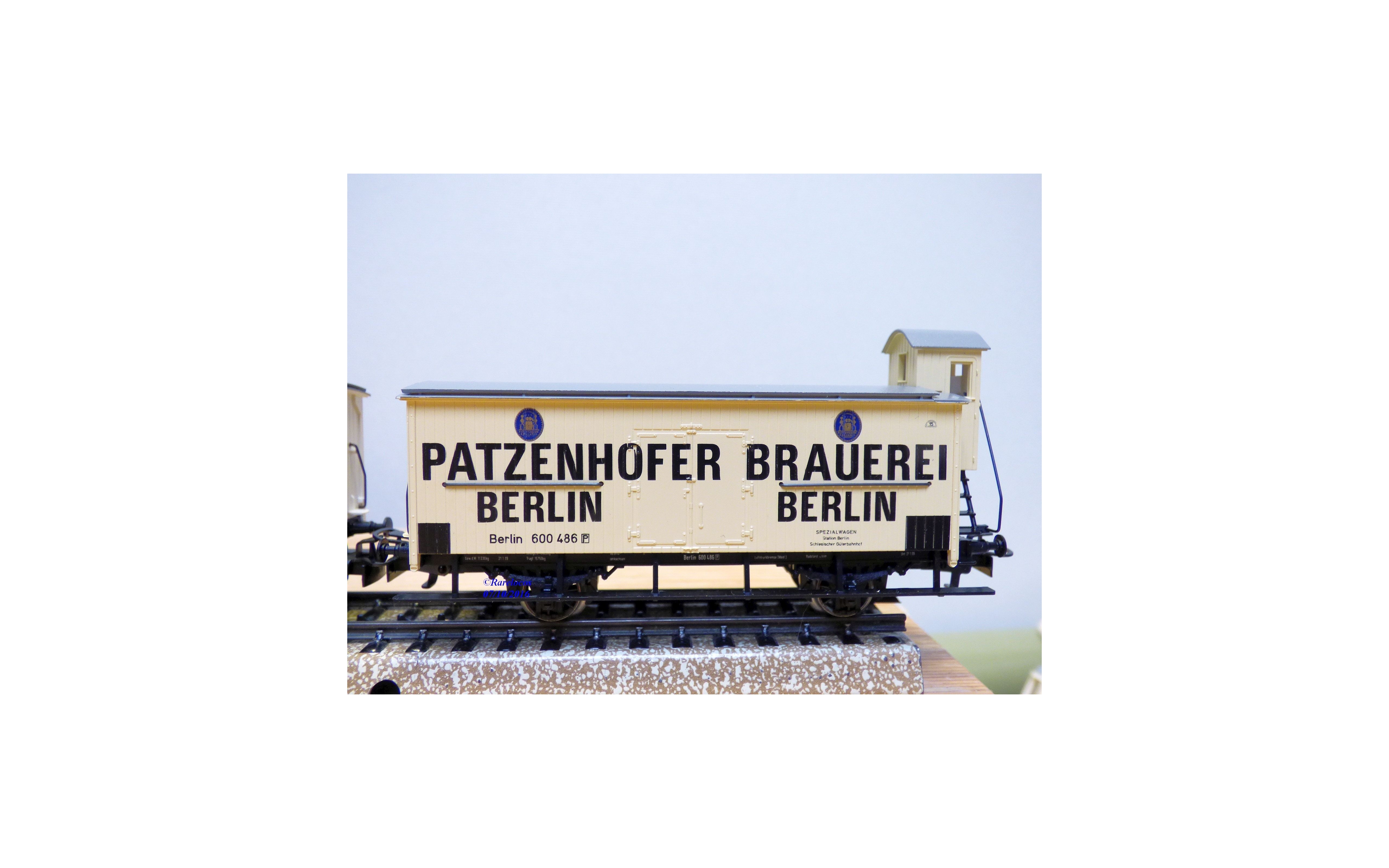 - un wagon couvert réfrigérant à guérite de serre freins pour transport de bière avec marquages PATZENHOFER BRAUEREI BERLIN
