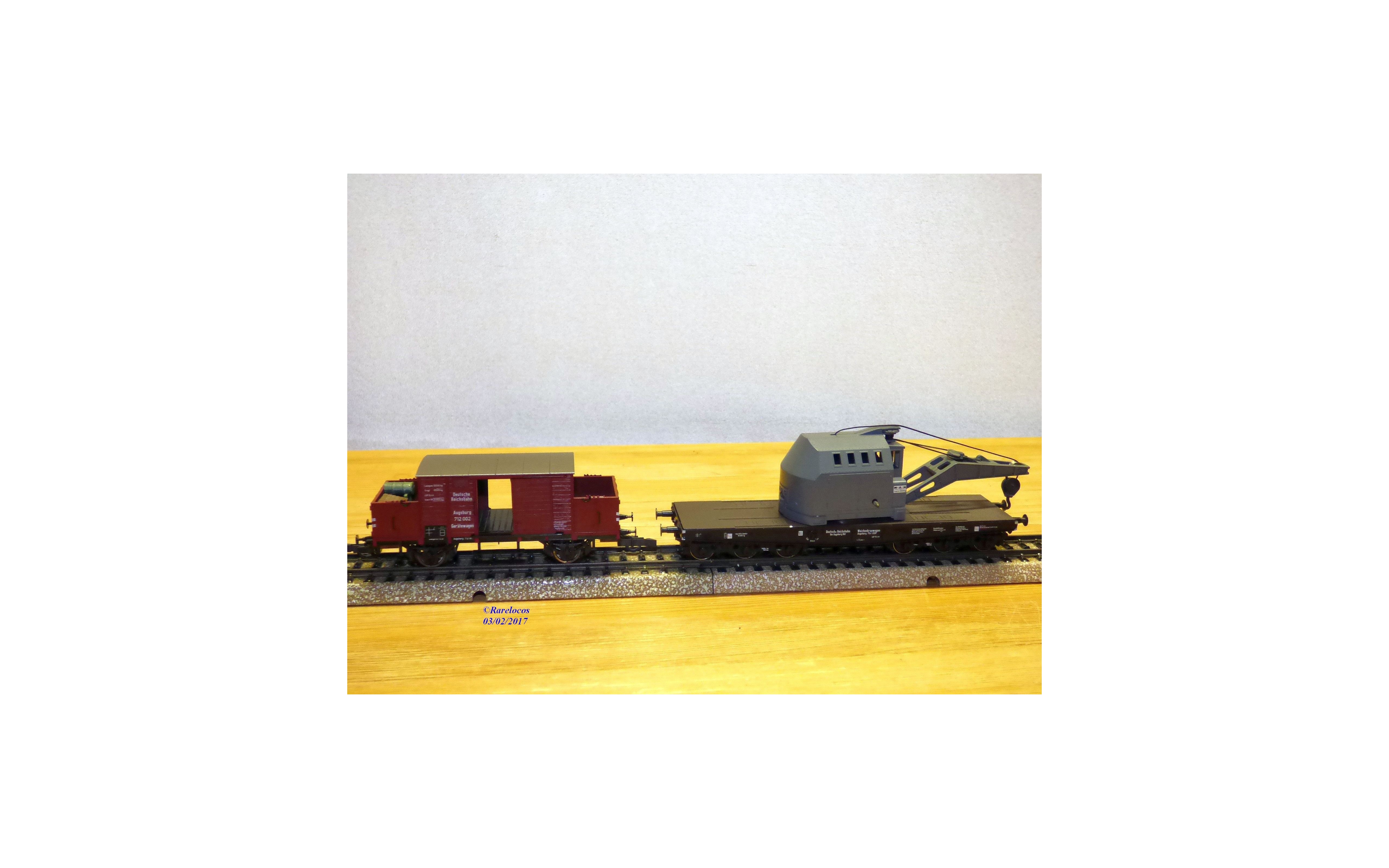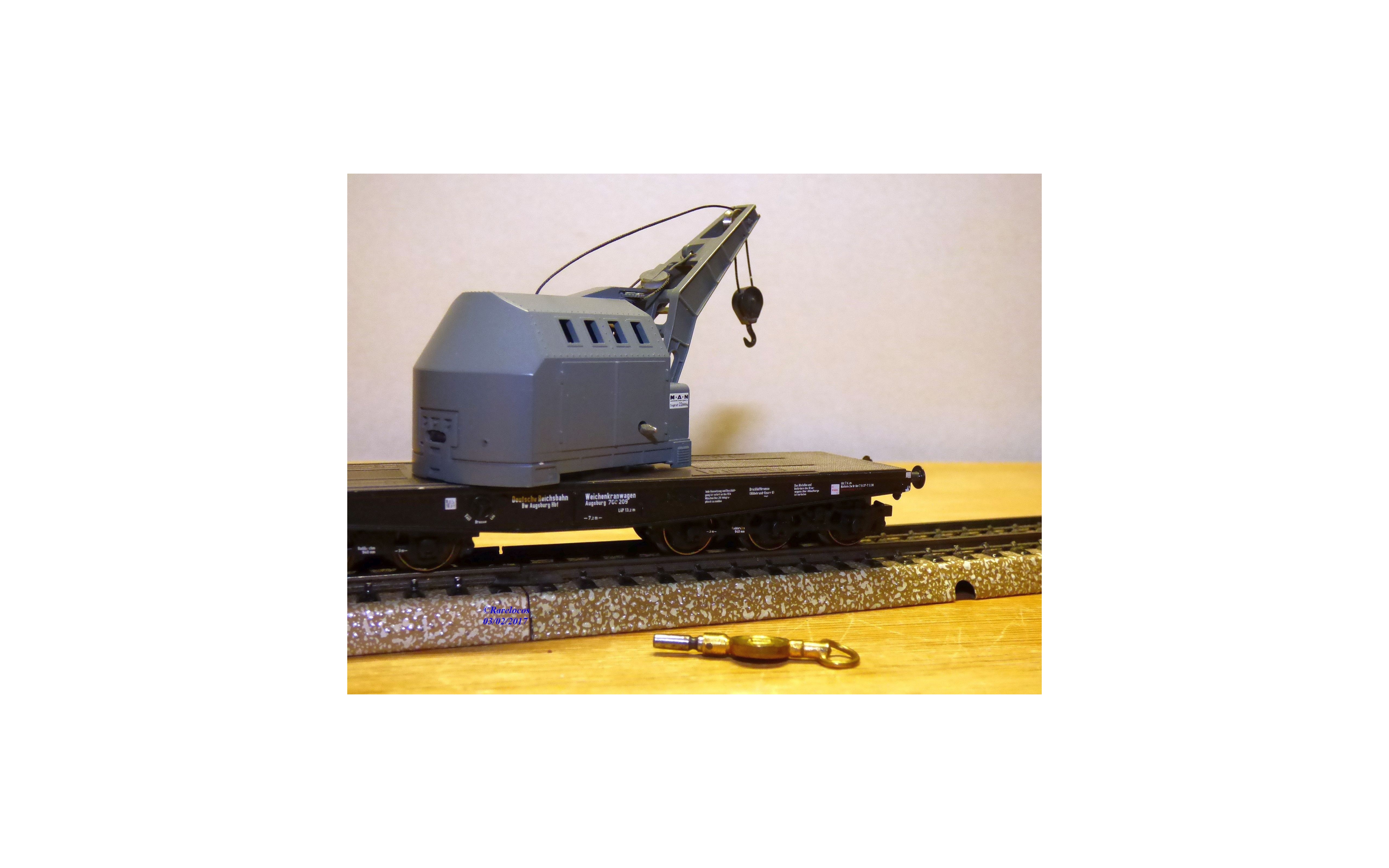 Le wagon grue a été ( proprement ) bricolé / réparé ( voir photos), il reste tout à fait fonctionnel.