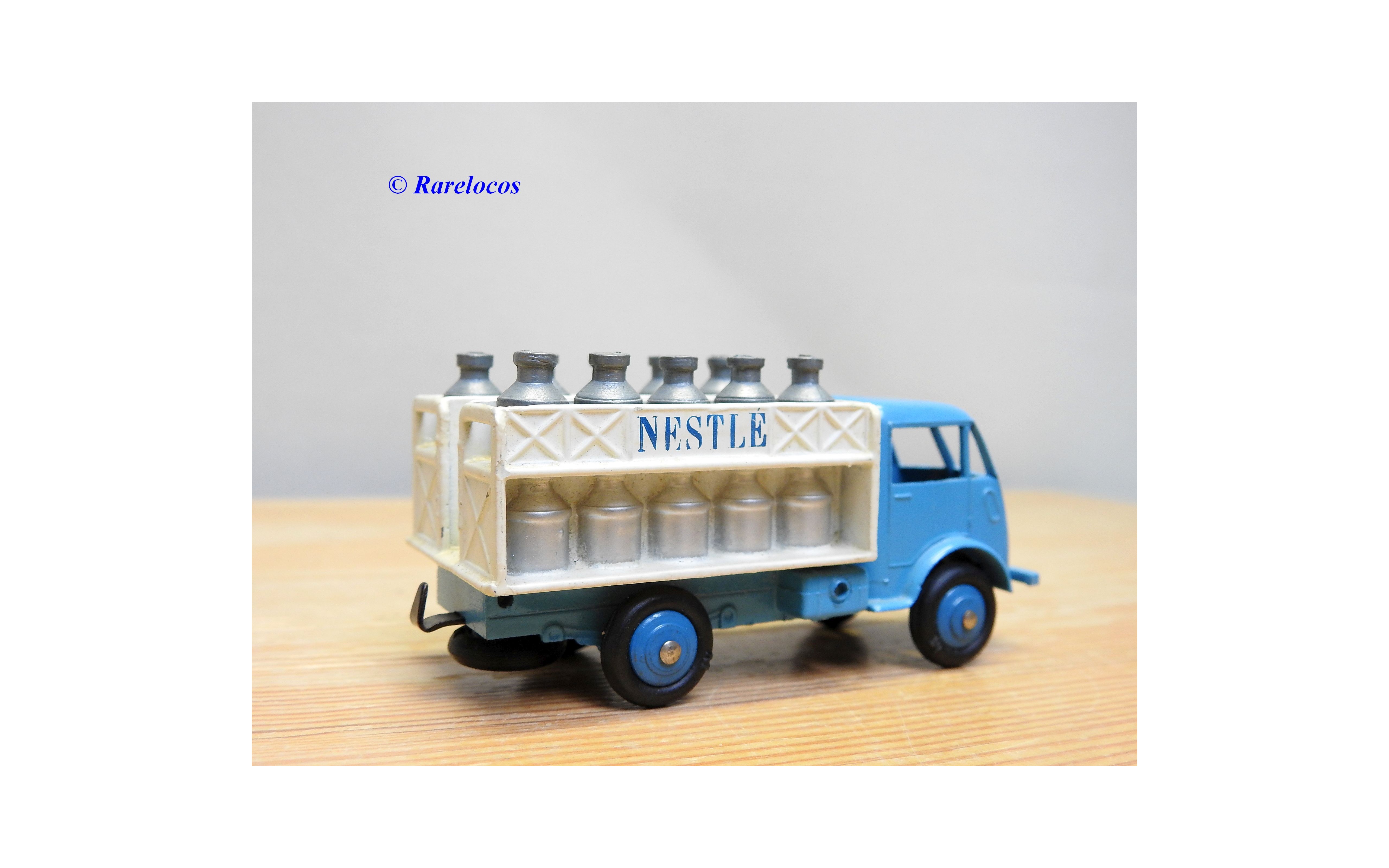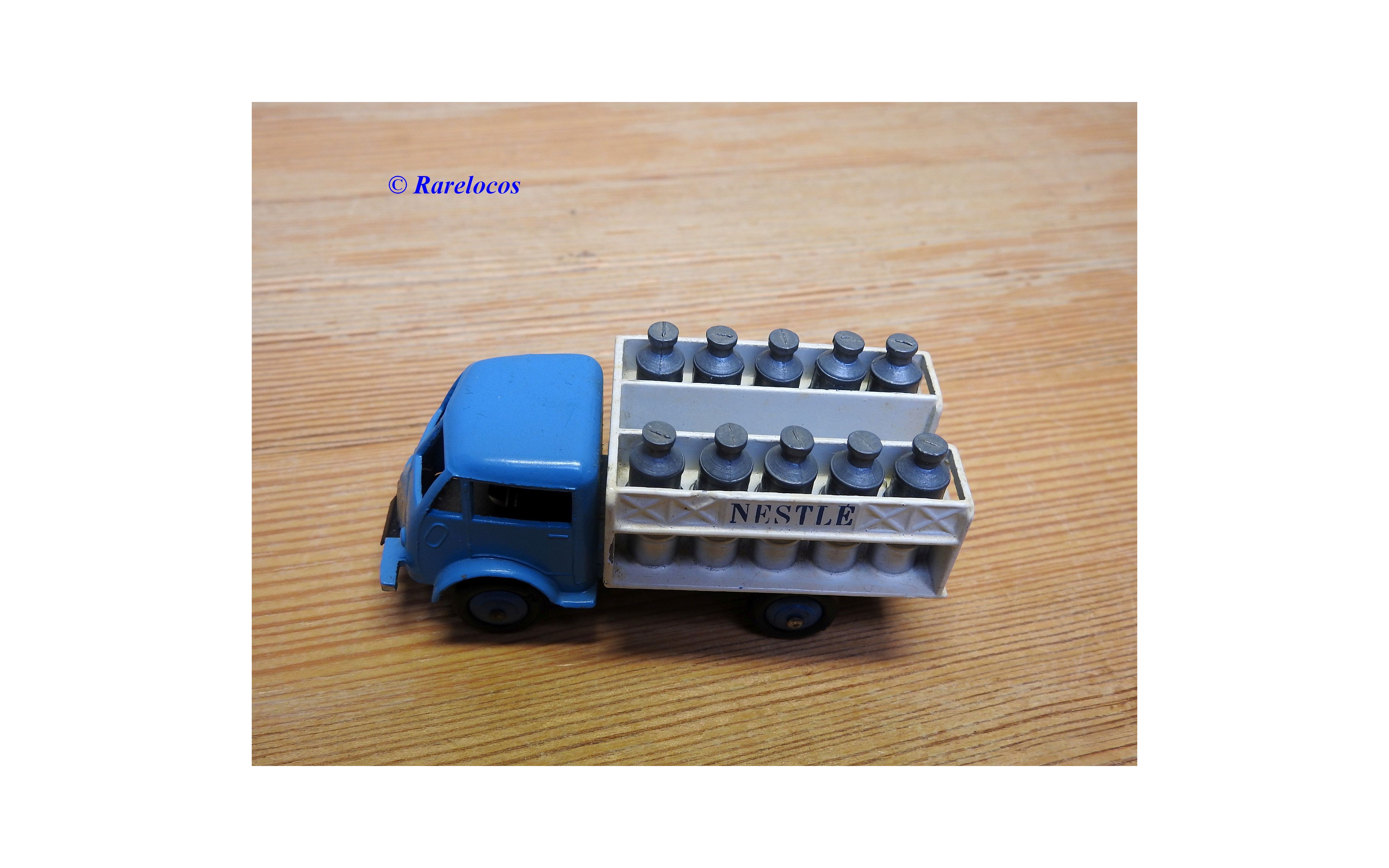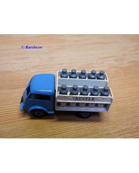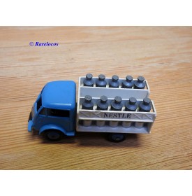 Camion laitier FORD, livrée bleu vif et blanc avec jantes bleues, 10 bidons fixes et 10 bidons mobiles, marquage NESTLE au tampon, pas de boîte d'origine.