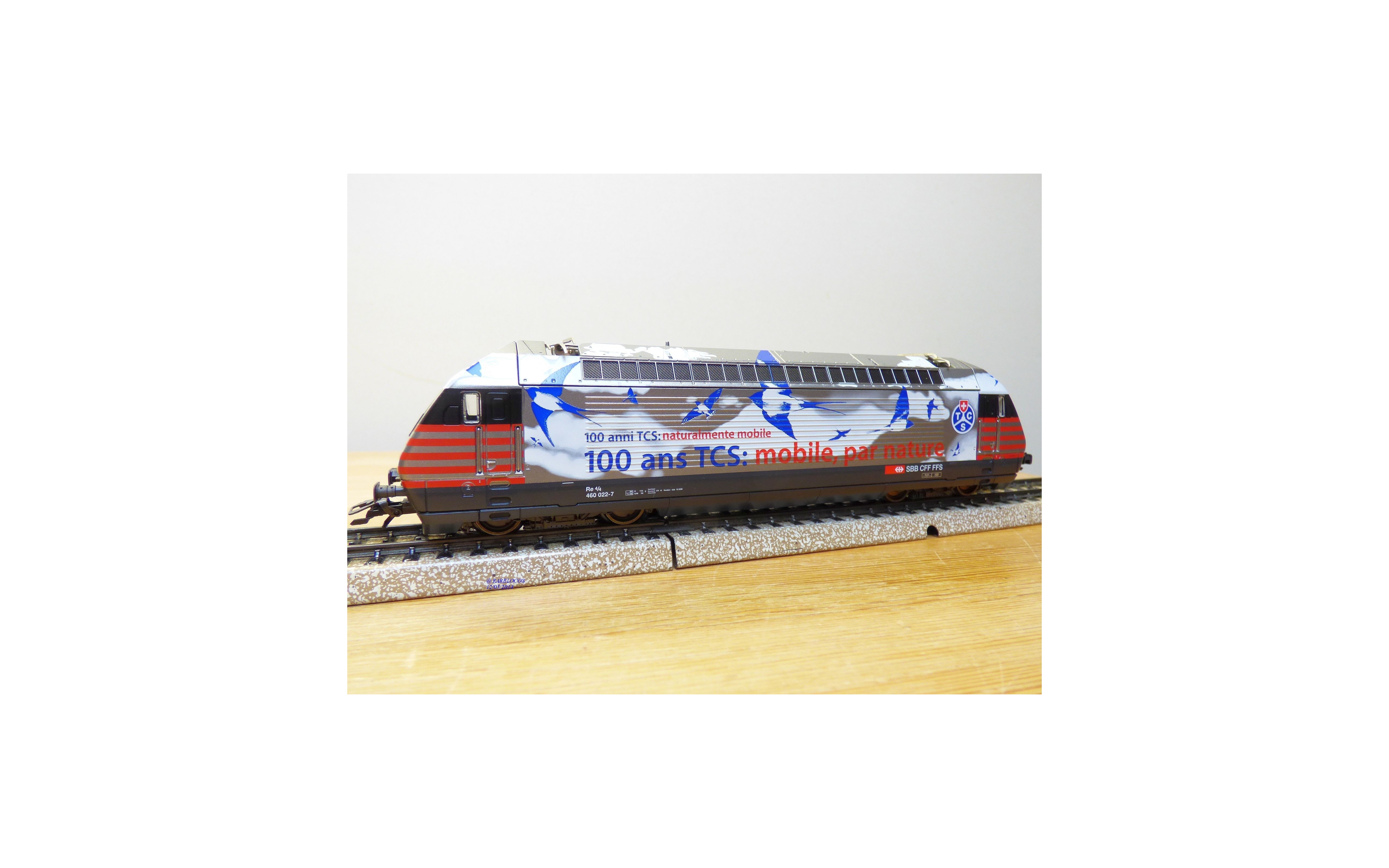 Motrice Bo Bo série 460 type Re 4/4 VI des chemins de fer suisses ( SBB/CFF/FFS) , livrée rouge et gris avec marquages 100 ans TCS, tout métal, système Delta, immatriculation : 460 022-7, notice présente, boîte d'origine en excellent état.