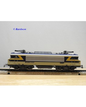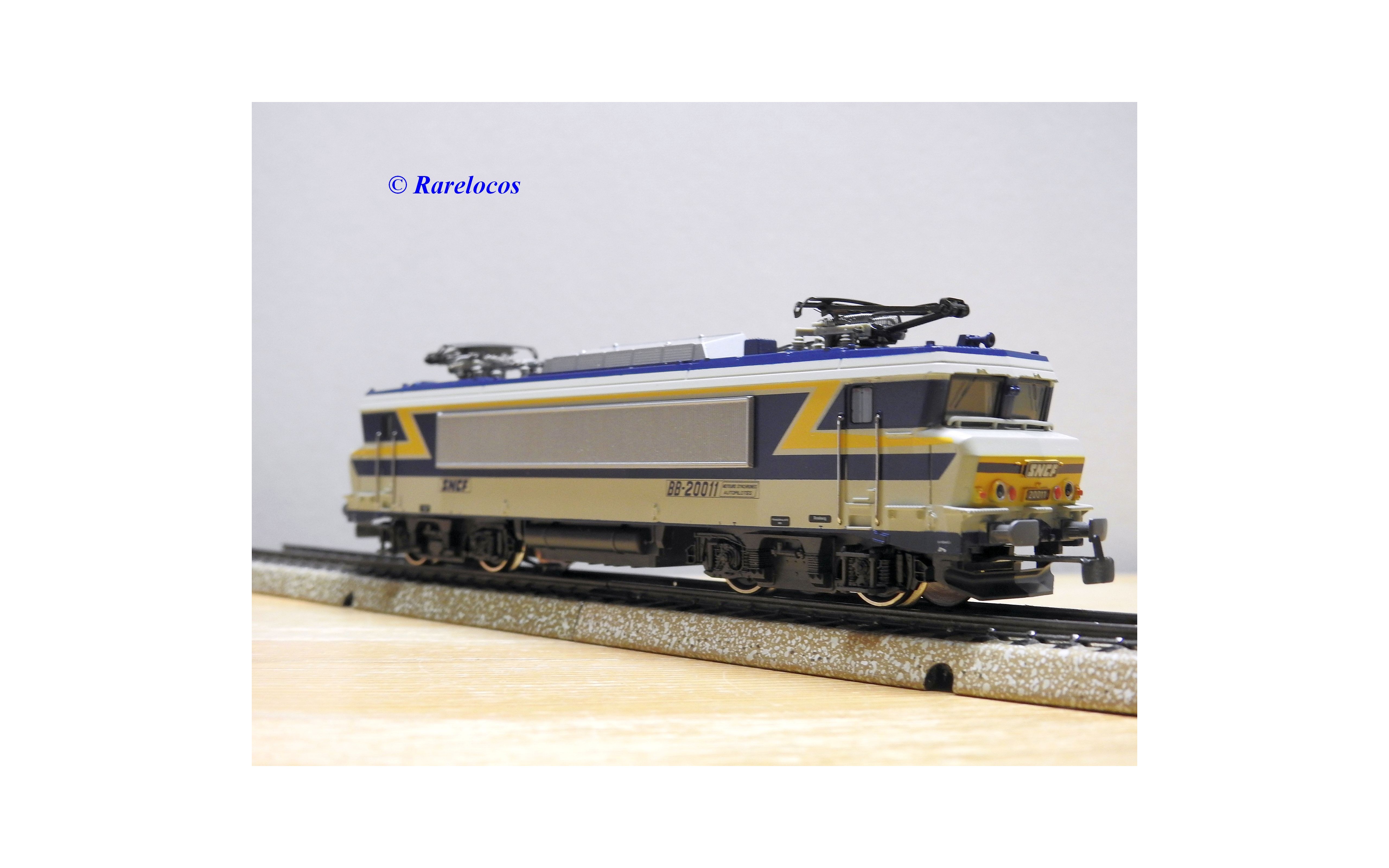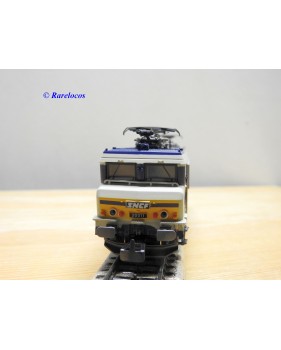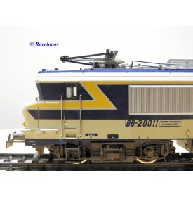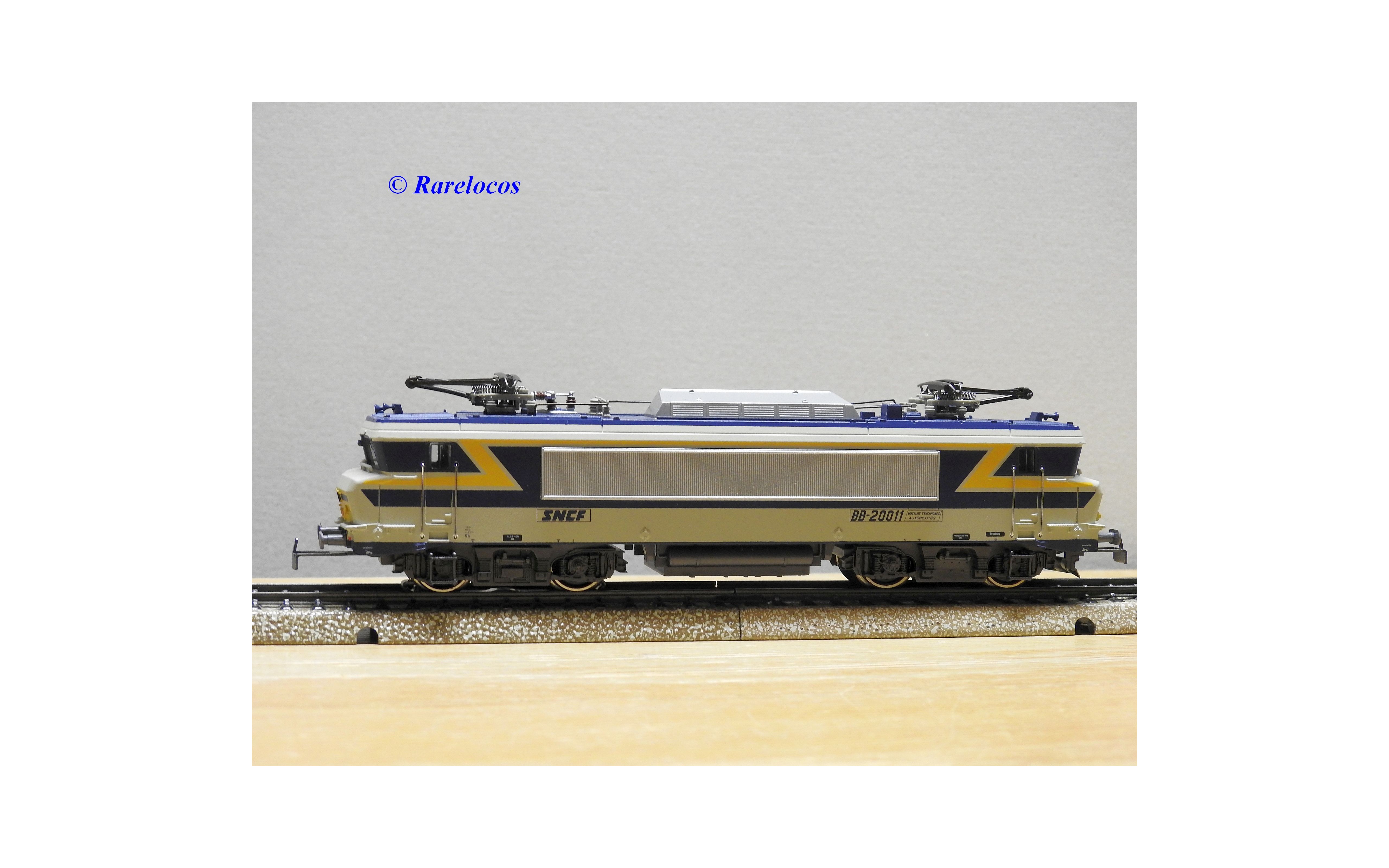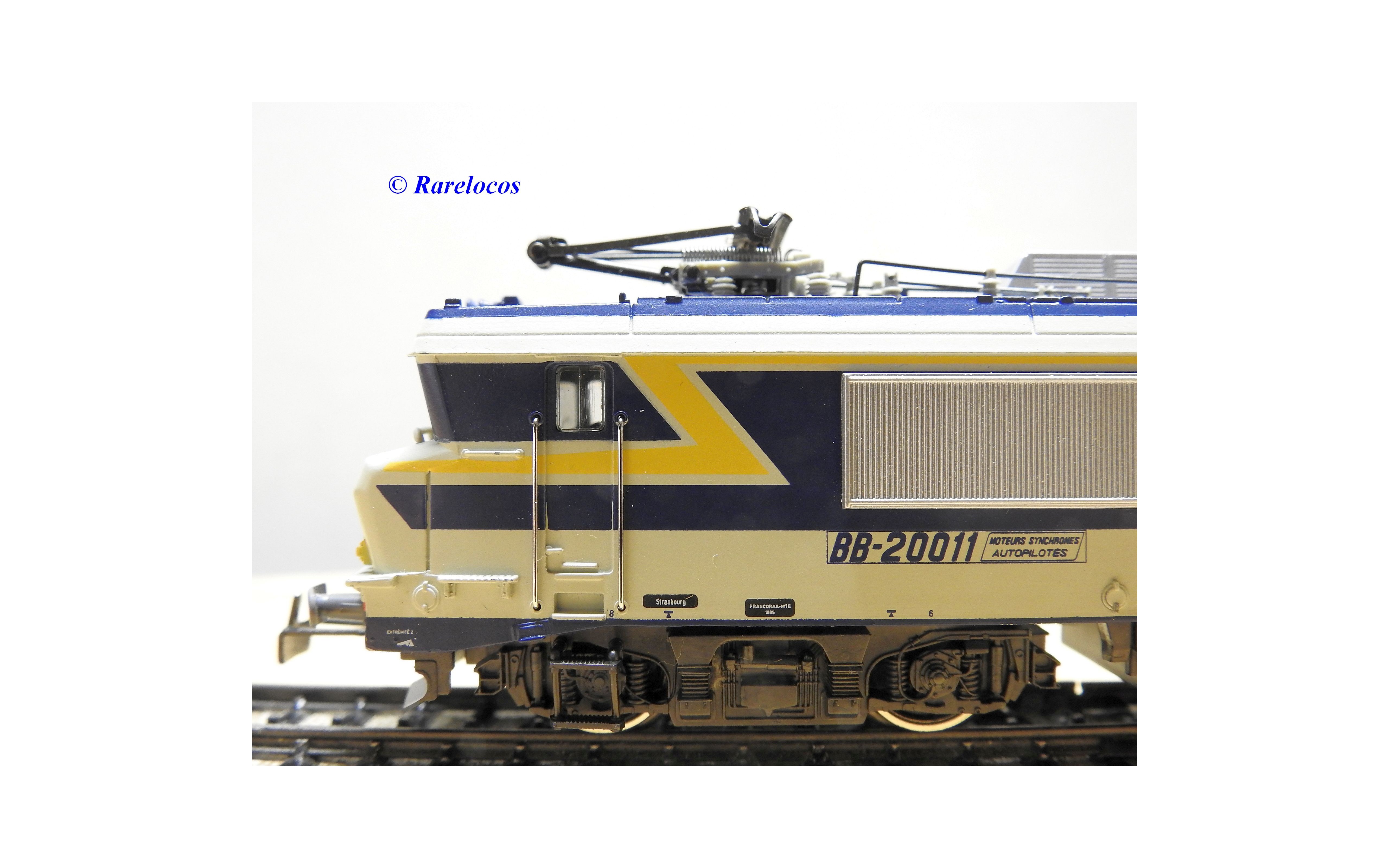 Motrice prototype Bo Bo série BB 20011 des chemins de fer français ( SNCF ), livrée grise, bleue et jaune, en métal, immatriculation : 20011, notice présente, boîte d'origine en très bon état .