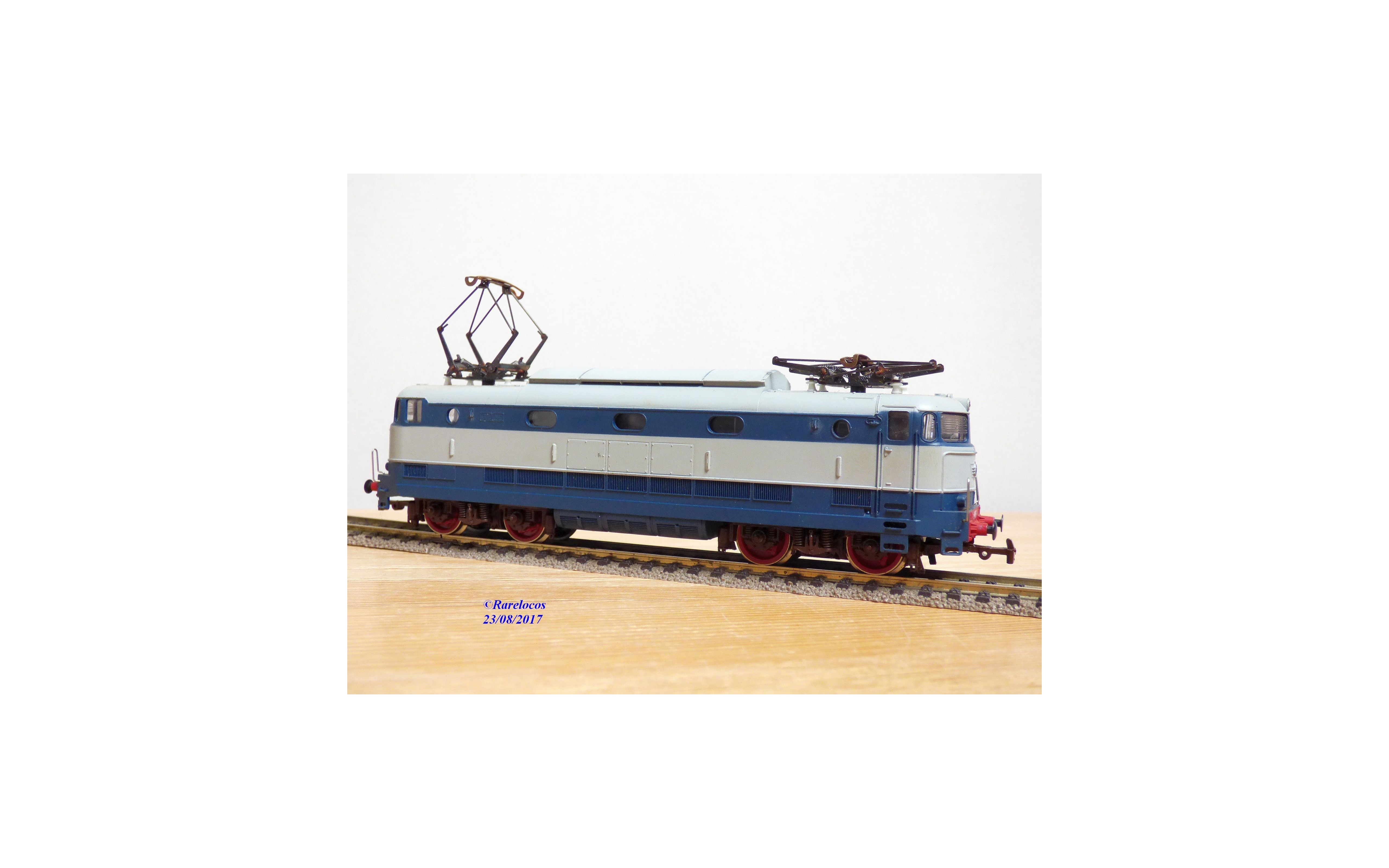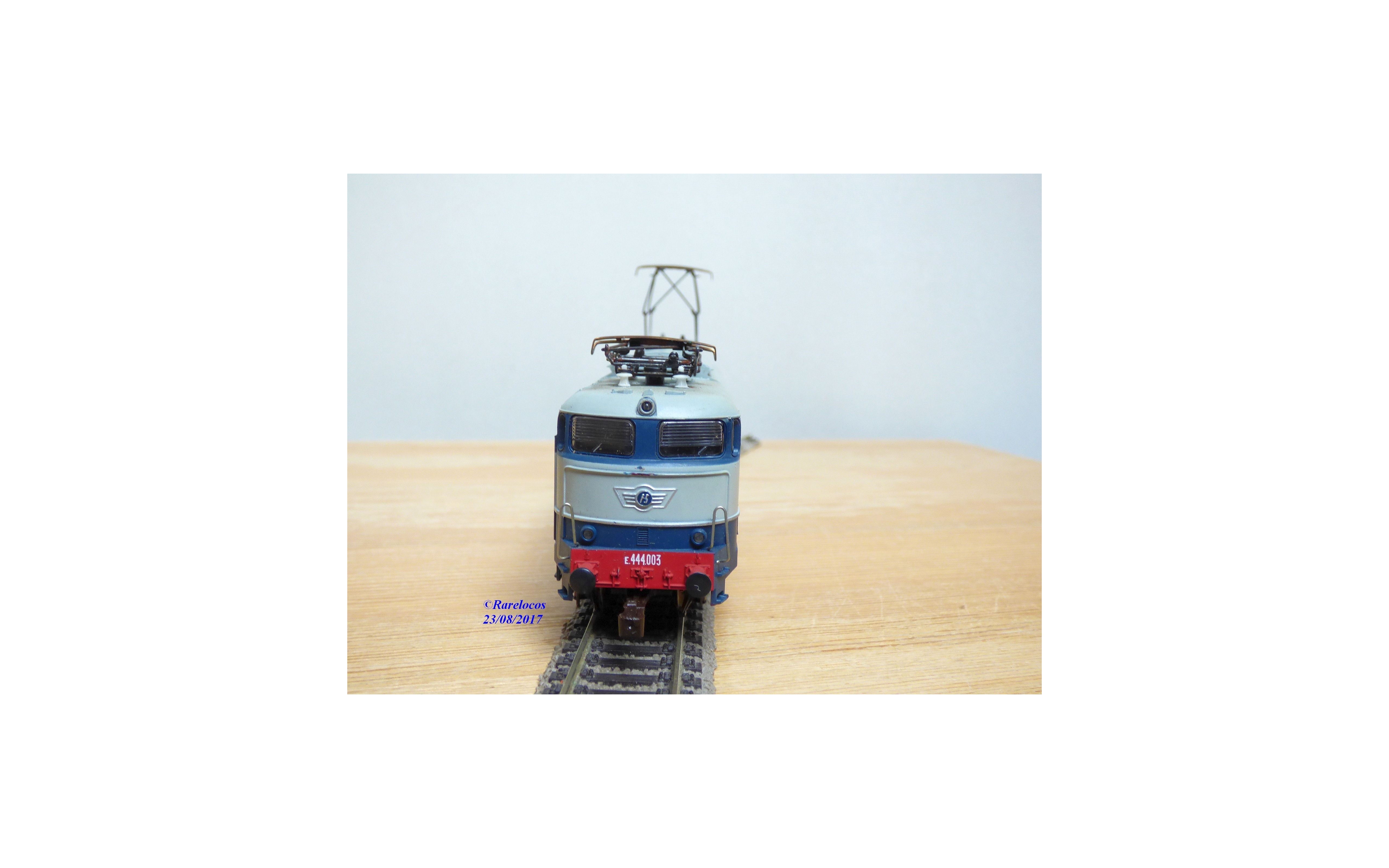 Motrice Bo Bo série E 444 1 ère série Tartaruga des chemins de fer italiens ( FS ), livrée bleue et grise, prise de courant par rail ou caténaire testée OK, immatriculation :444 003, notice présente, boîte d'origine en bon état.