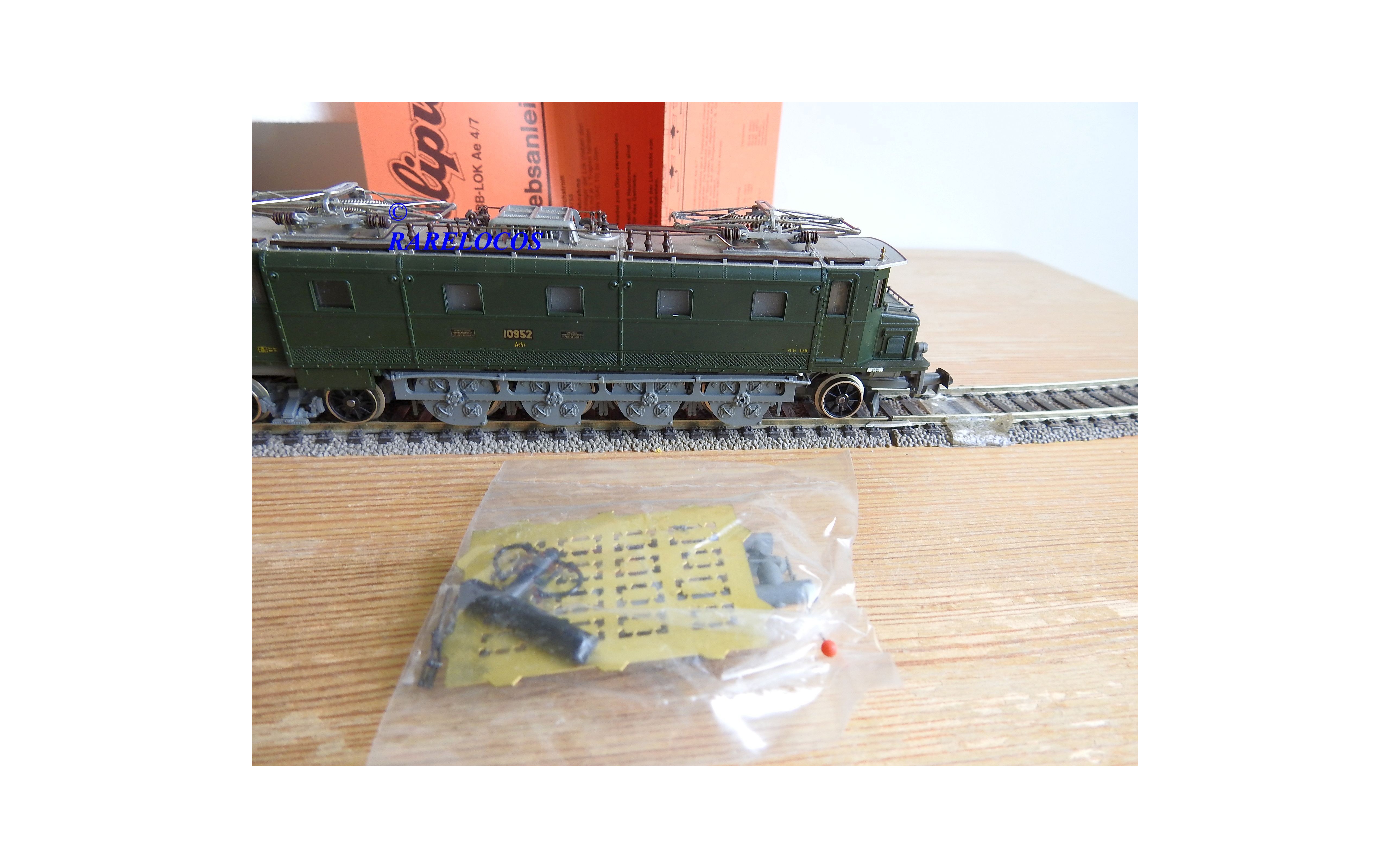 Peu courante motrice 2 D 1 série Ae 4/7 Sécheron des chemins de fer suisses ( SBB / CFF / FFS ) , livrée vert sapin à toit gris argent. immatriculation 10952, pièces de détaillage encore scellées, plaques d' immatriculation photogravées, notice et liste de pièces détachées présentes, boîte d'origine en excellent état.
