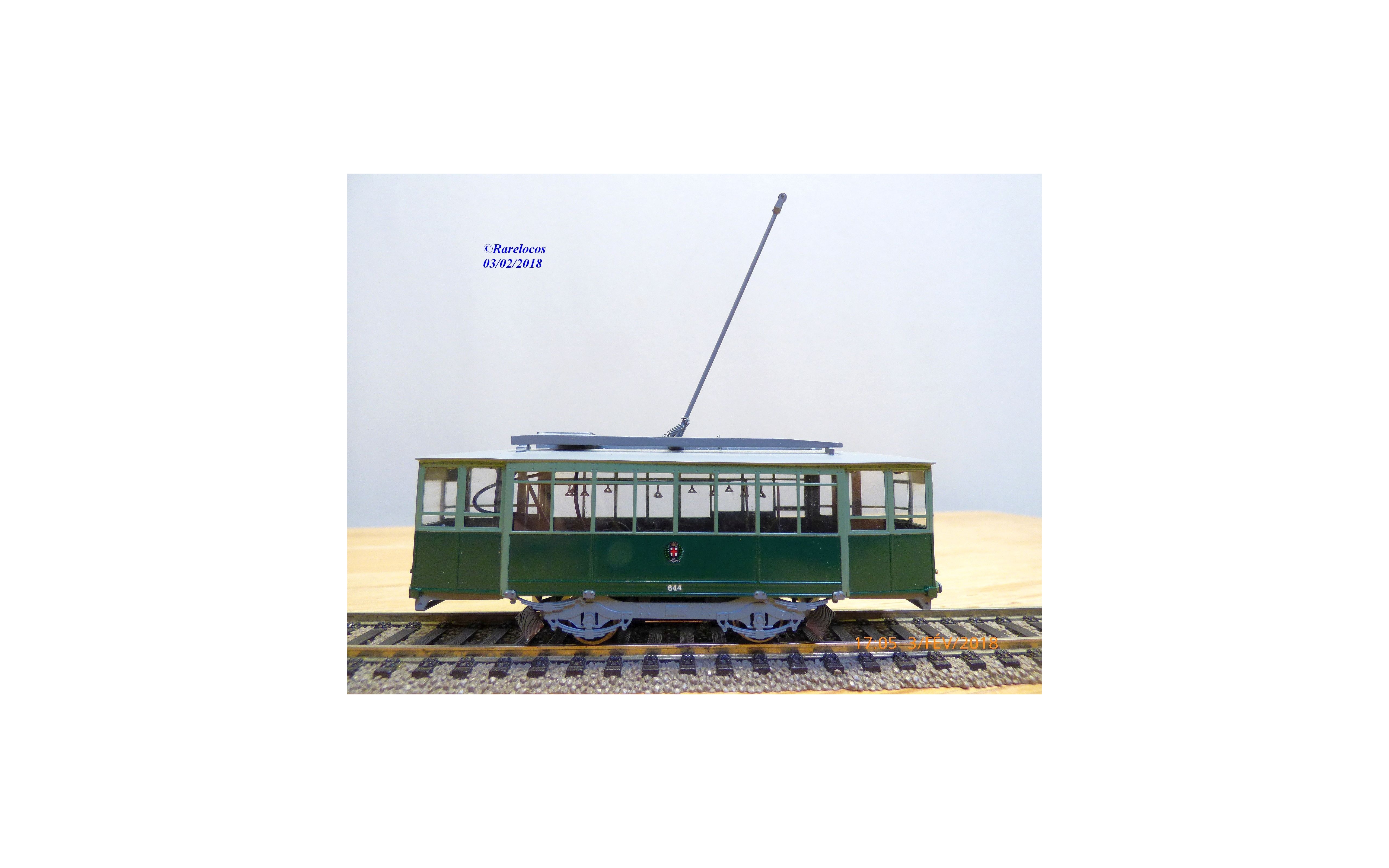 Rarissime modèle d' un tramway à 2 essieux de la ville de Milan, laiton peint, livrée en 2 tons de vert, pas de boîte d' origine.
