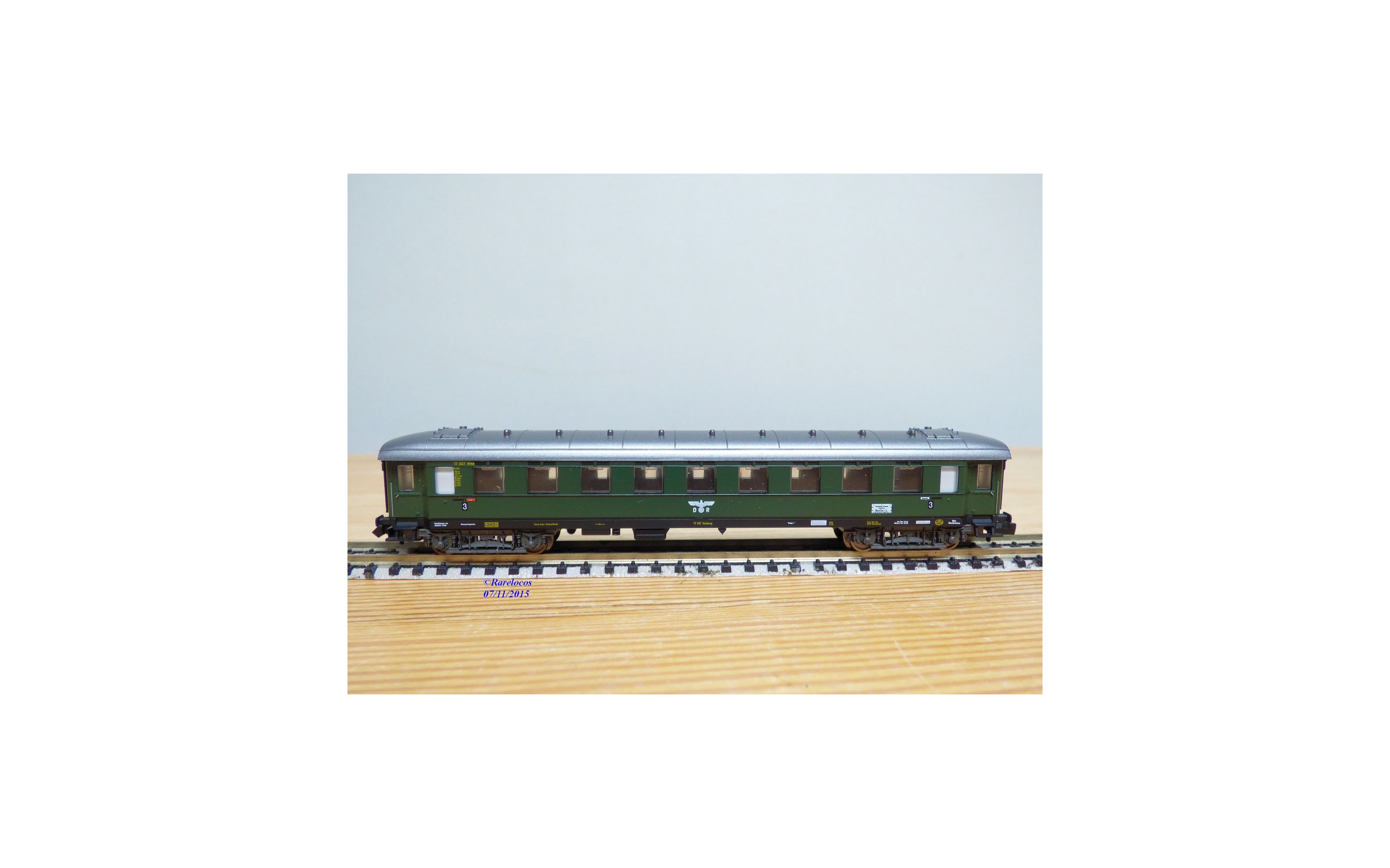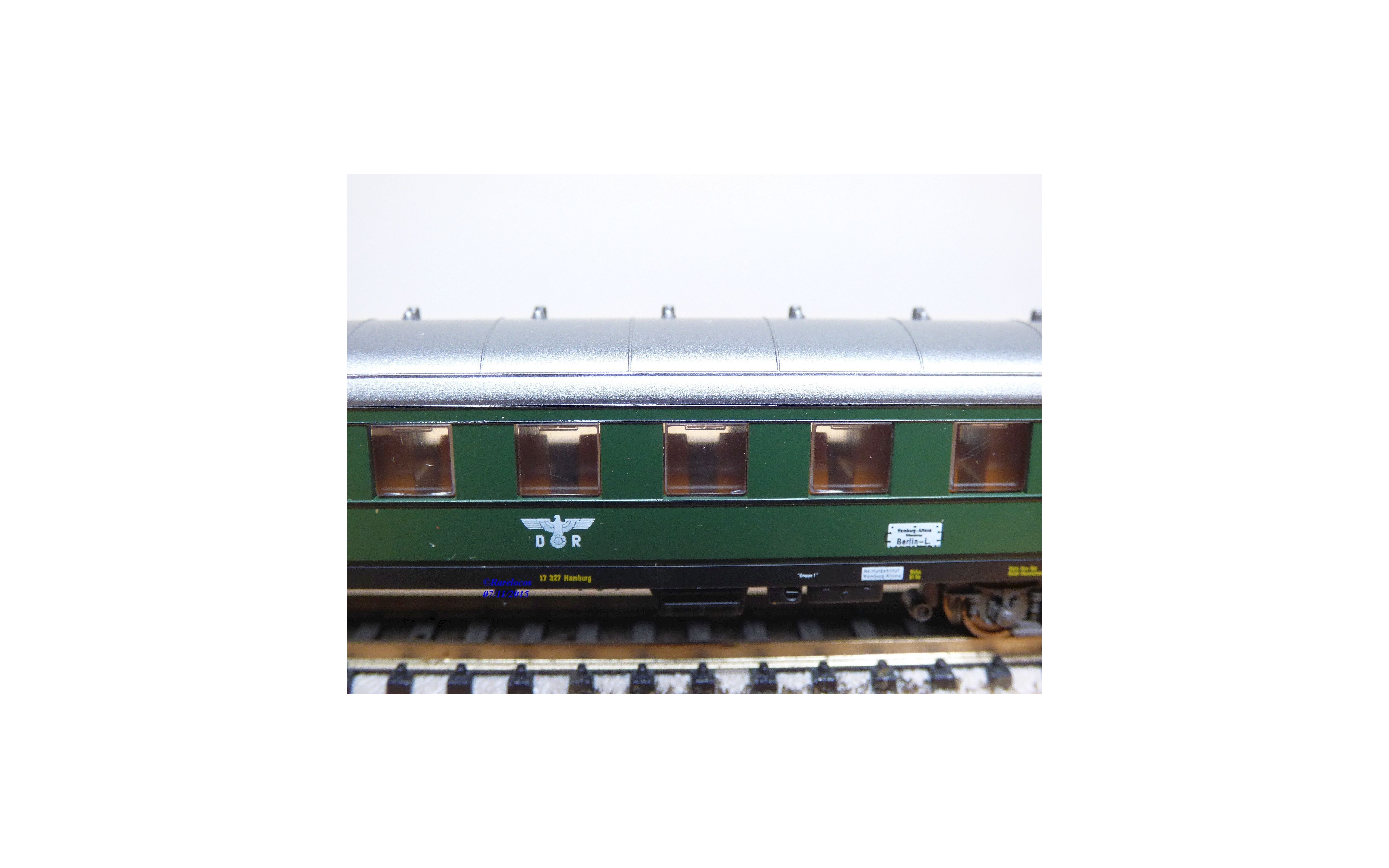 Voiture grandes lignes à 2 bogies de 3 ème classe des chemins de fer allemands ( DRG ), livrée verte à toit gris argent, immatriculation : 17327 Hamburg, boîte d'origine en bon état .
