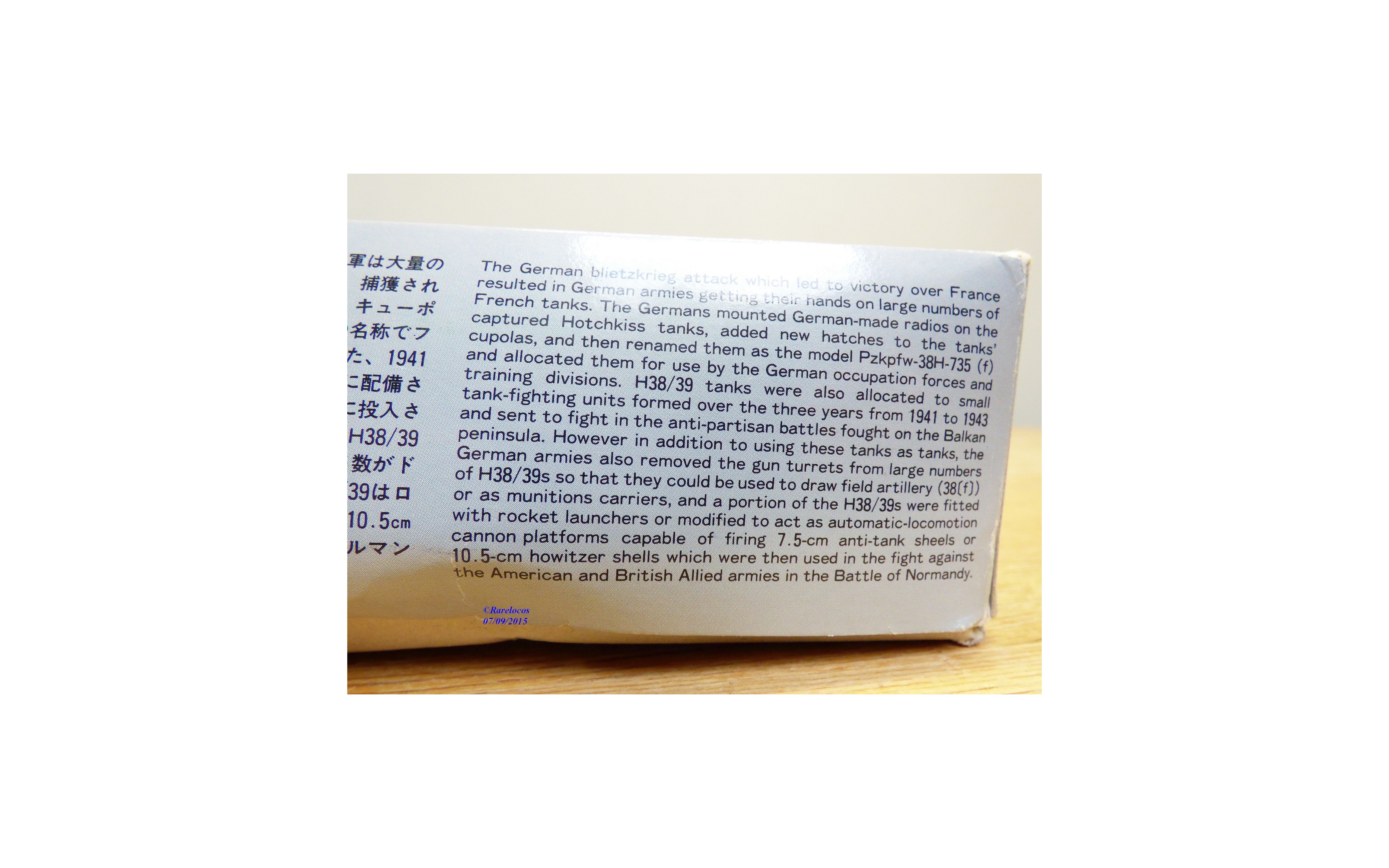 Maquette à monter ( kit ) au 1/35 ème du char français de la seconde guerre mondiale HOTCHKISS H35/39, pièces encore en grappes, décalcomanies et notice ( en japonais ) présentes, boîte d'origine en bon état .