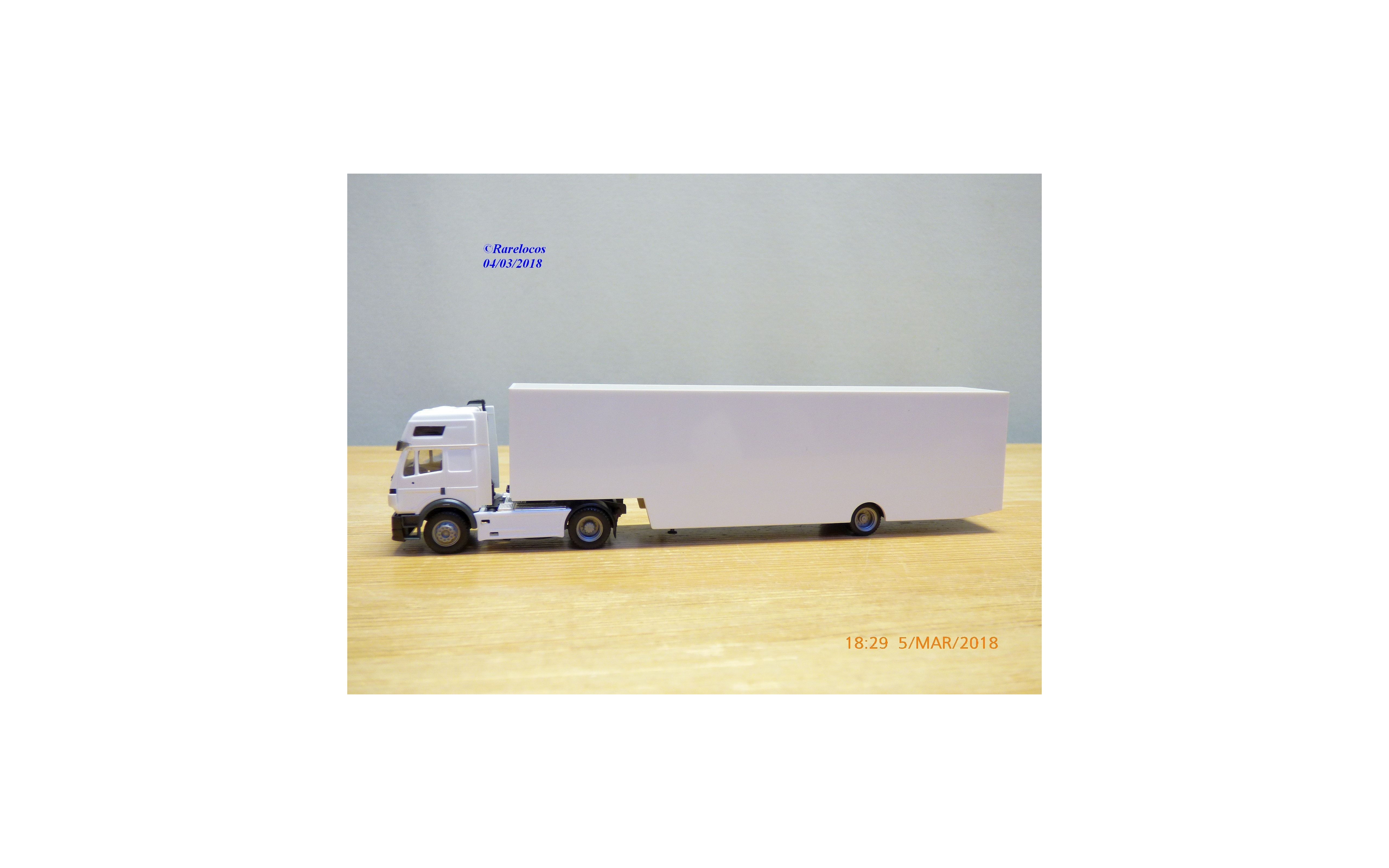 Modèle réduit au 1/87 ème ( HO ) d'un tracteur MERCEDES BENZ Eurocab 94 et d'une semi remorque porte voiture couverte à 1 essieu, rétroviseurs encore en grappe, boîte d'origine en excellent état.