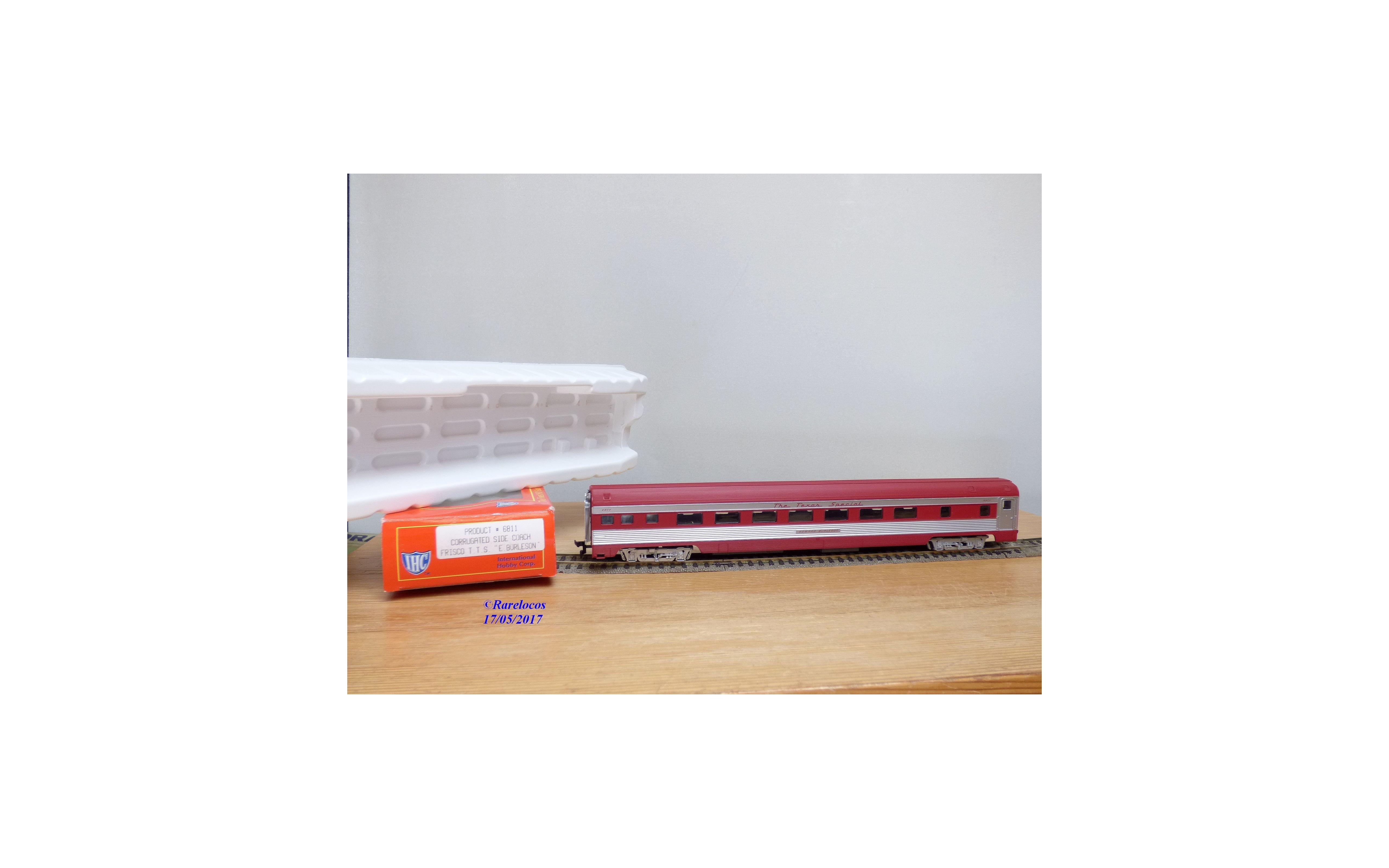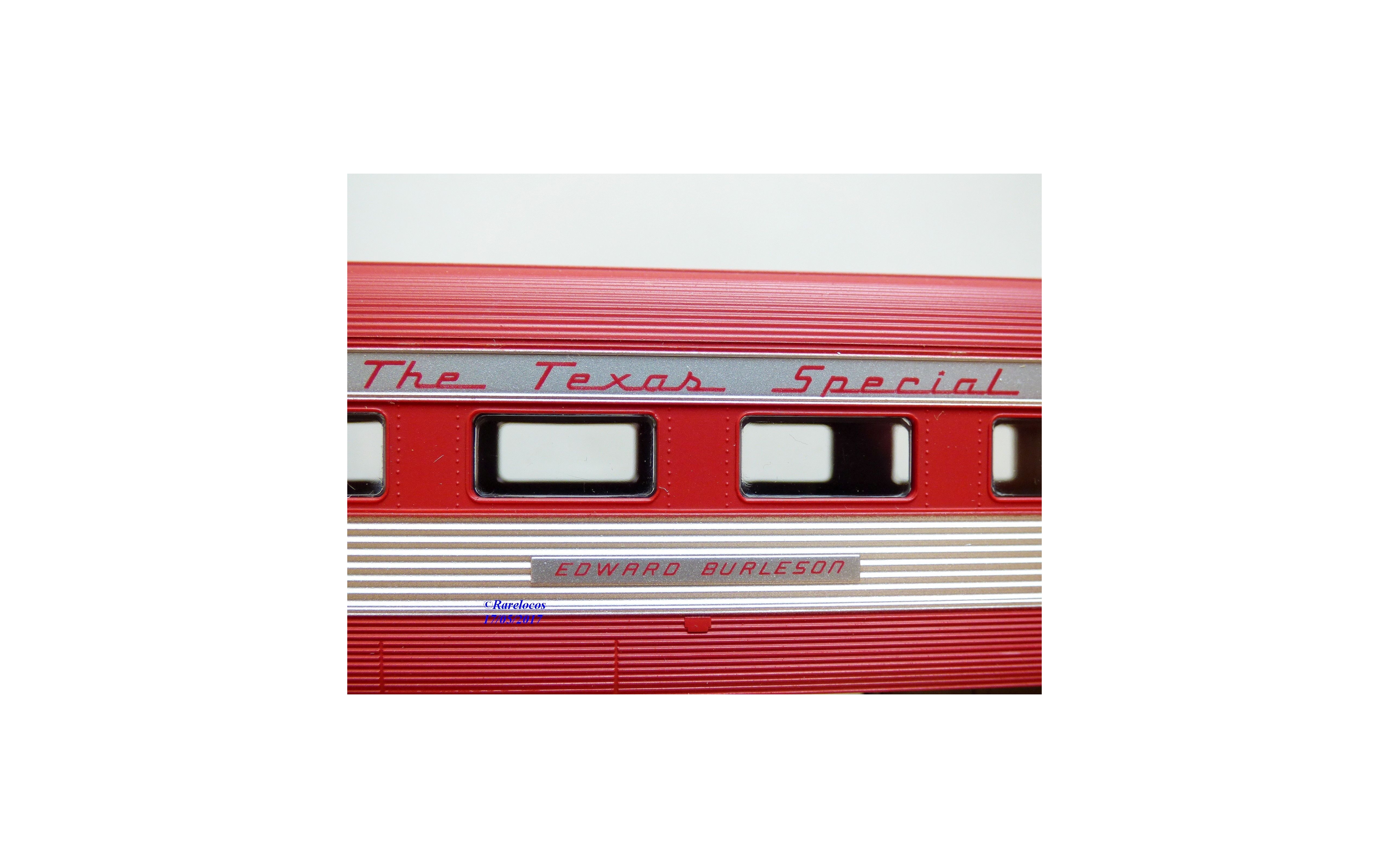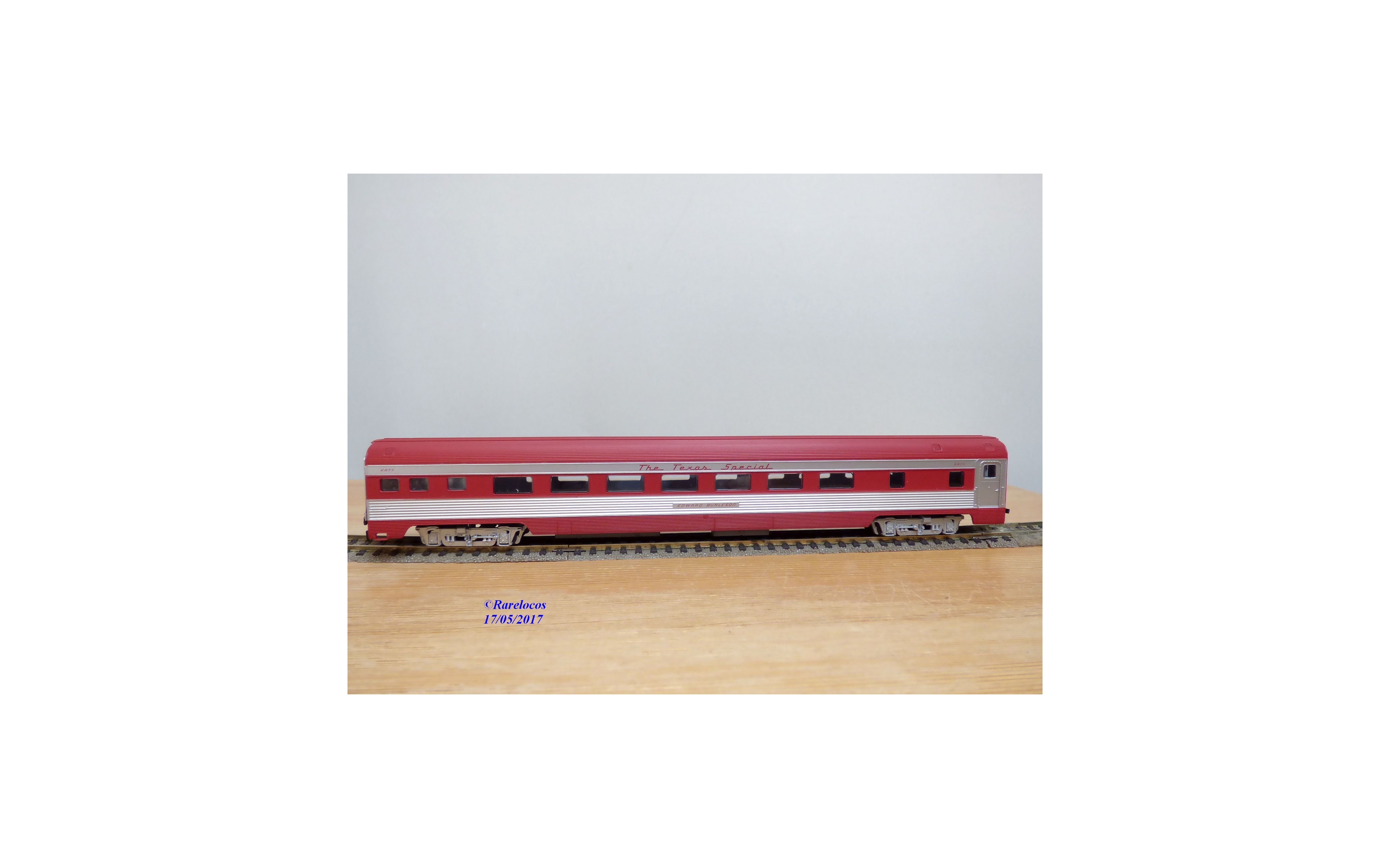 Voiture grandes lignes à 2 bogies type Budd inox ( corrugated side coach ) des chemins de fer américains ( SLSF : Saint Louis - San Francisco dit FRISCO et MKT : Missouti Kansas Texas dit KATY), livrée inox et lie de vin du convoi The Texas Special, baptisé : Sterling Price, boîte d'origine en état neuf.