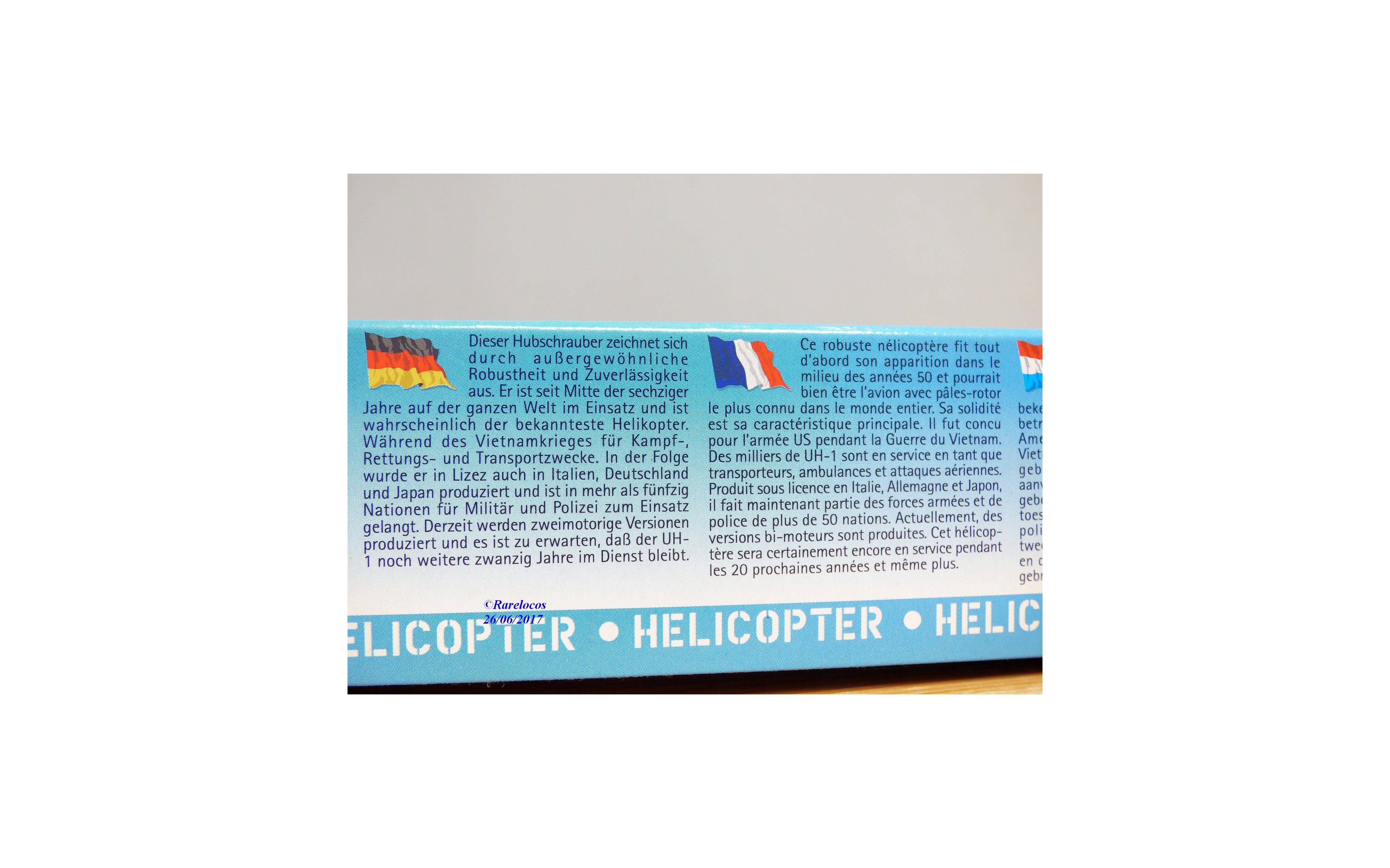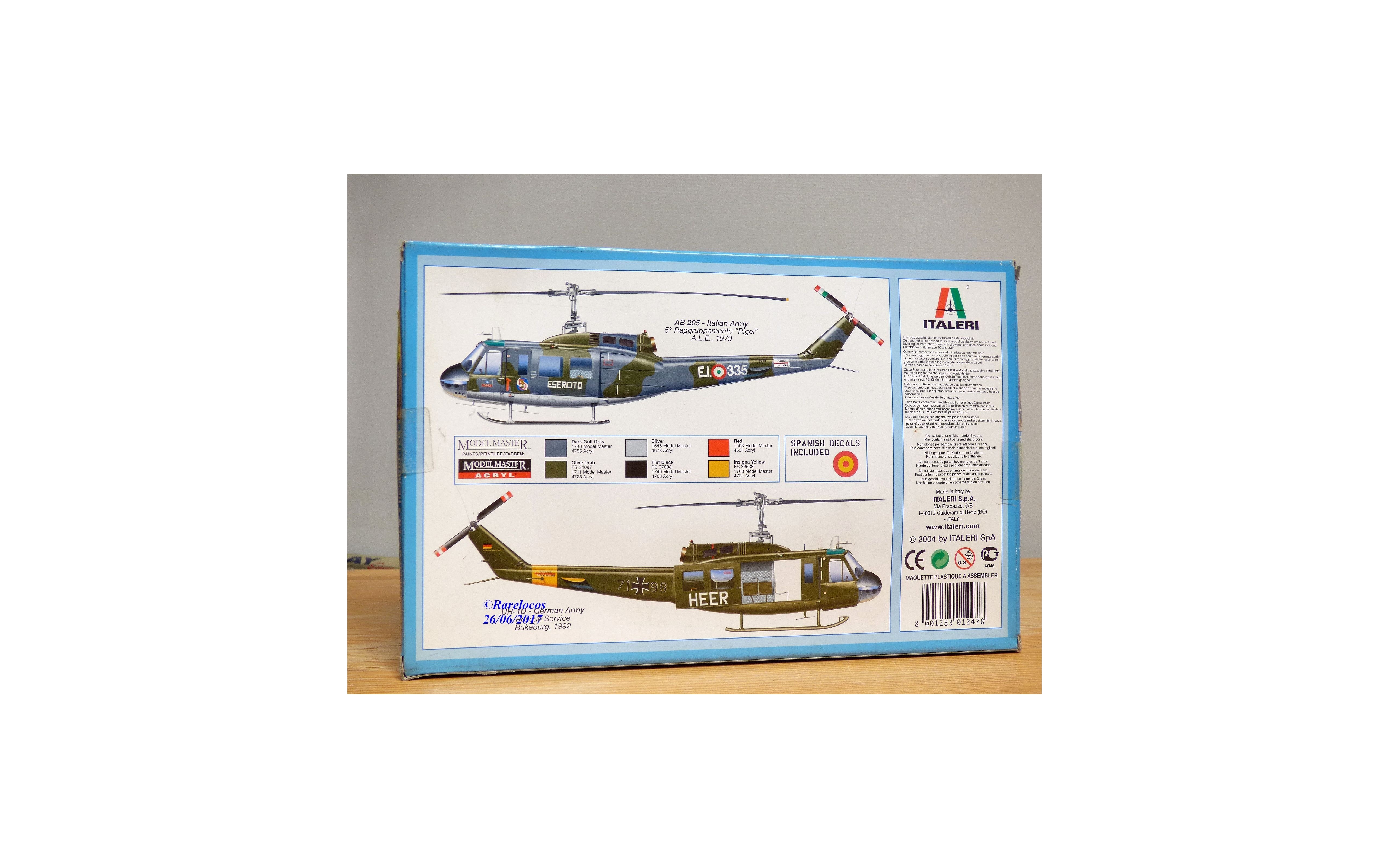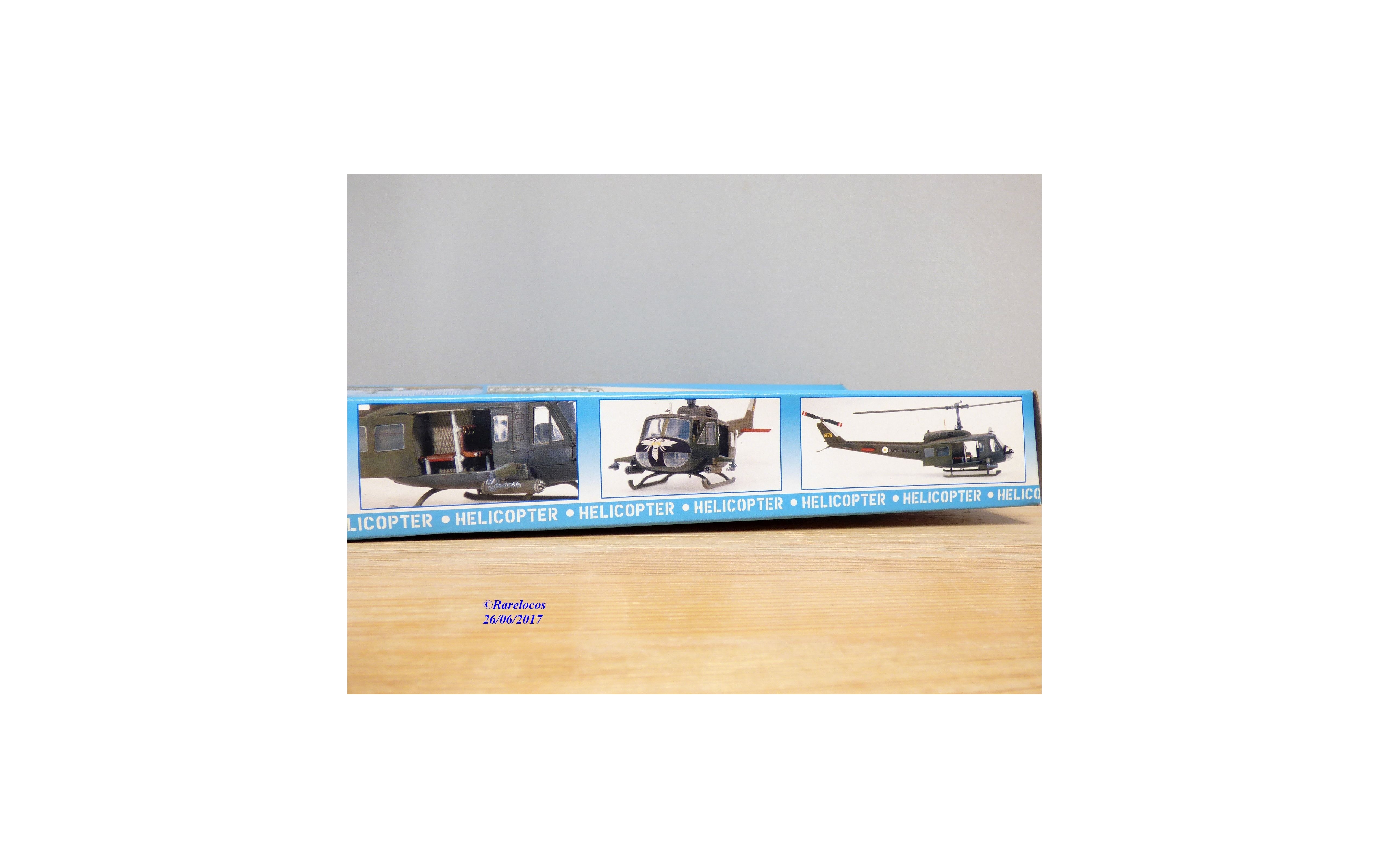 Maquette à monter ( kit ) en plastique à l'échelle du 1/72 ème de l'hélicoptère américain UH-1D " Slick ", décalcomanies pour une version de l' armée allemande et une version espagnole, boîte d' origine encore scellée .