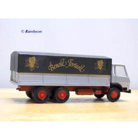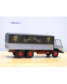 Modèle réduit en métal au 1/43 ème ( O ) d' un camion plateau bâché 6*4 Berliet GRH 230 aux couleurs de l' entreprise Benoit Fortant, pas de boîte d' origine.