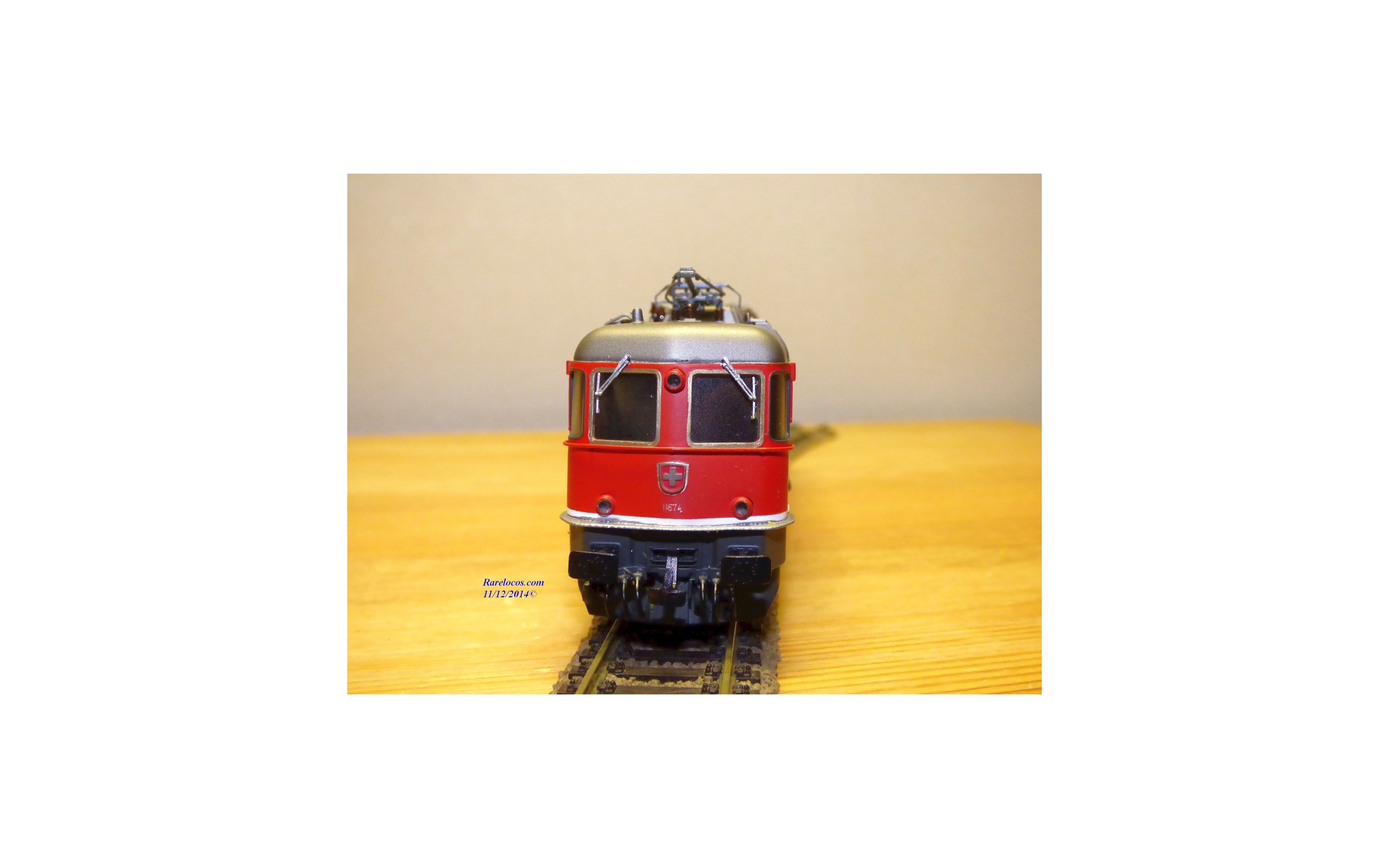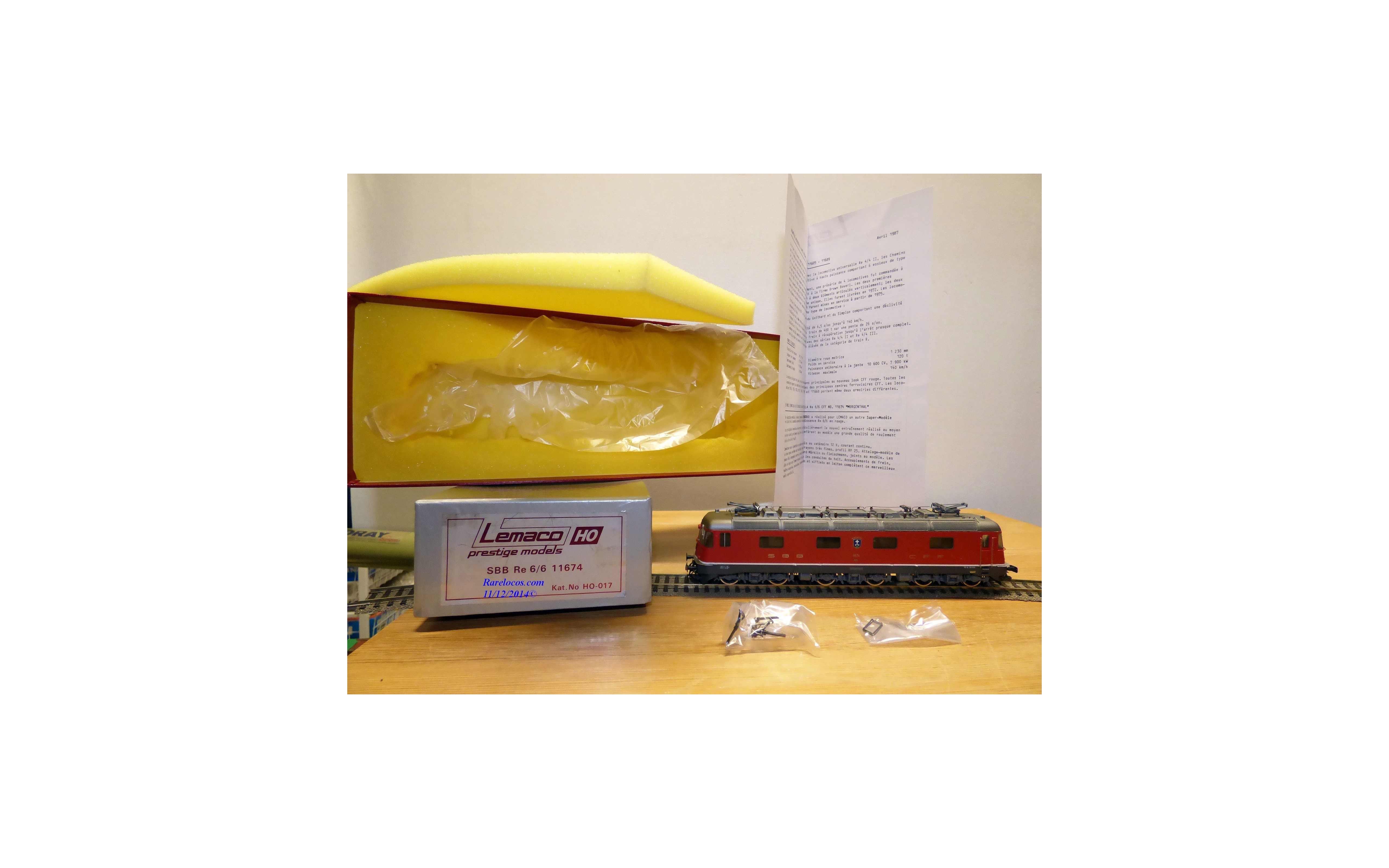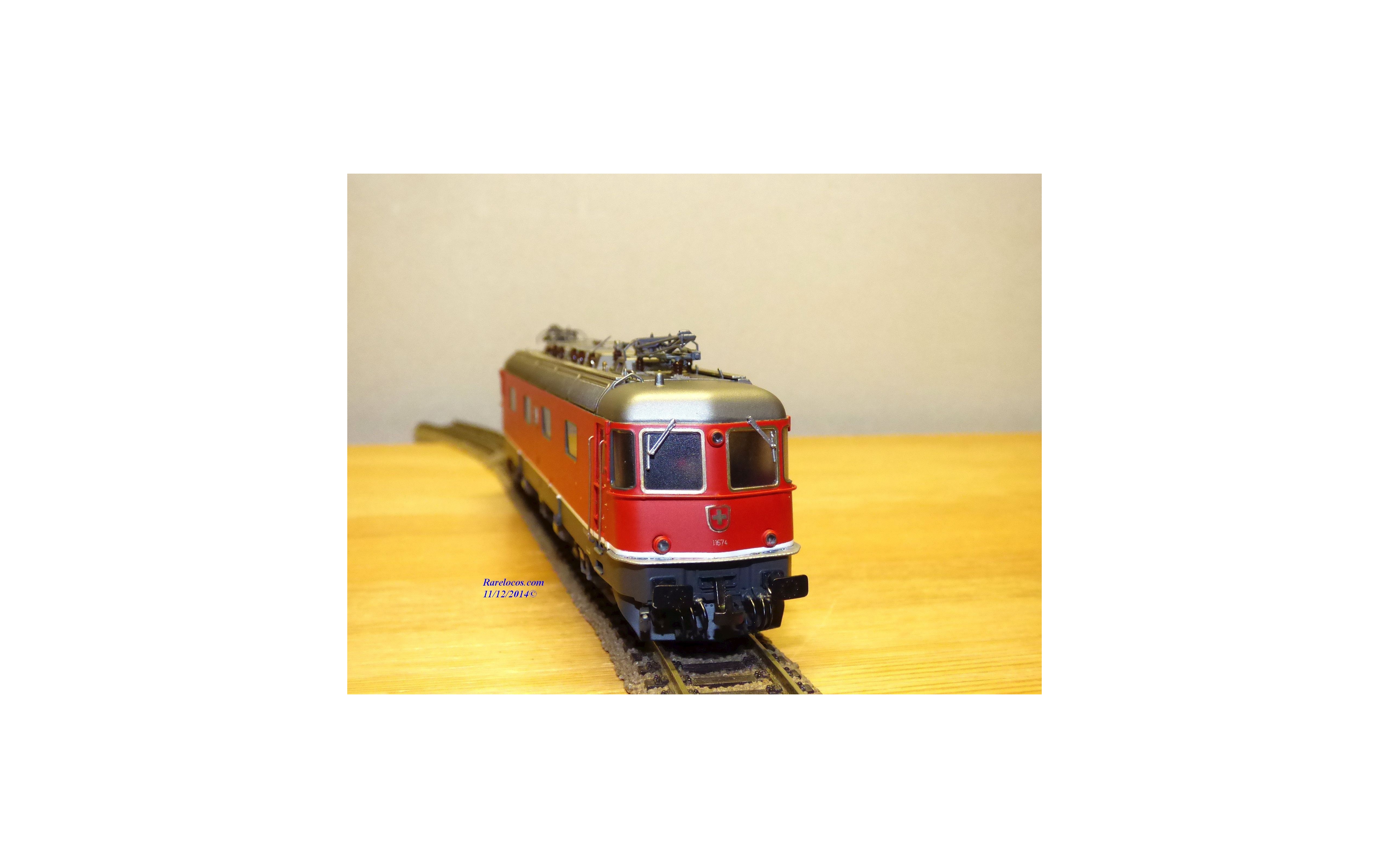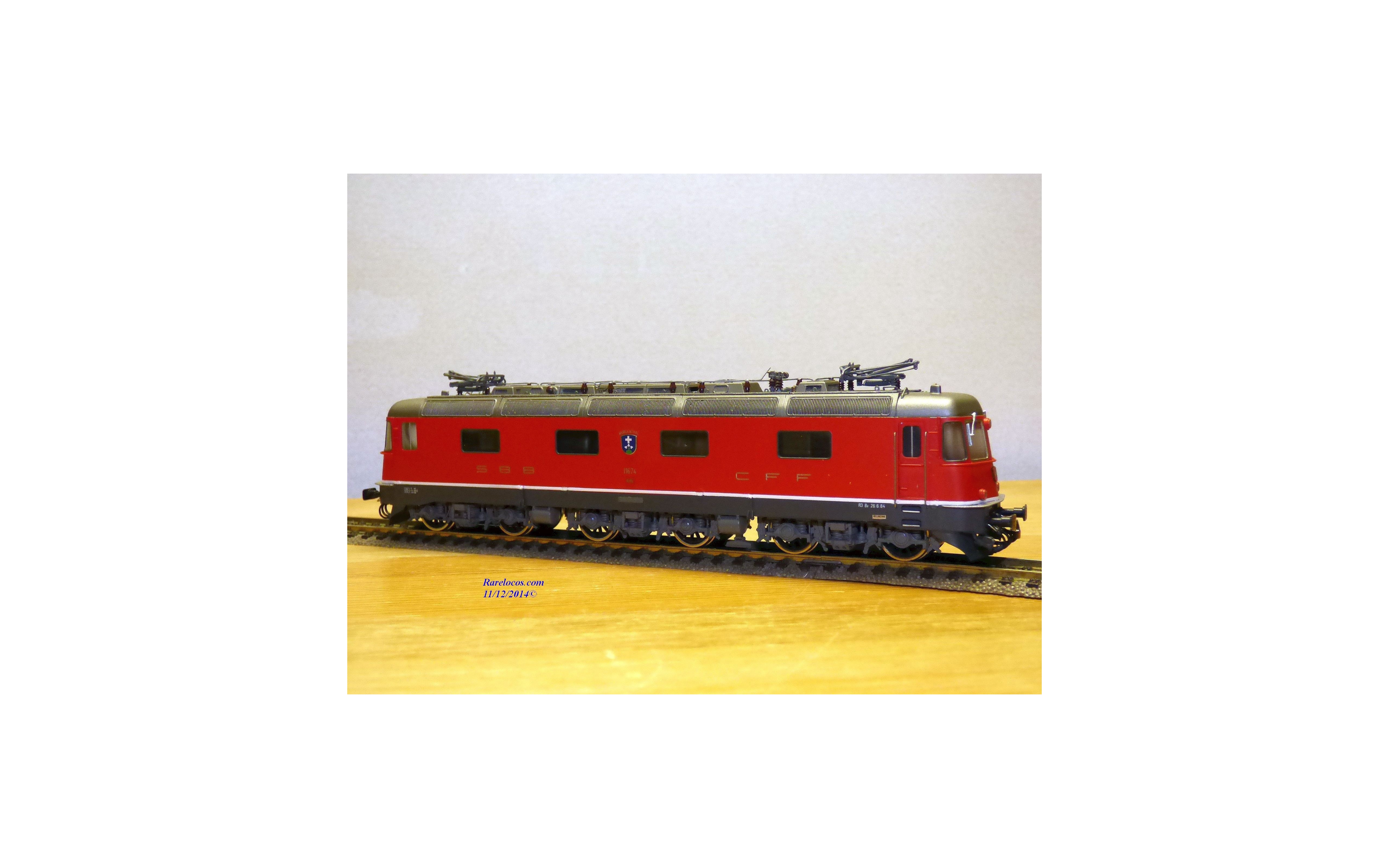 Rare motrice Bo Bo Bo série Re 6/6 des chemins de fer suisses ( SBB/CFF/FFS), laiton peint, livrée rouge vif , immatriculation : 11674 avec blason de la ville de Murgenthal, pièces de détaillage présentes, notice présente, boîte d'origine en excellent état.