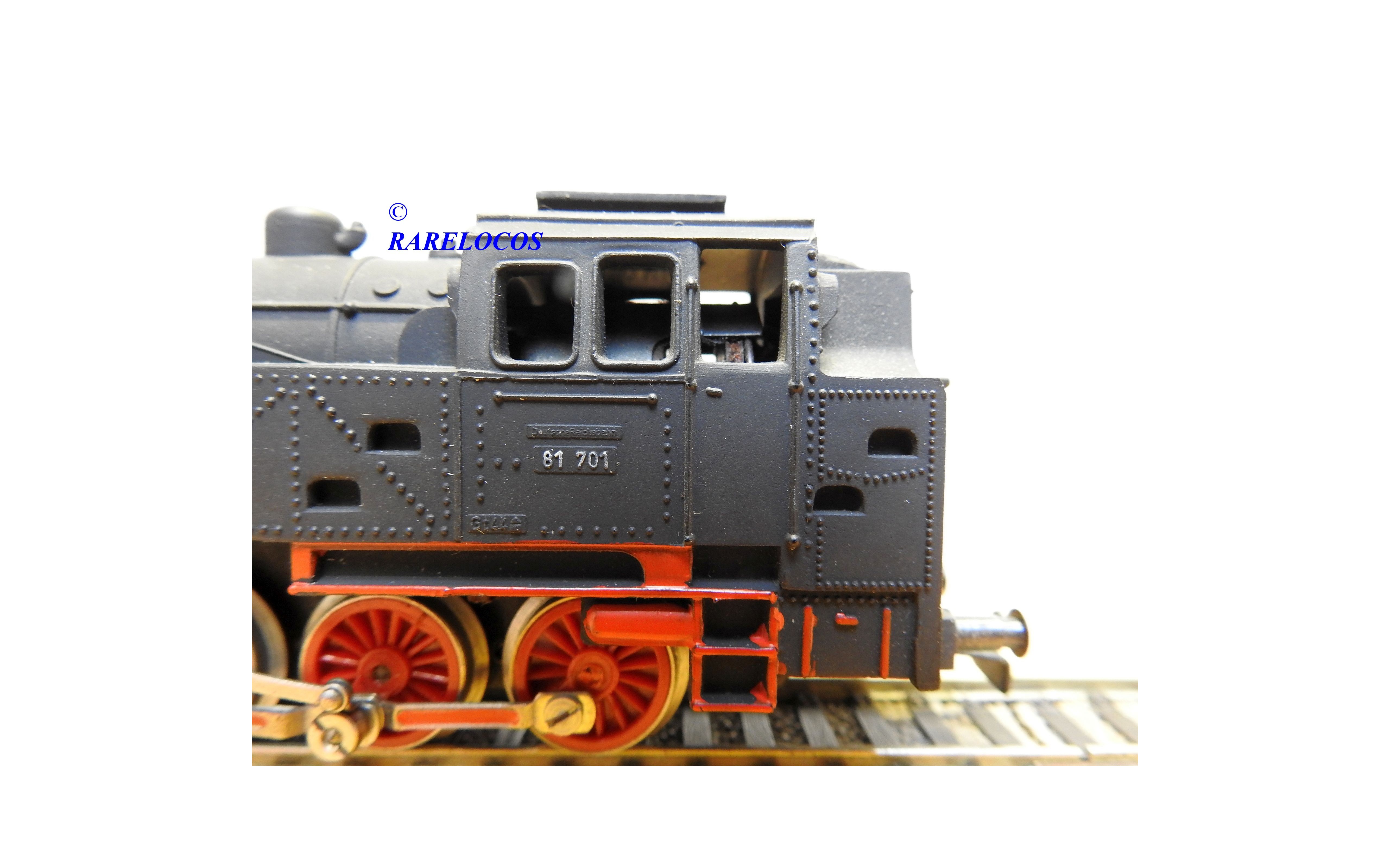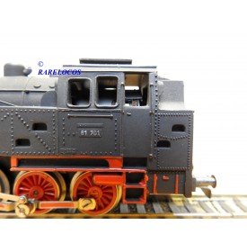 Locotender 040T série Br 81 des chemins de fer allemands ( DR ), livrée noire mat ( d'origine ) à soubassements rouges, feux avant fonctionnels ( testés OK ), immatriculation : 81 701, pas de boîte d'origine .