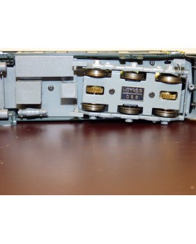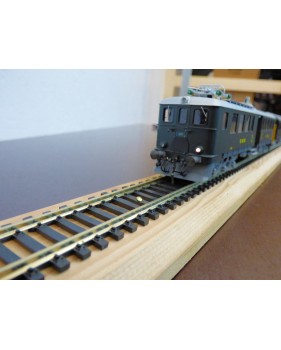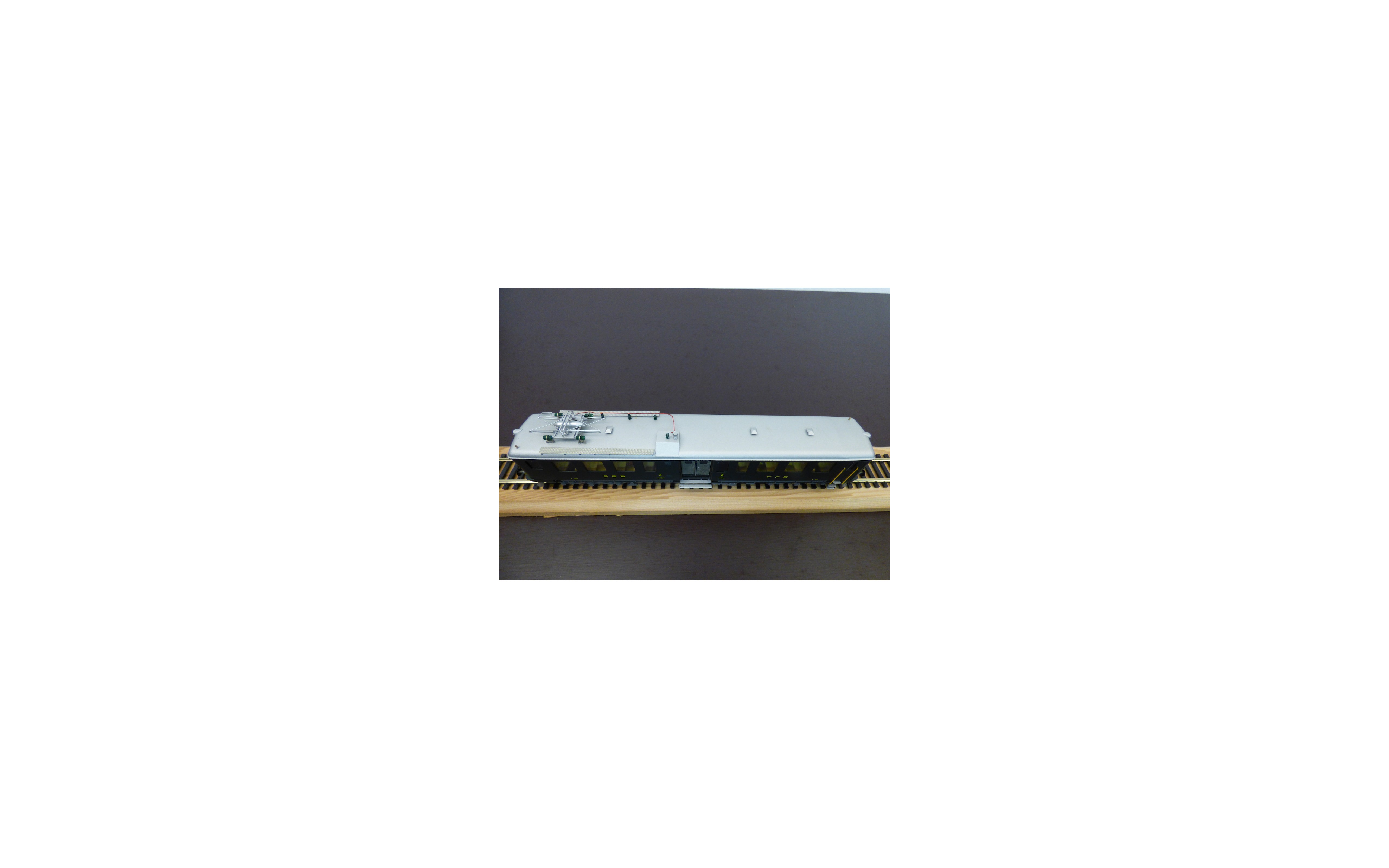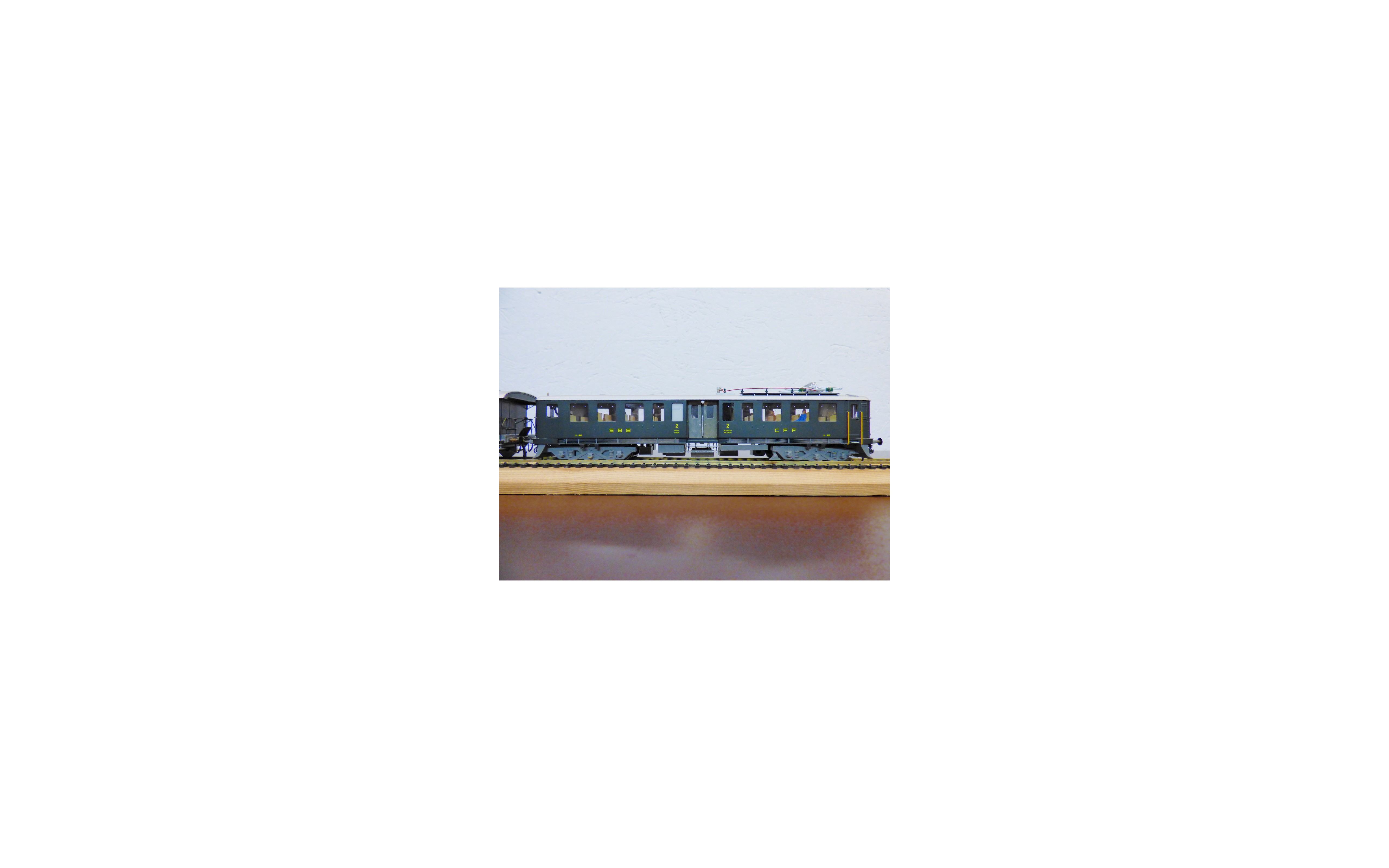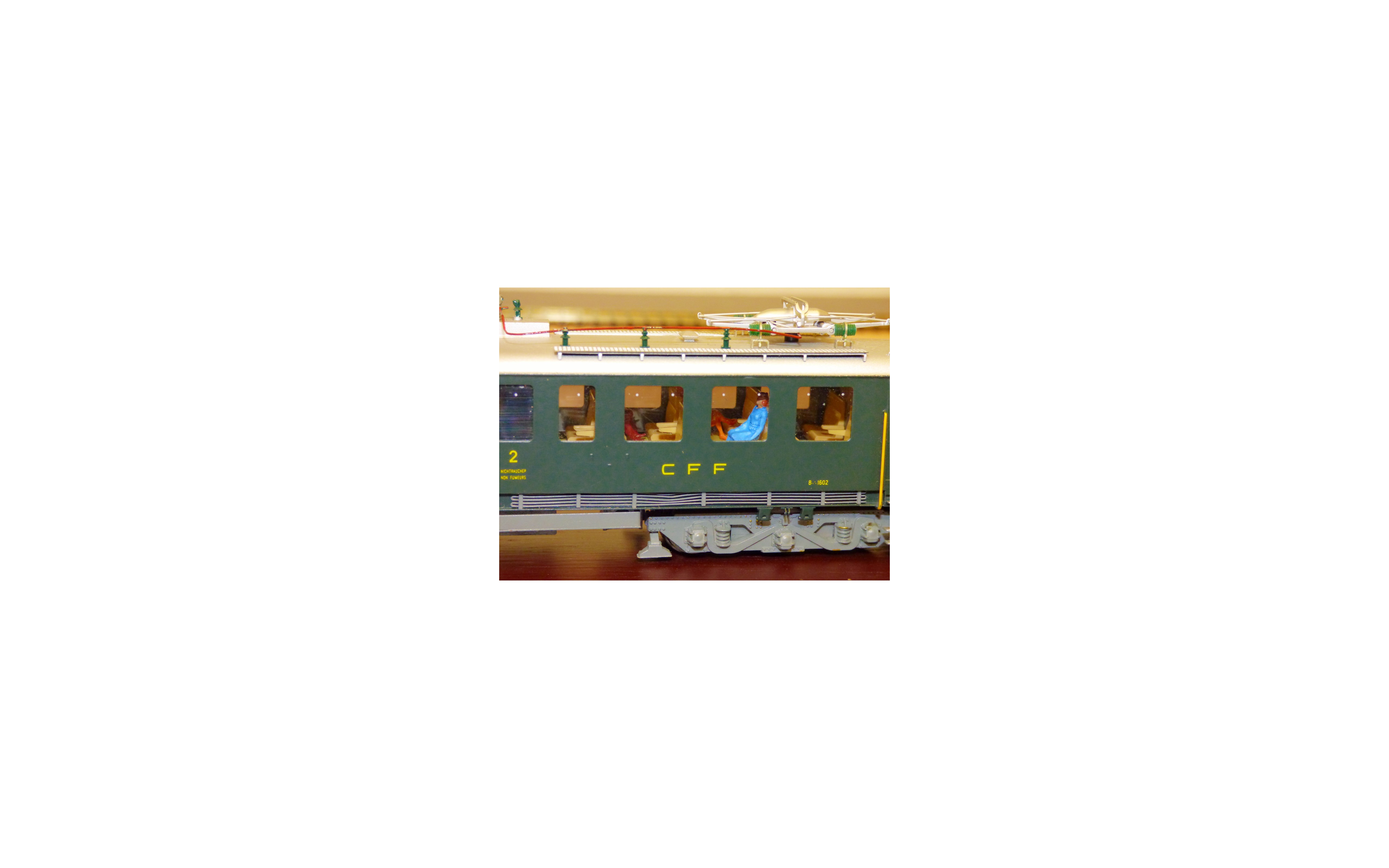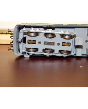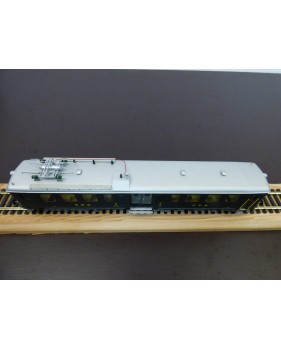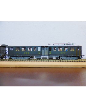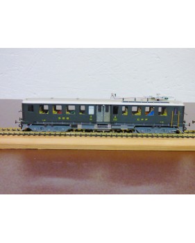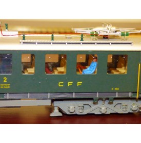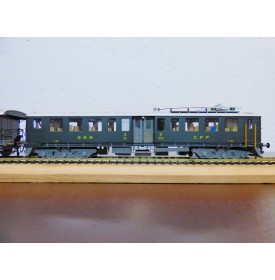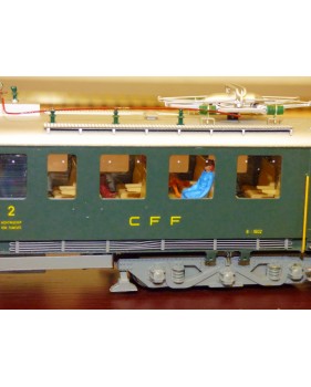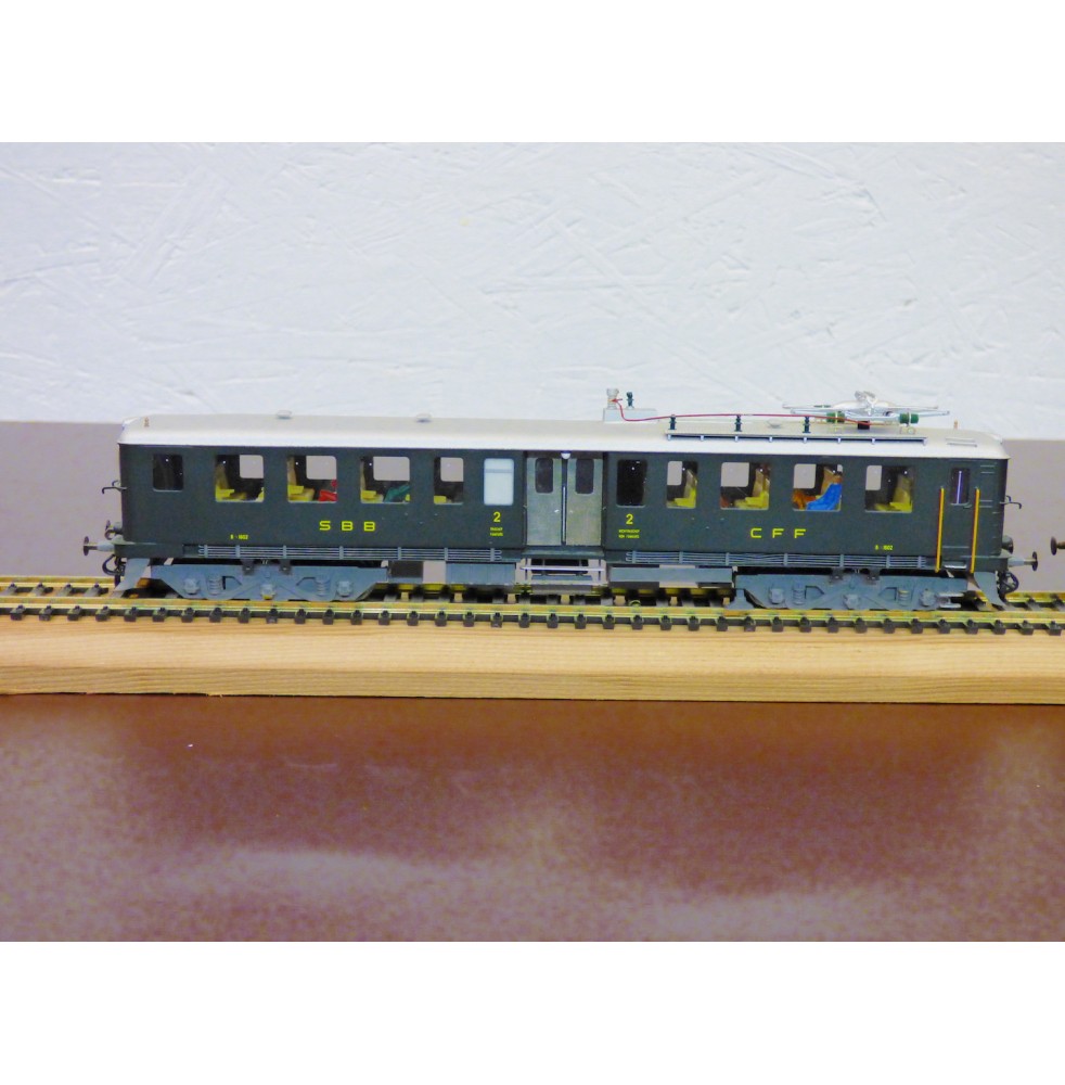 Rare automotrice type Be 4/6 des chemins de fer suisses ( SBB / CFF / FFS ), laiton peint d' usine, livrée vert sapin à toit gris, figurines de voyageurs, immatriculation : 1602, pas de boîte d' origine.