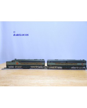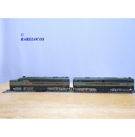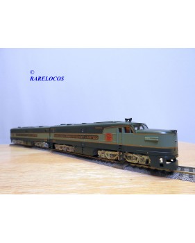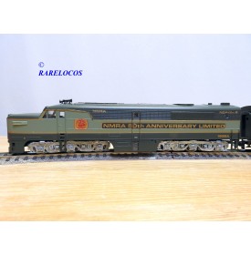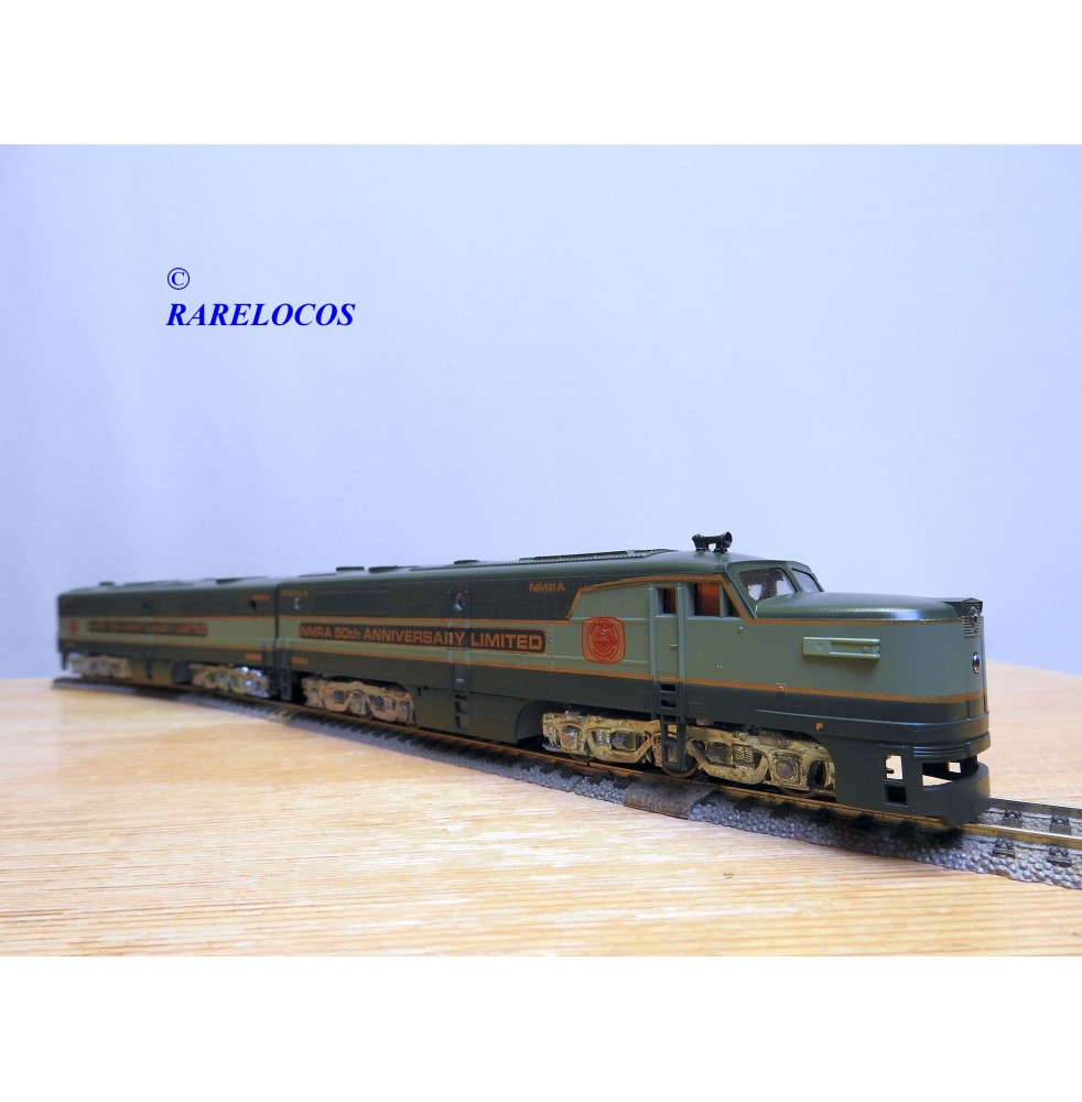 Locomotives diesel de ligne ALCO type PA 1 unités A et B des chemins de fer américains , l' unité A est motorisée, l' uniteé B non, livrée en 2 tons de vert avec marquages spécifiques NMRA 50th Anniversary Limited, notice présente, boîte d'origine en bon état.