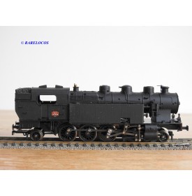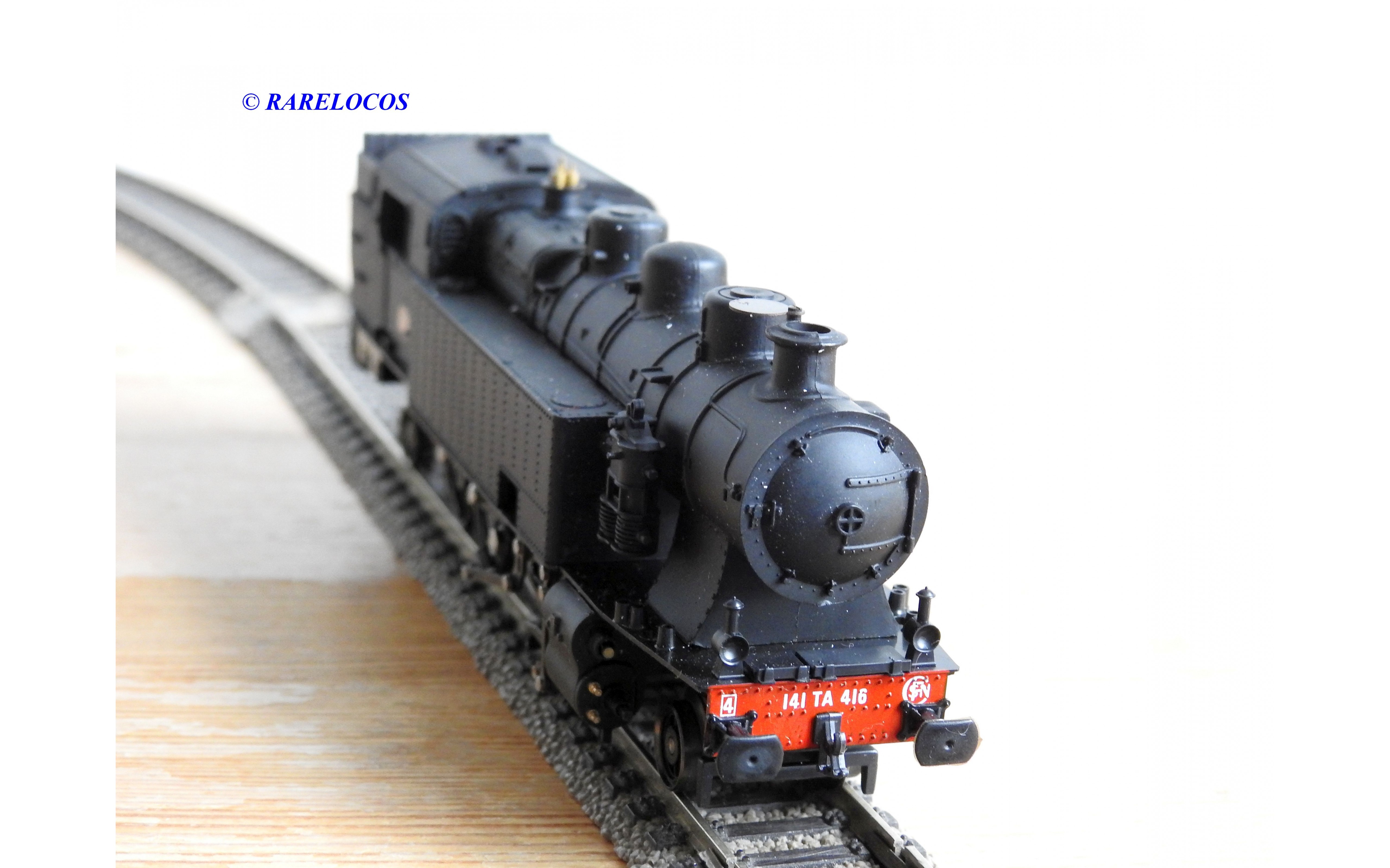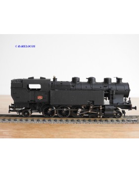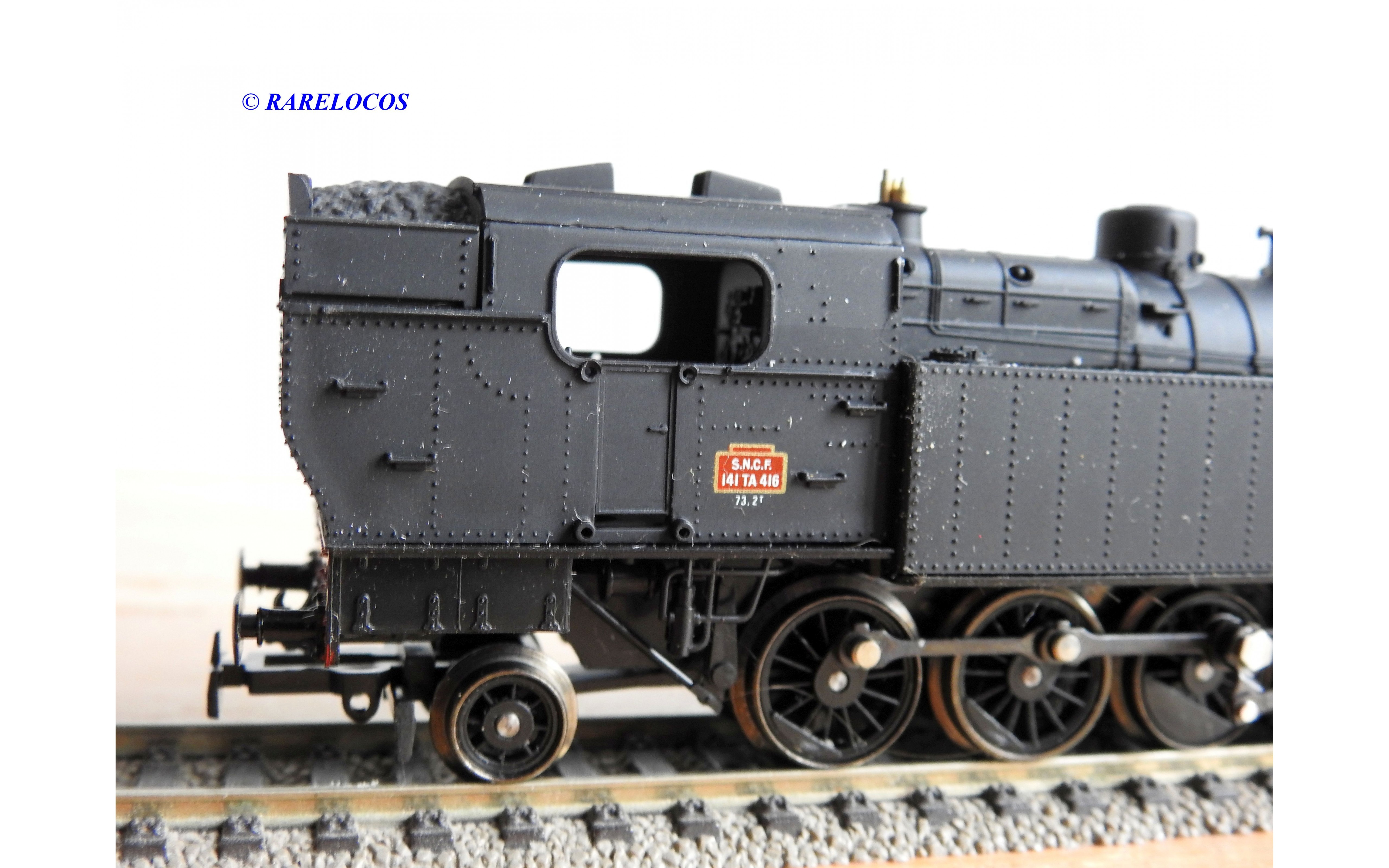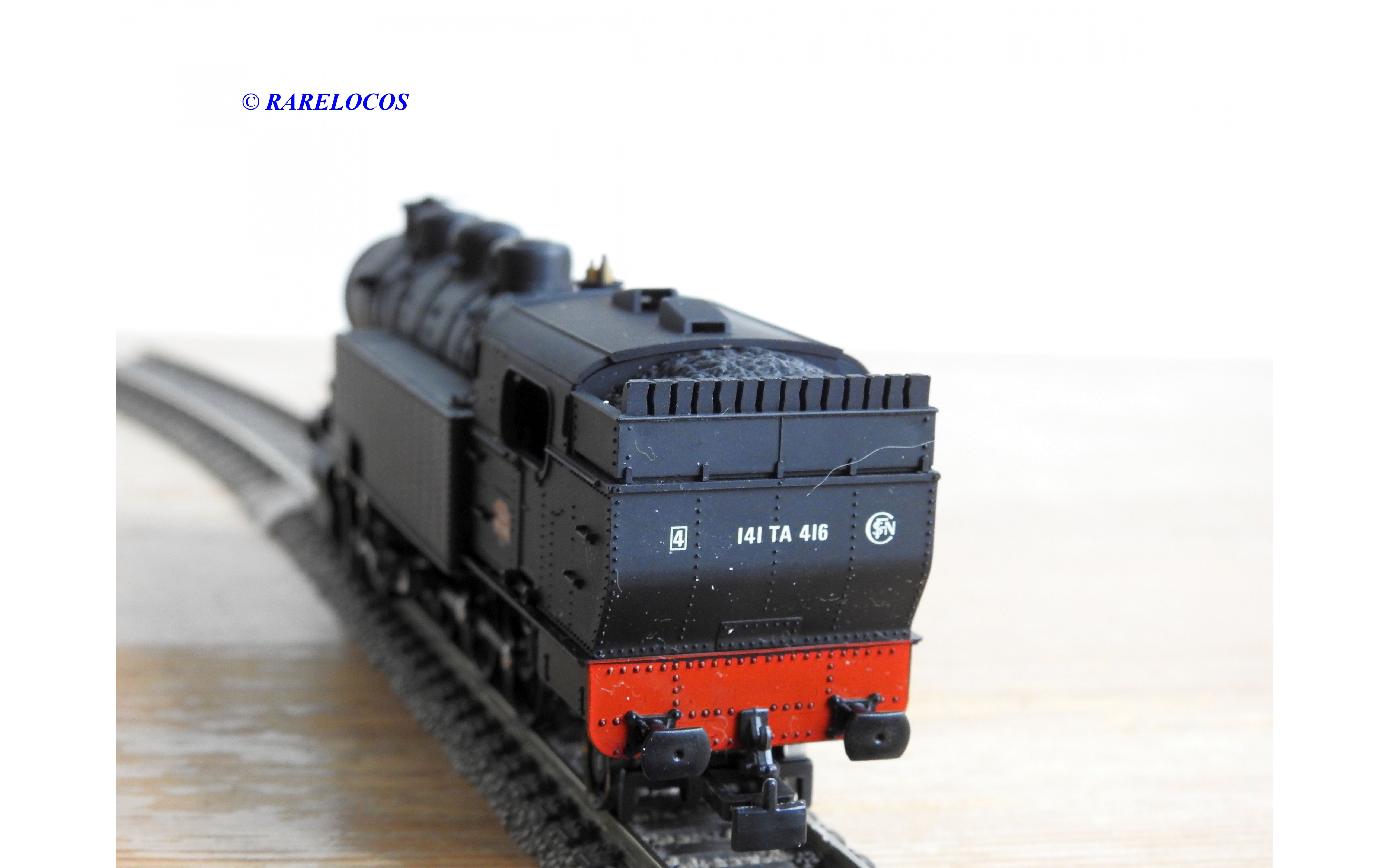 Locotender 141 TA, chauffe au charbon, des chemins de fer français ( SNCF ), livrée noir mat, moteur 5 pôles, pièces de détaillage encore scellées, notice présente, immatriculation : 141TA 416, boîte d'origine en très bon état .