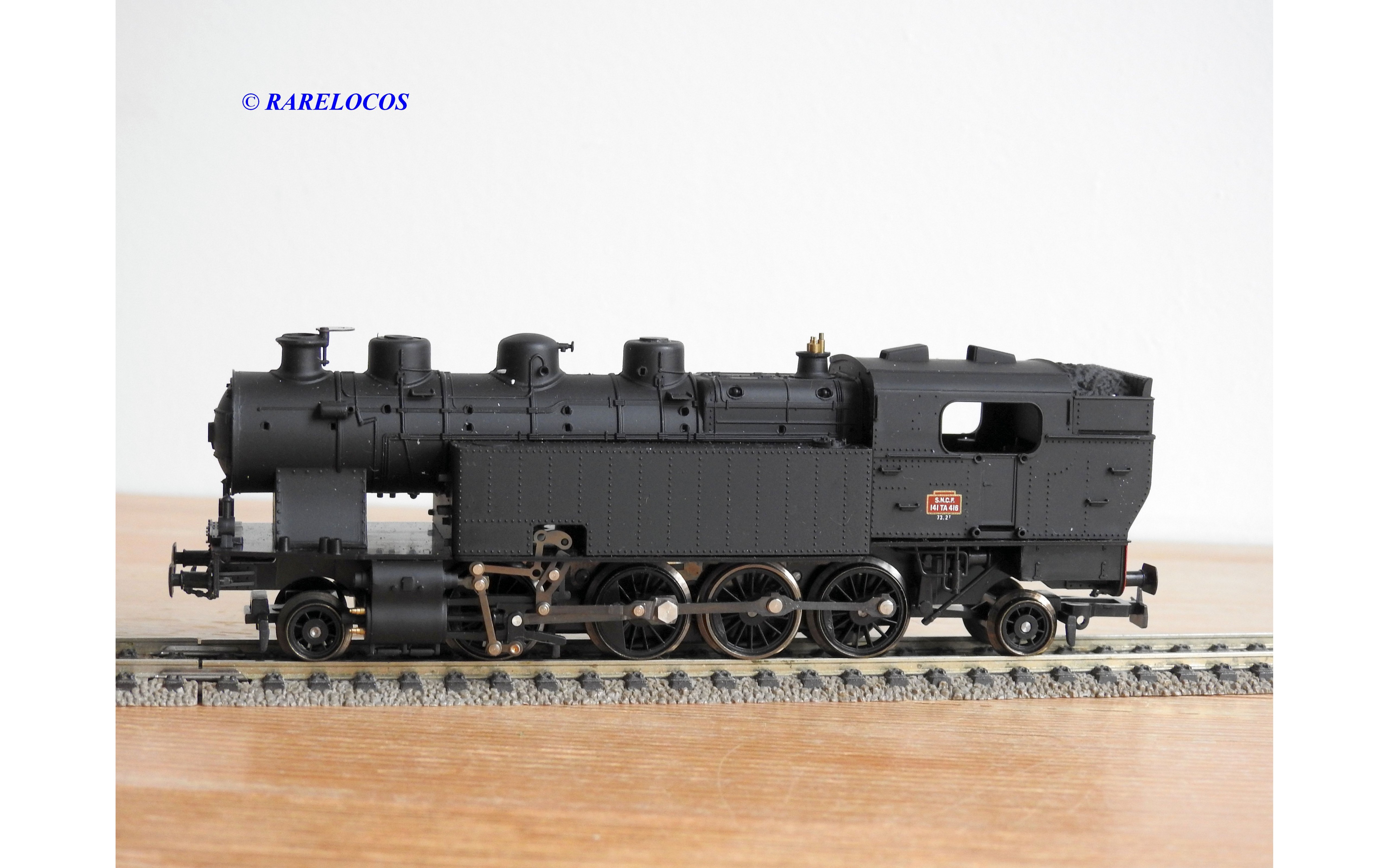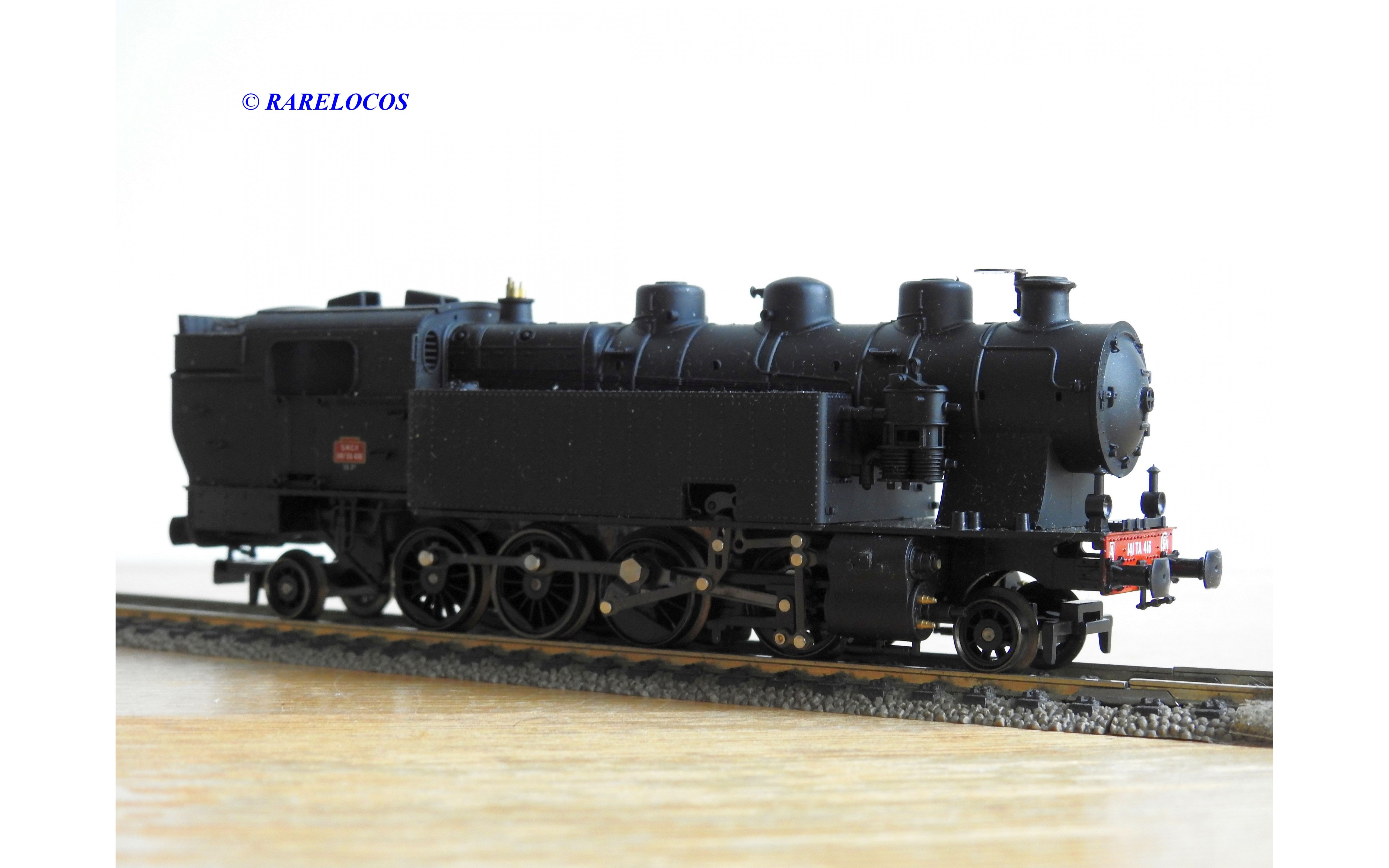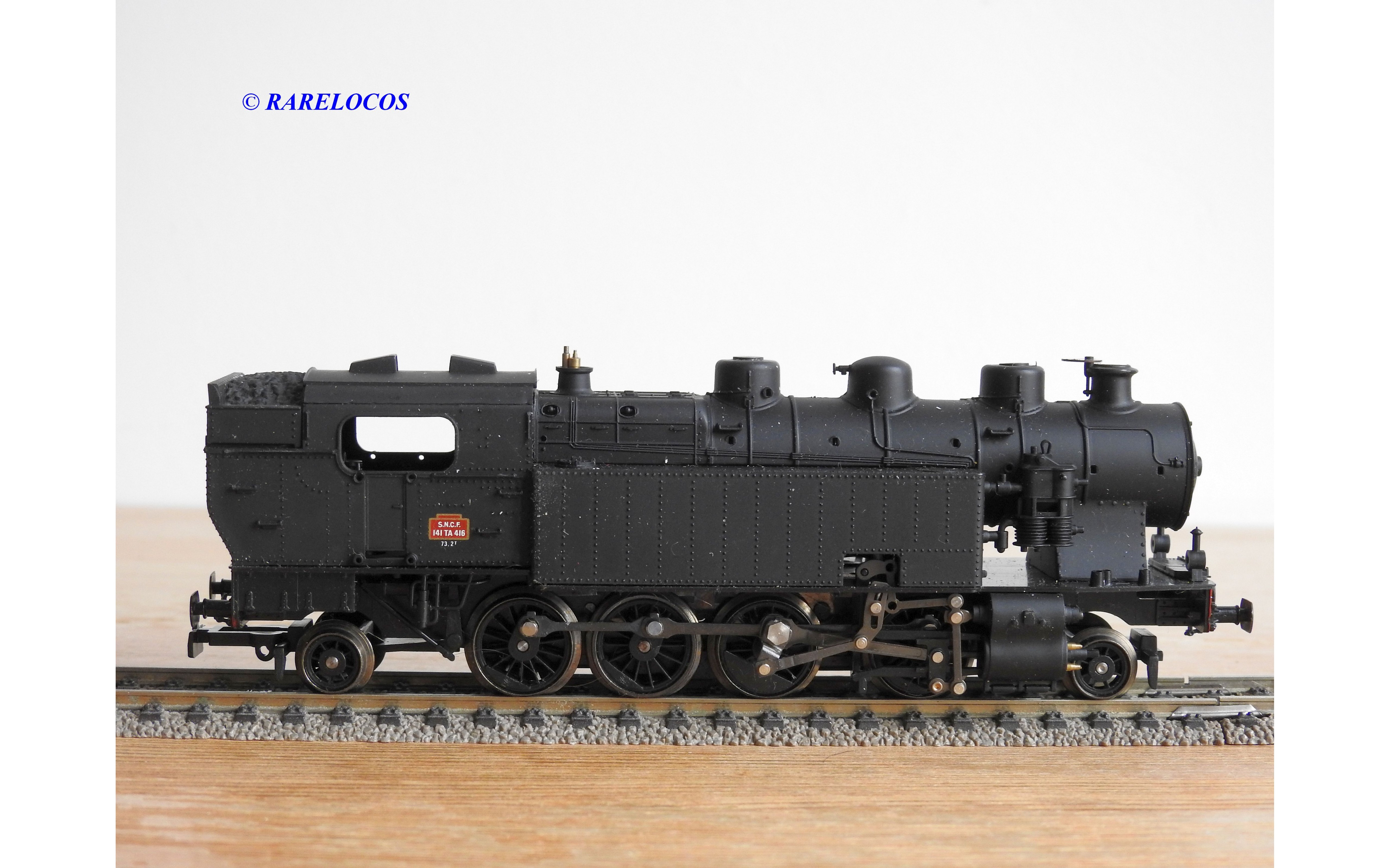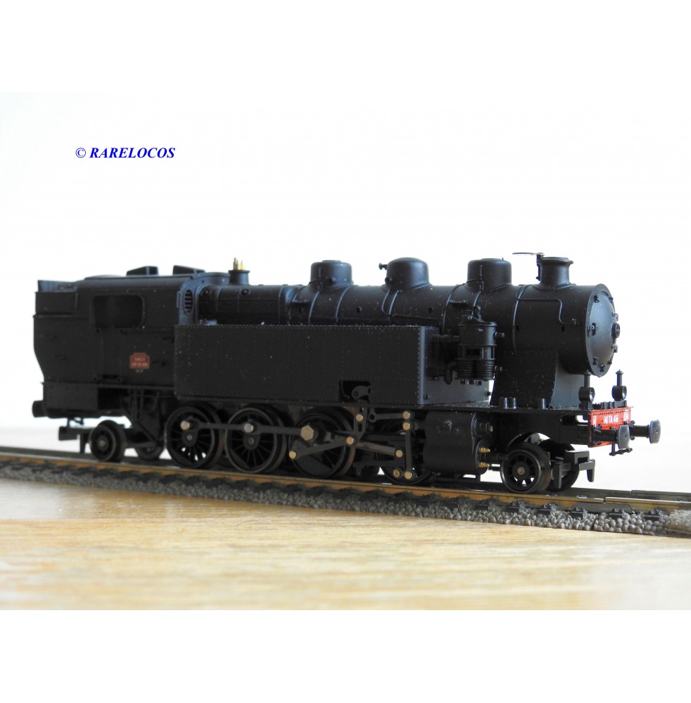 Locotender 141 TA, chauffe au charbon, des chemins de fer français ( SNCF ), livrée noir mat, moteur 5 pôles, pièces de détaillage encore scellées, notice présente, immatriculation : 141TA 416, boîte d'origine en très bon état .