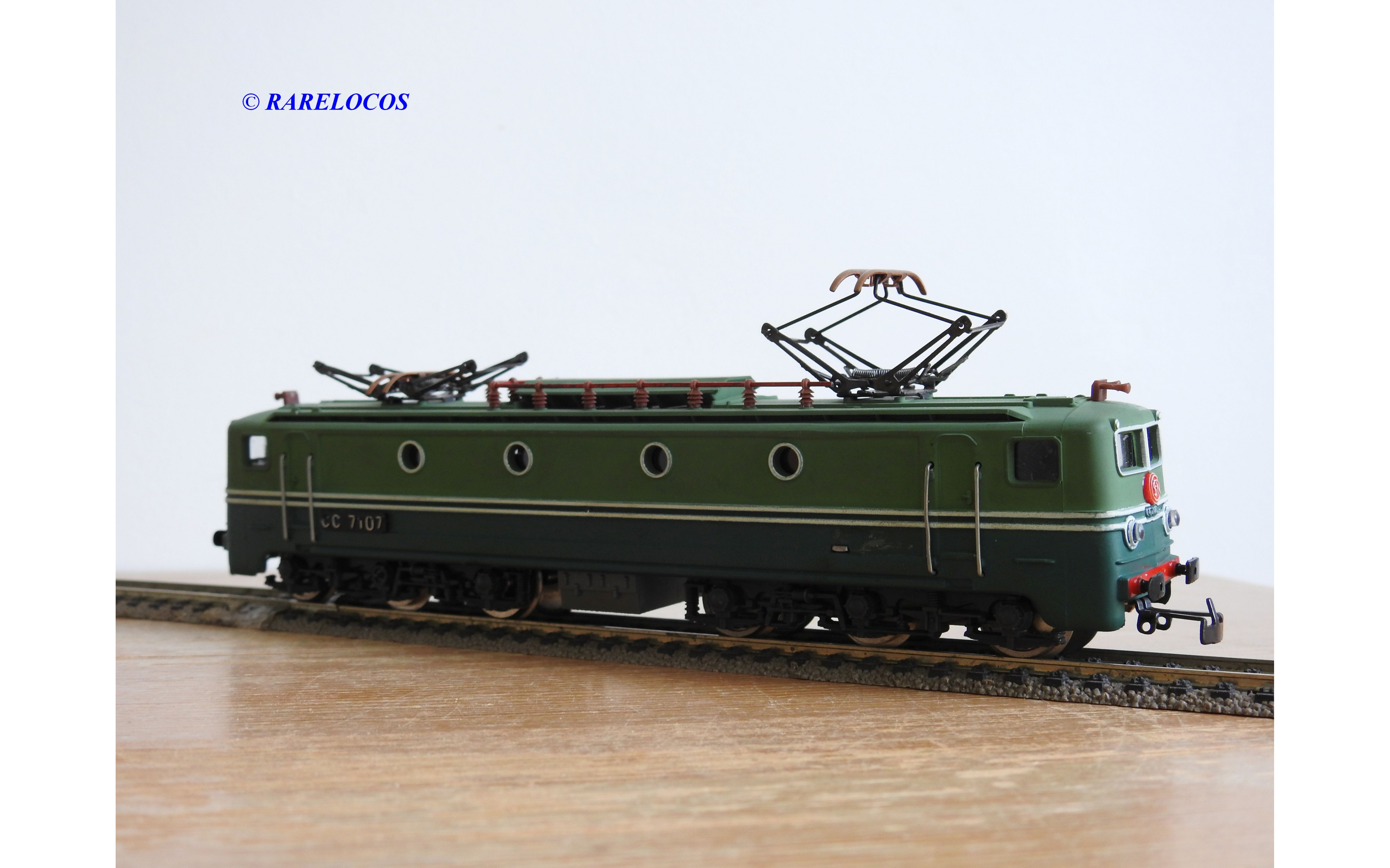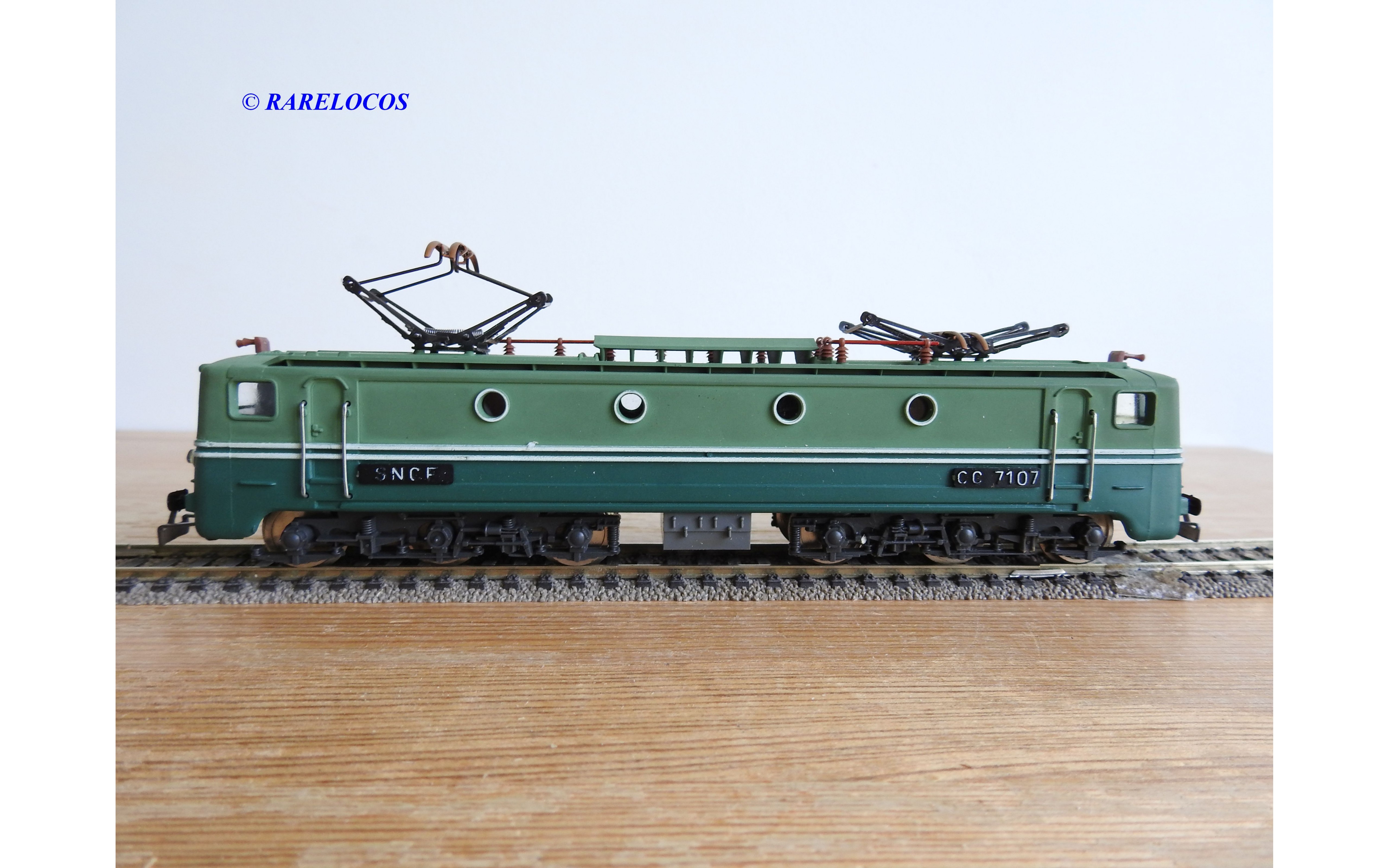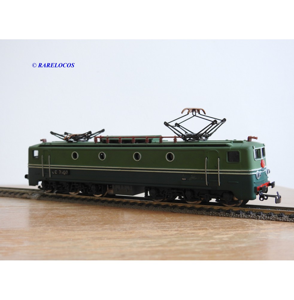 Motrice série CC 7100 des chemins de fer français ( SNCF ), livrée en 2 tons de vert, immatriculation : CC 7107, boîte d'origine mais pas la bonne référence.