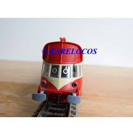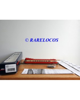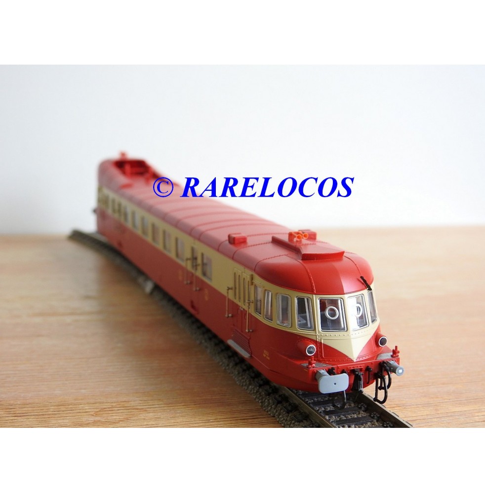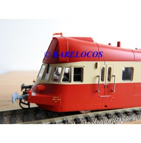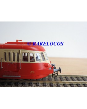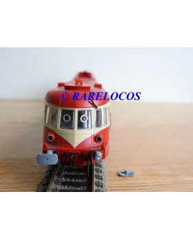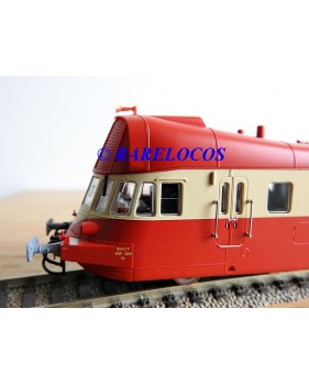Autorail Renault ABJ 3 de 2 ème classe des chemins de fer français ( SNCF ), livrée rouge et crême, immatriculation :XBDP 3506, pièces de détaillage encore scellées, notice présente et liste de pièces détachées présentes, boîte d'origine en très bon état.