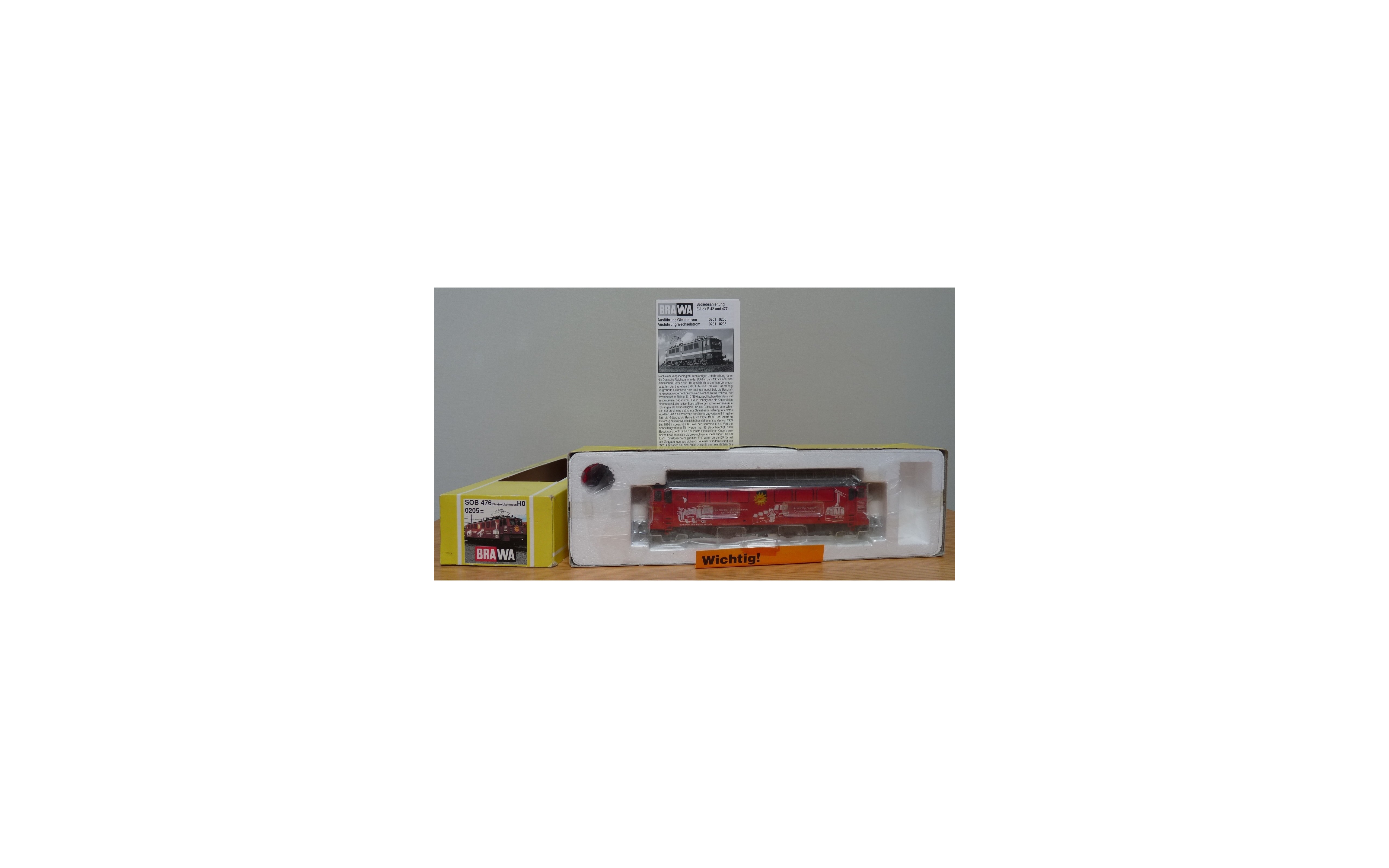 Peu courante motrice Bo Bo Ae 476 ( ex Br 42/ 242 DR et Br 142 DB ) des chemins de fer suisses ( SOB : Süd Ost Bahn ), livrée rouge à toit gris avec nombreux marquages touristiques, notice présente, boîte d'origine en état correct .