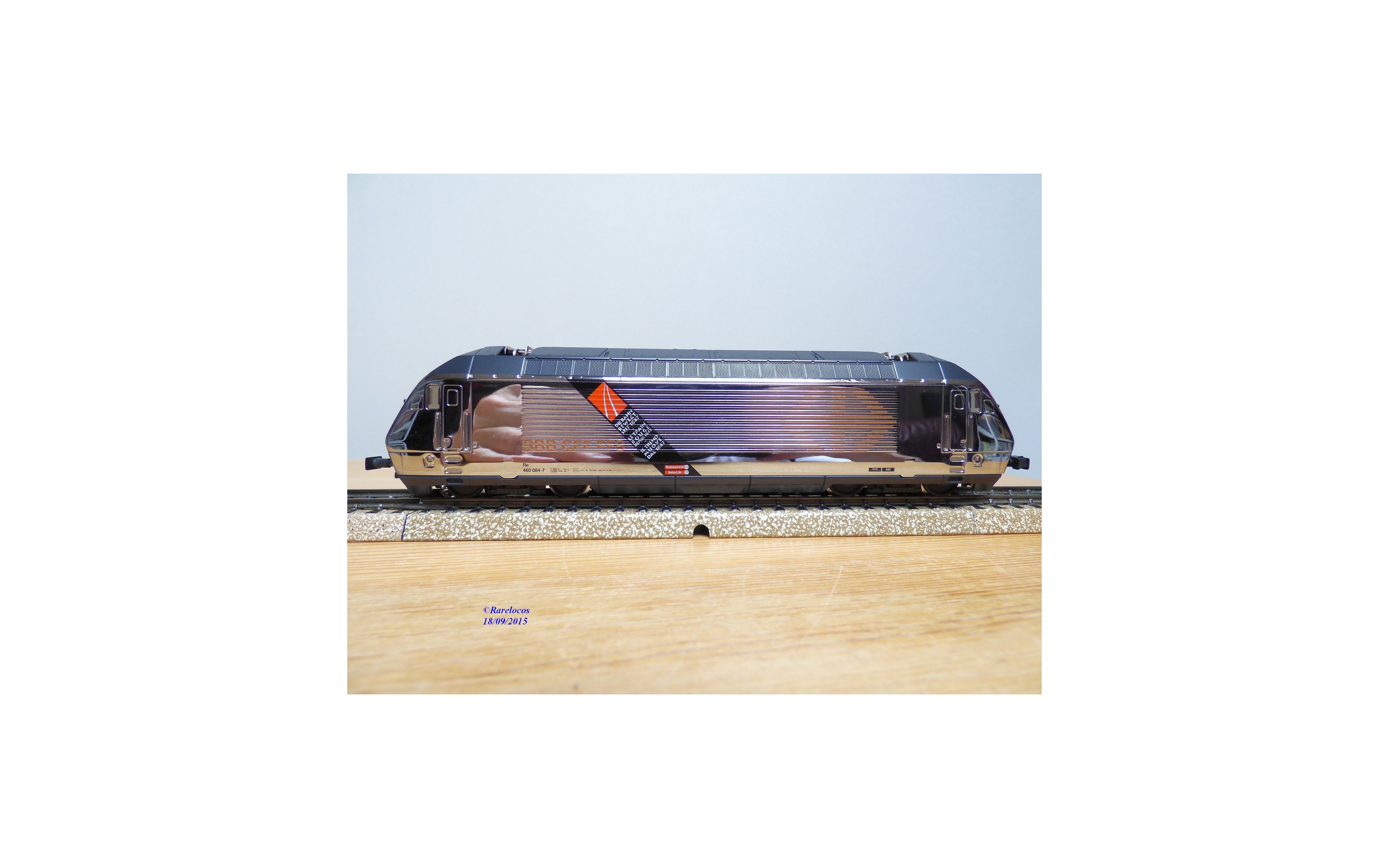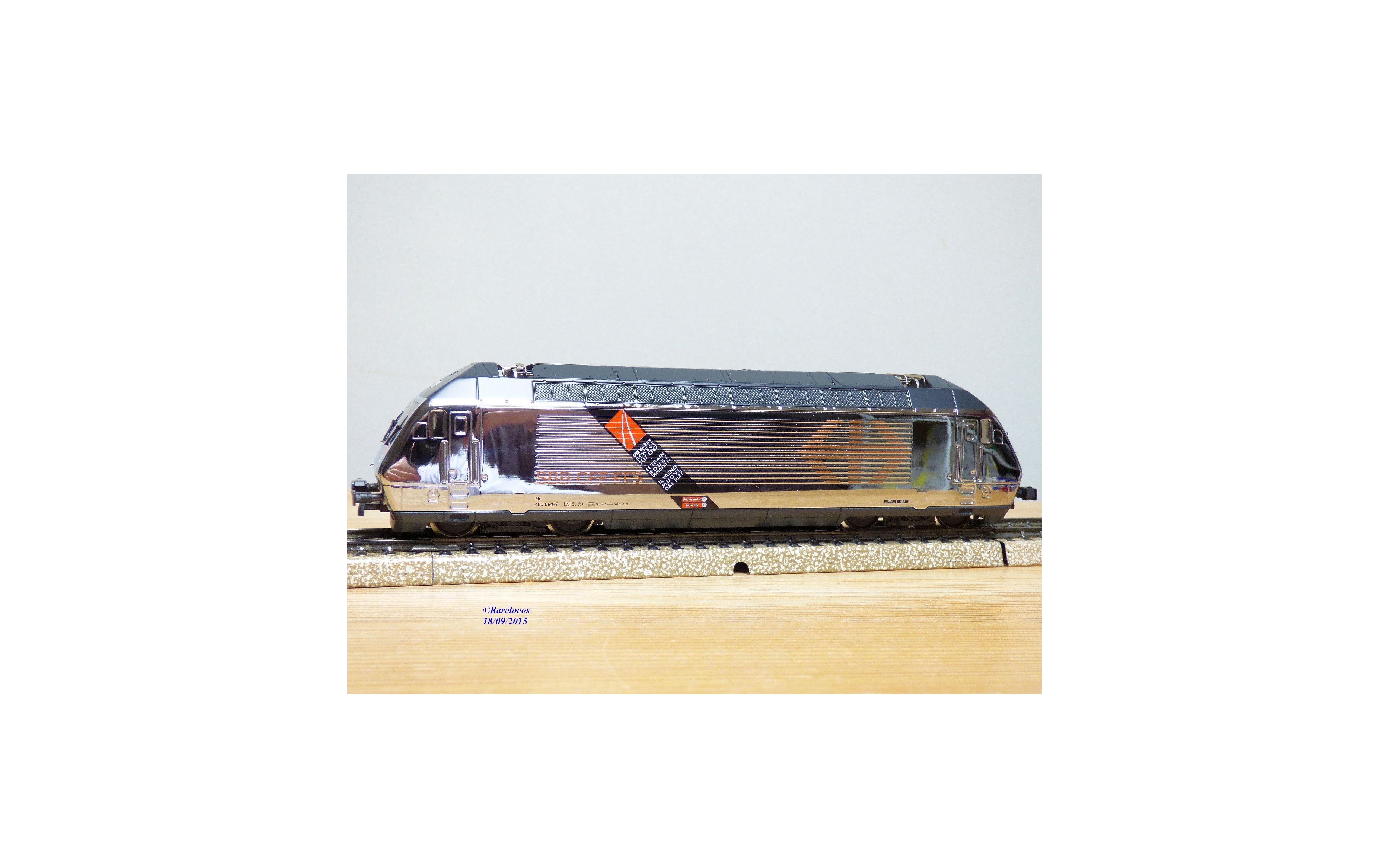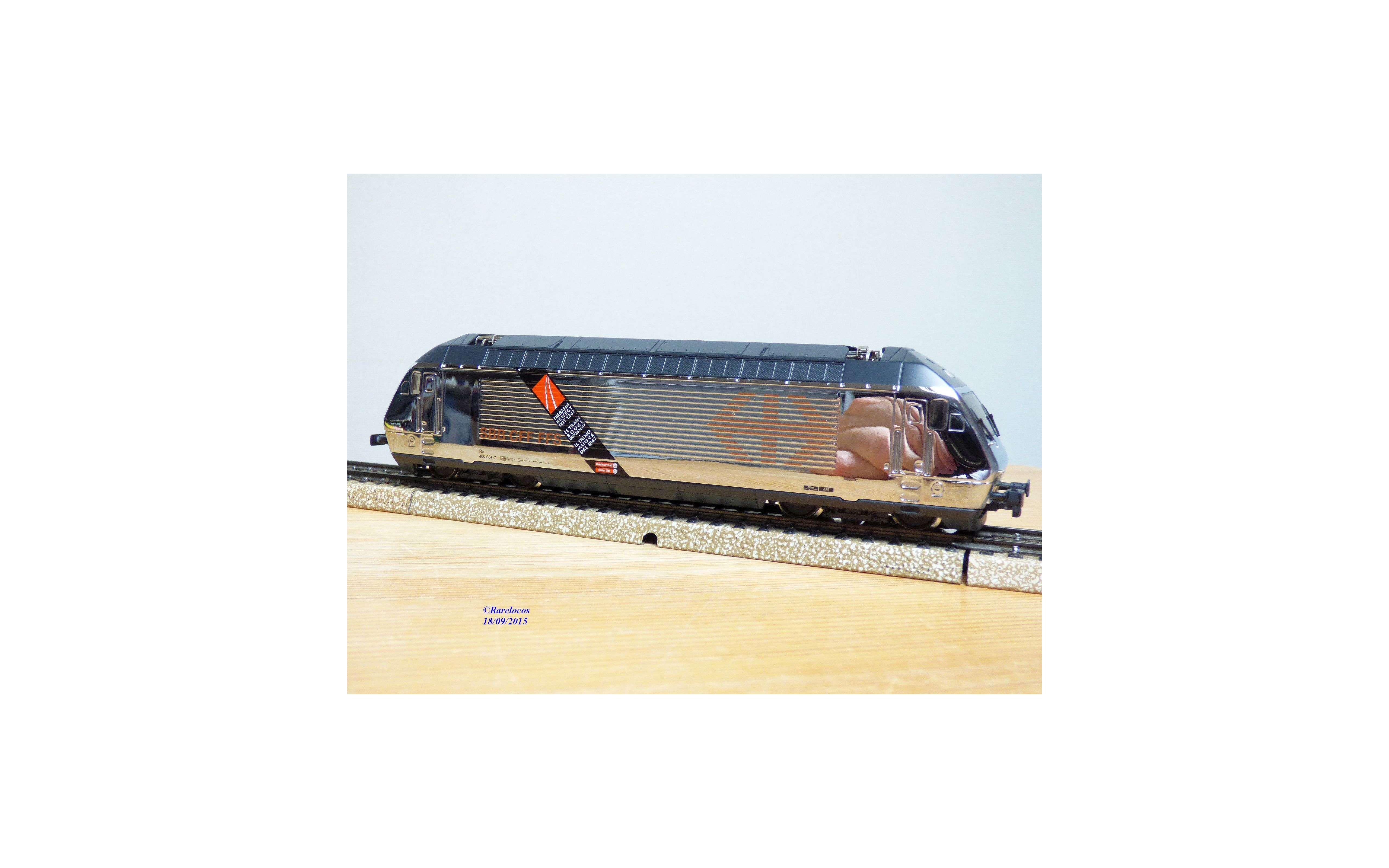 Motrice Bo Bo série Re 460 des chemins de fer suisses ( SBB/CFF/FFS ), tout en métal, livrée chromée à toit gris, prise de courant par rails ou caténaire (testé OK ), cabines aménagées avec figurine de conducteur, immatriculation : Re 460 084-7 , notice et certificat présents, boîte d'origine en état neuf .