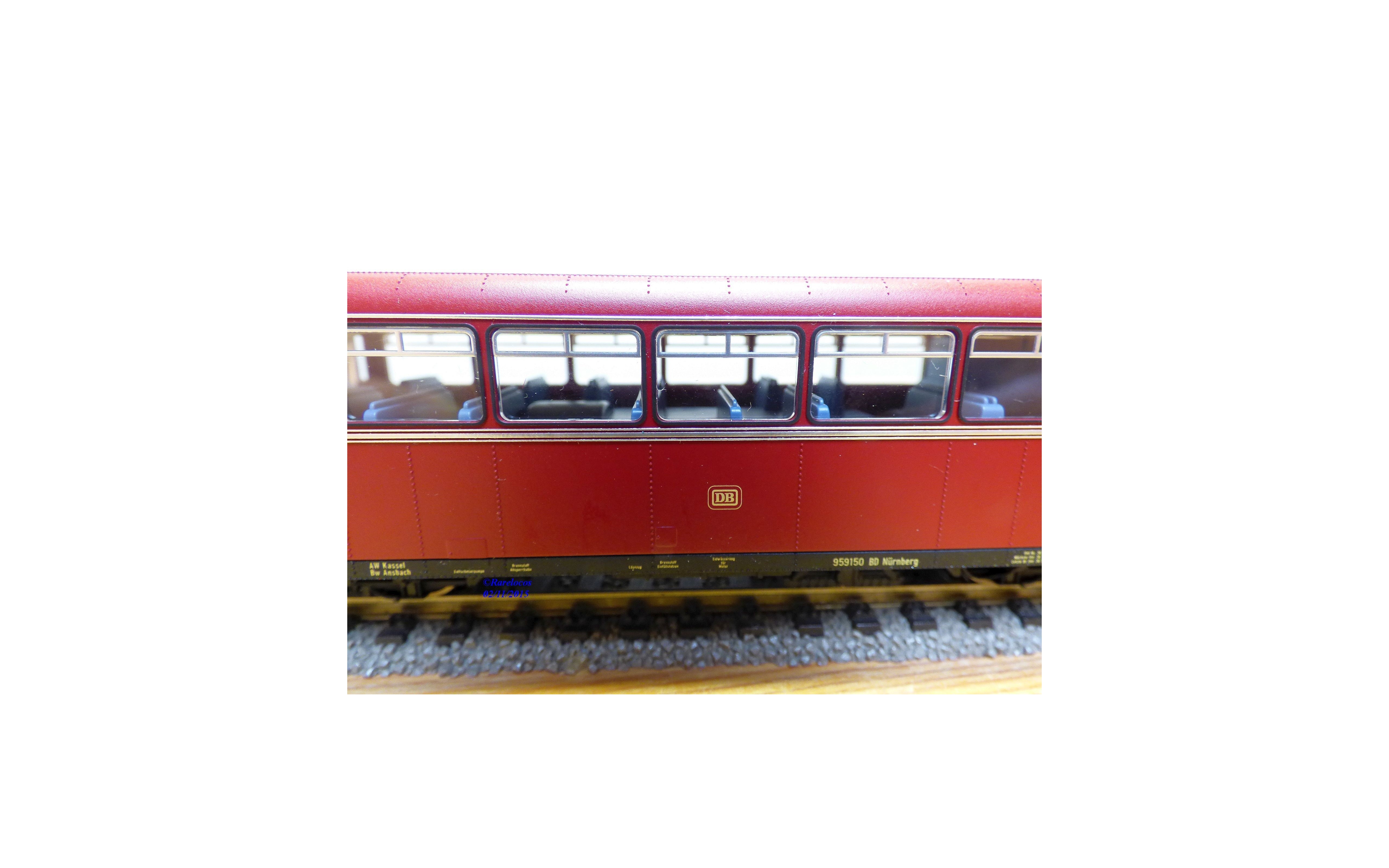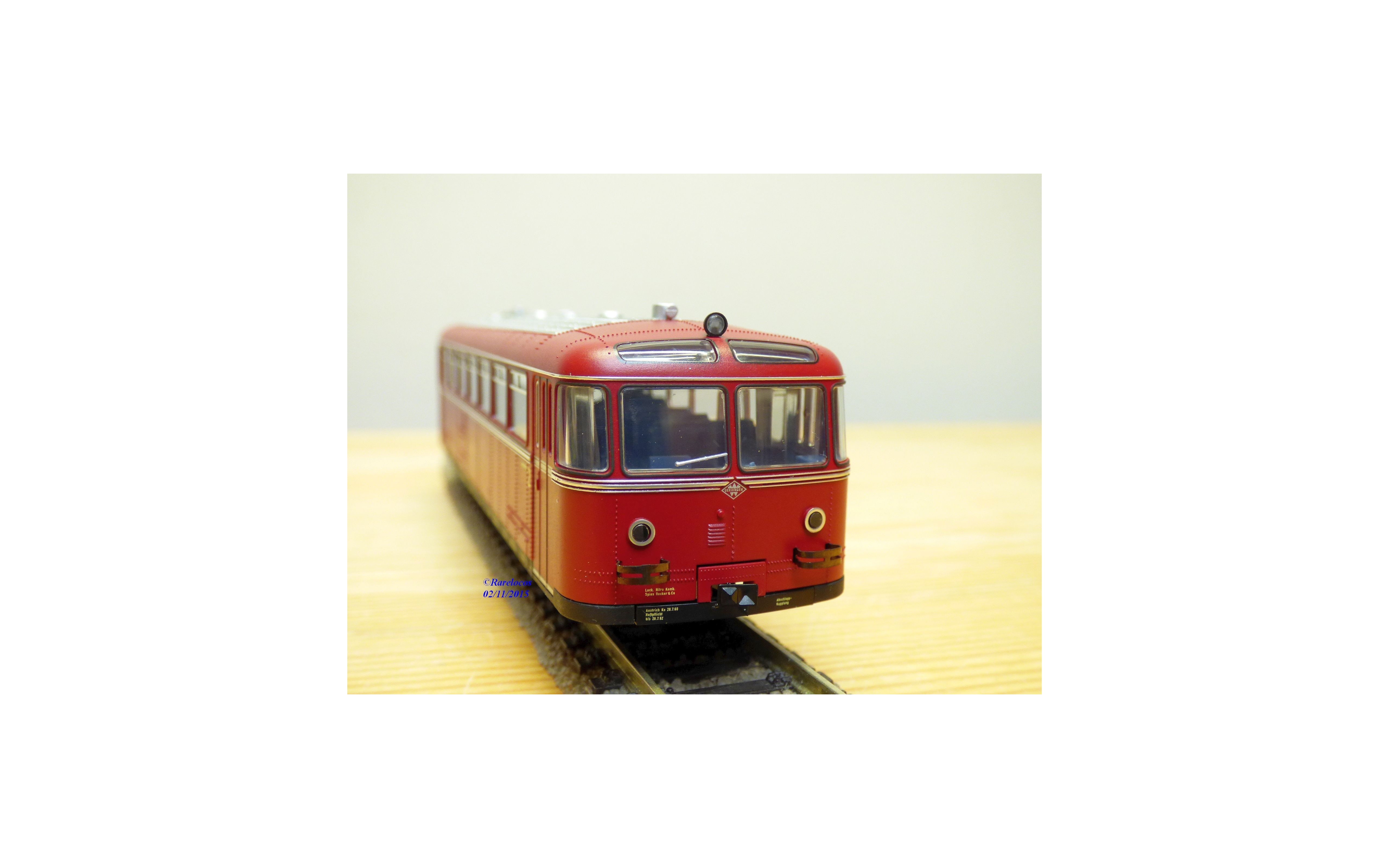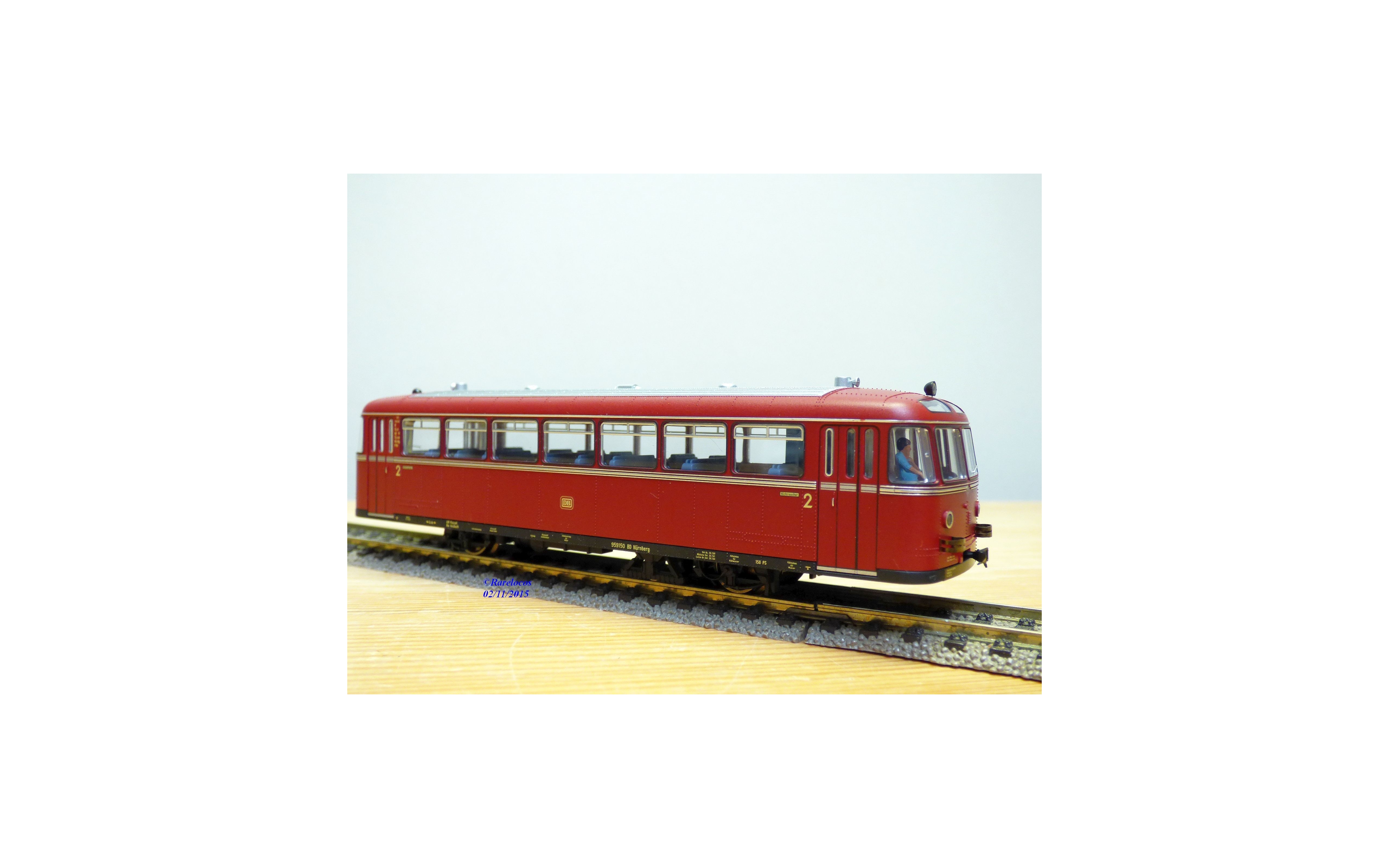Autorail série VT 95 ( Schienenbus ) des chemins de fer allemands ( DB), livrée lie de vin à toit gris argent, aménagement et éclairage intérieur, immatriculation:959150 , notice présente, boîte d'origine en état neuf .