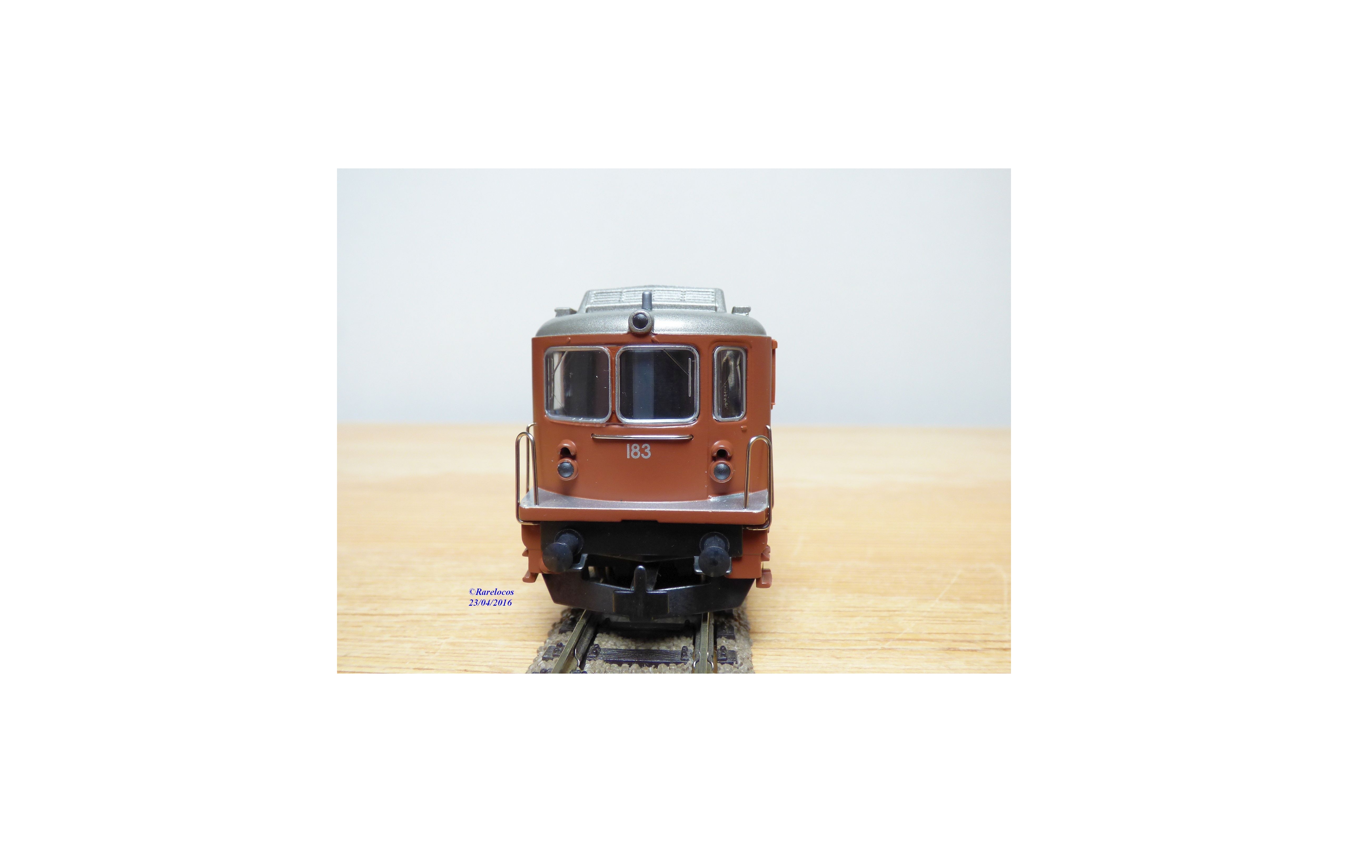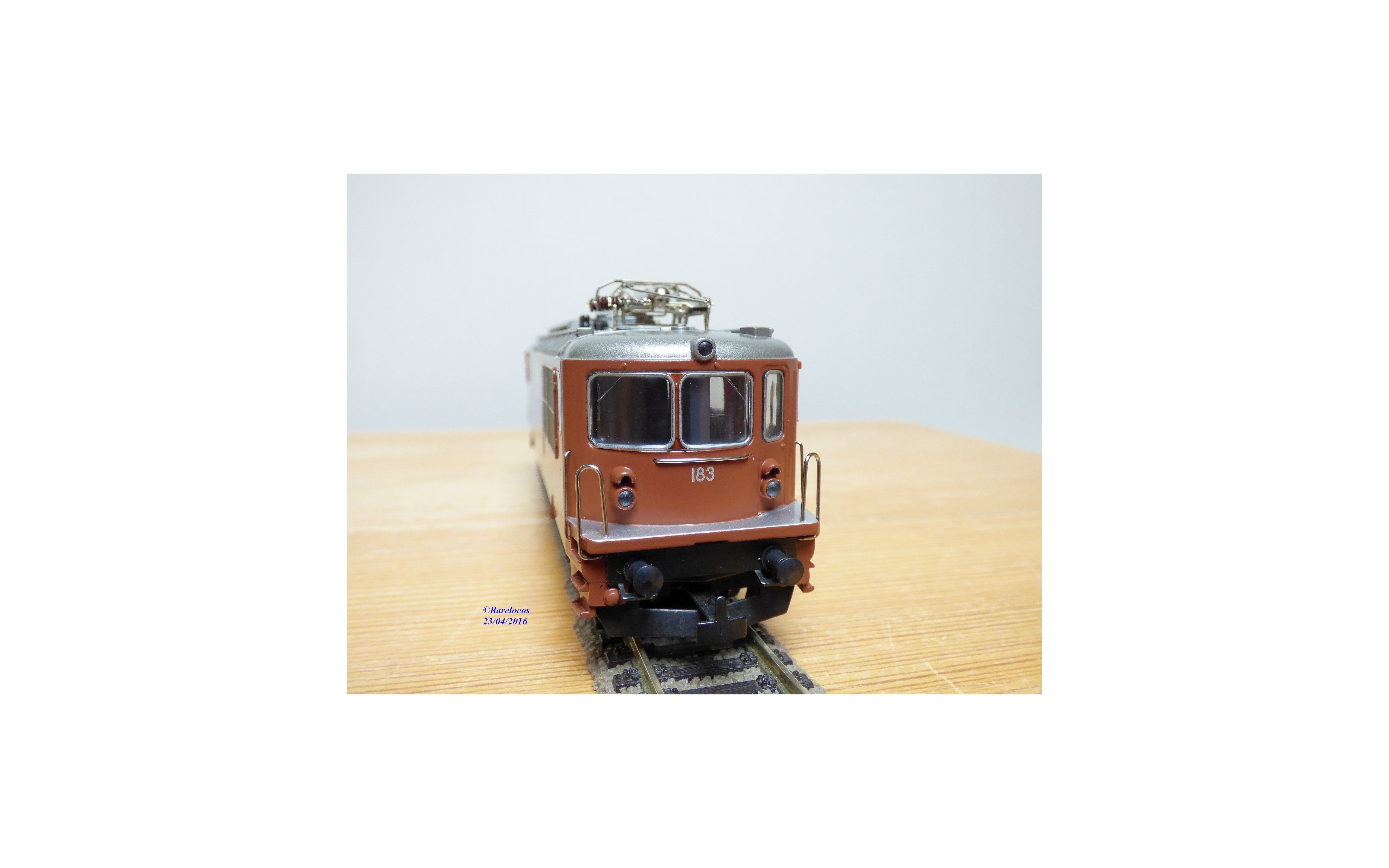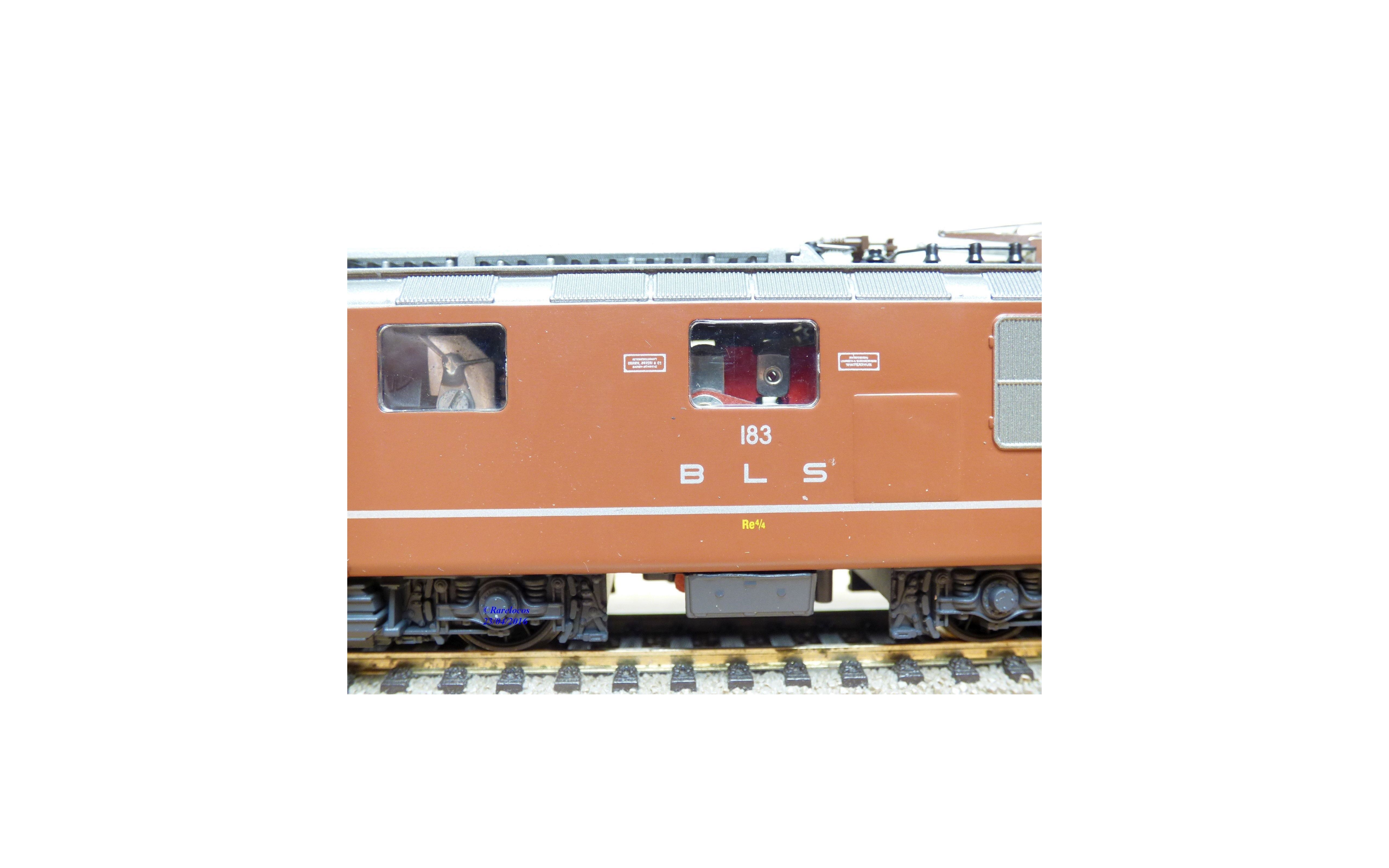 Motrice Bo Bo monopantographe série Re 4/4 des chemins de fer suisses ( BLS : Bern Lötschberg Simplon), tout en métal, équipée d' un décodeur digital, livrée brune à toit gris argent, prise de courant par rails ou caténaires, immatriculation : 183, baptisée KANDERSTEG, notice présente, boîte d'origine en état neuf.