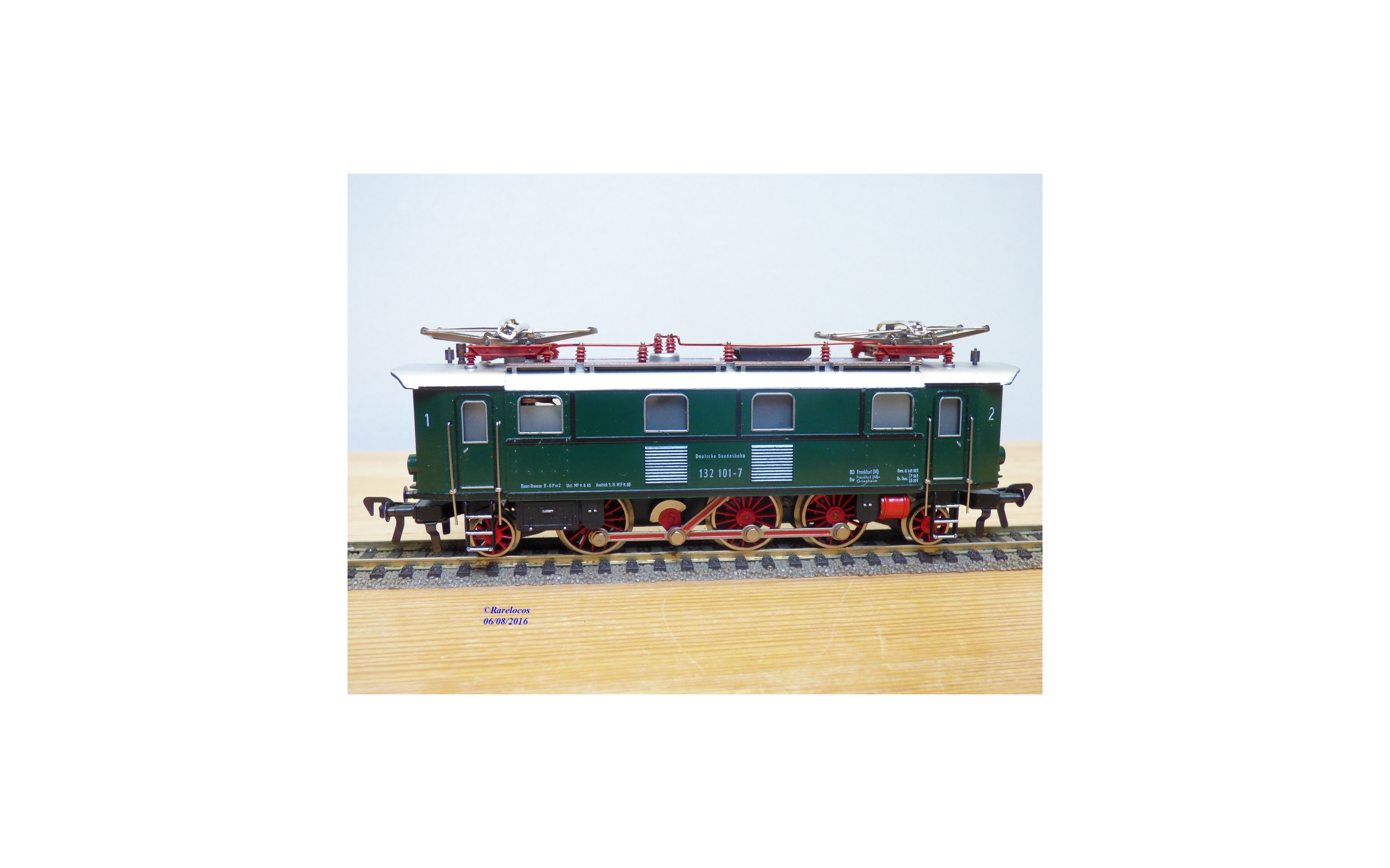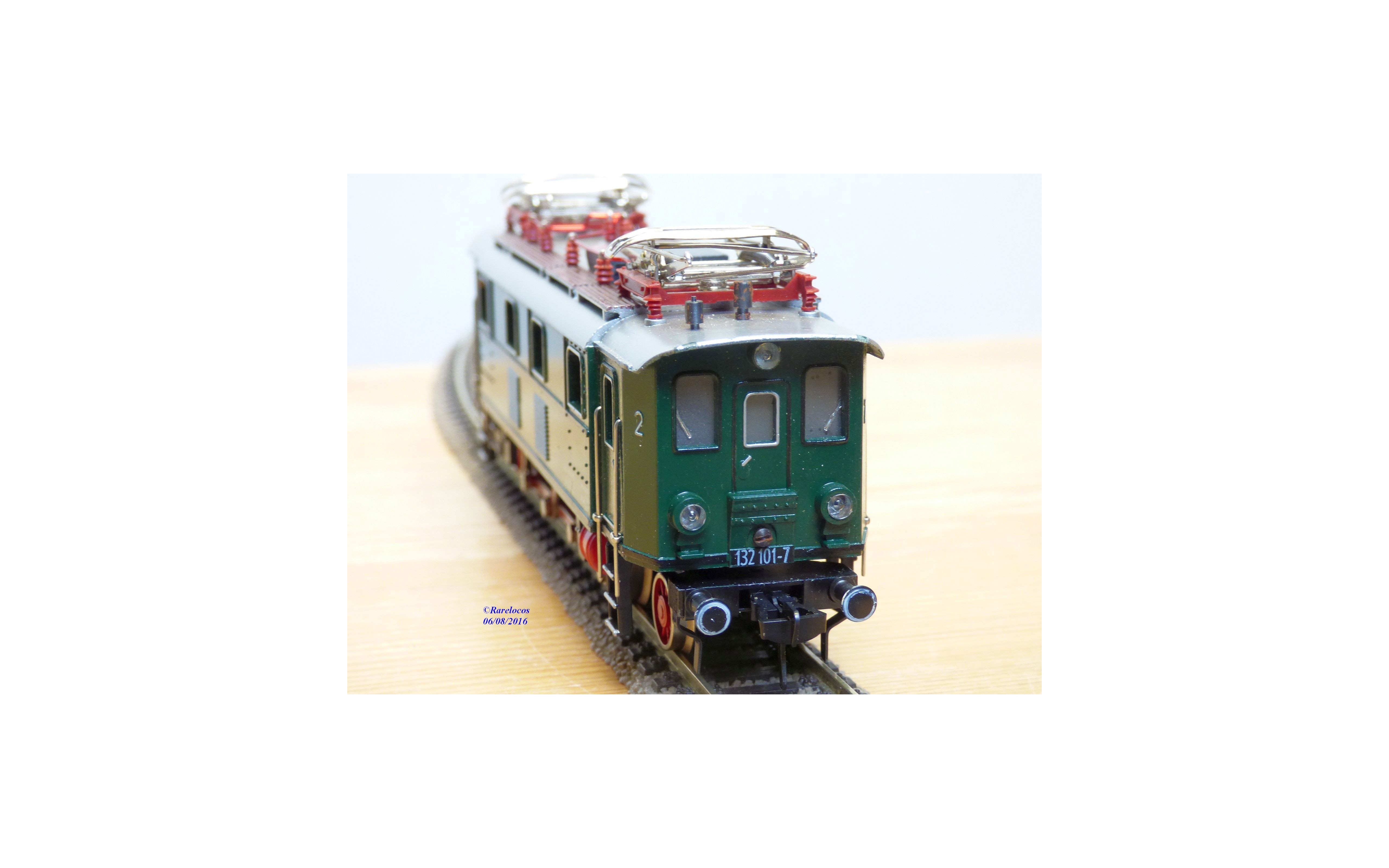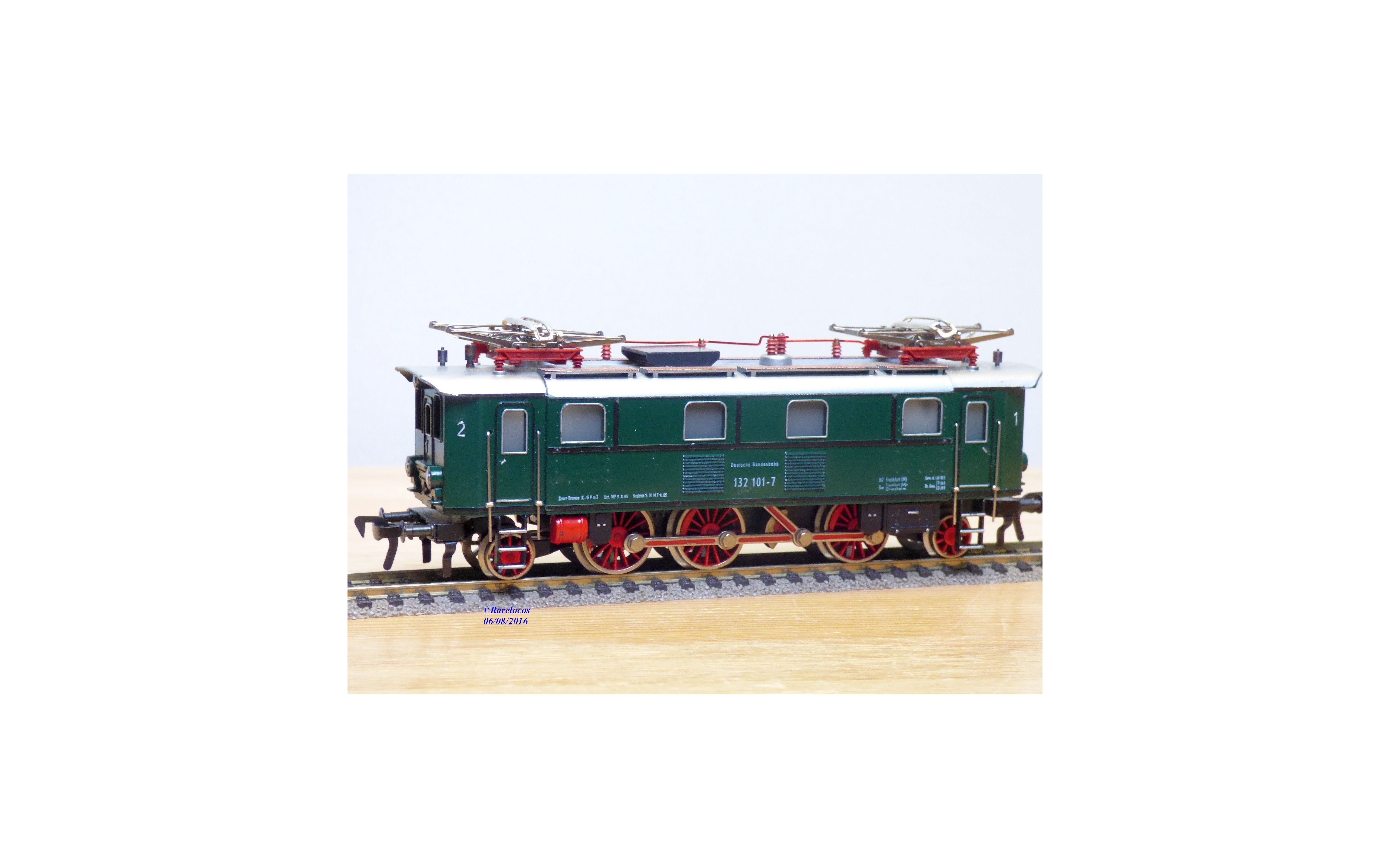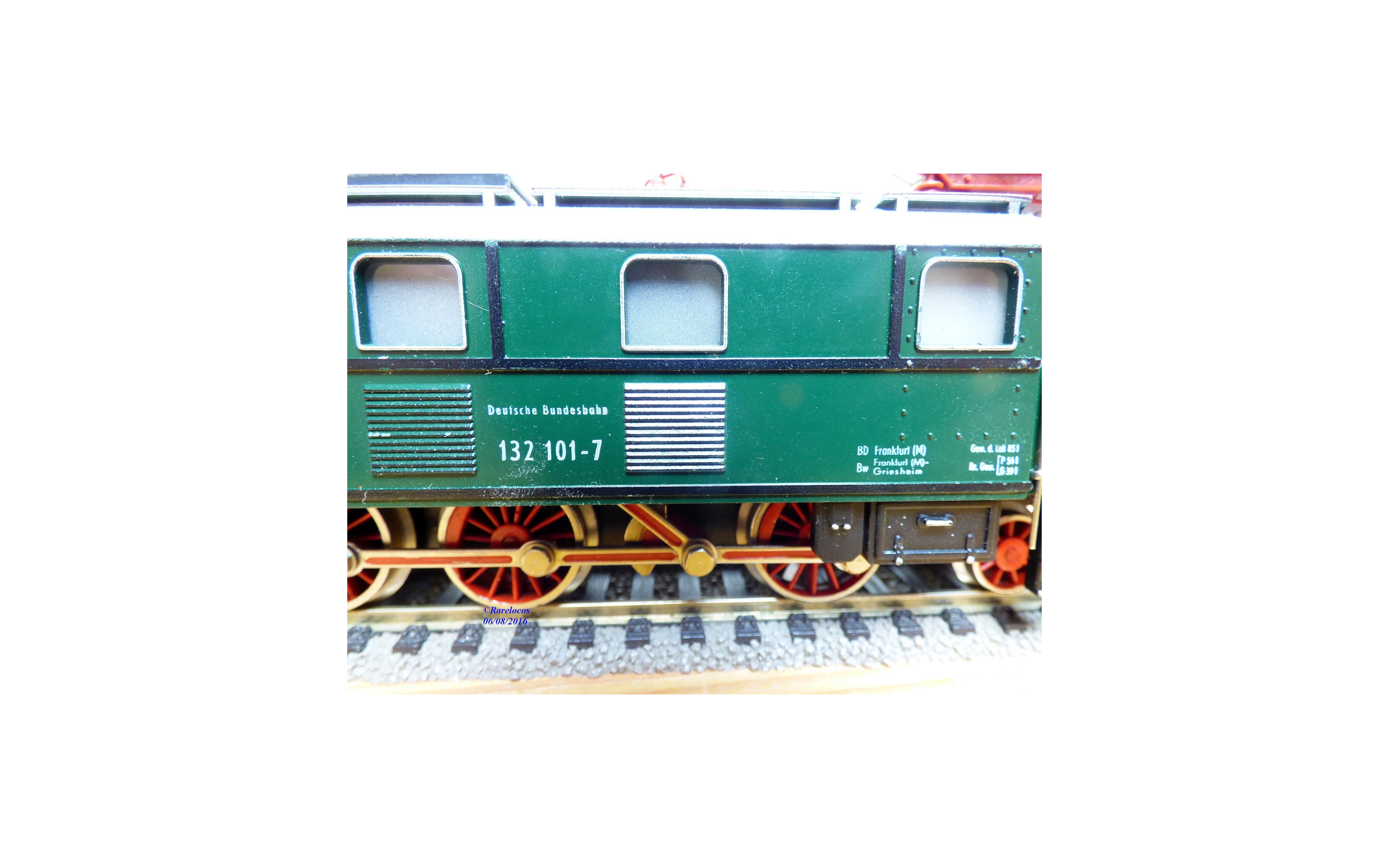 Classique motrice 1C1 série Br 132 des chemins de fer allemands ( DB), livrée verte à toit beige , tout en métal, prise de courant par rails ou caténaires (testé OK ), immatriculation :132 101-7, notice présente, boîte d'origine en état moyen.