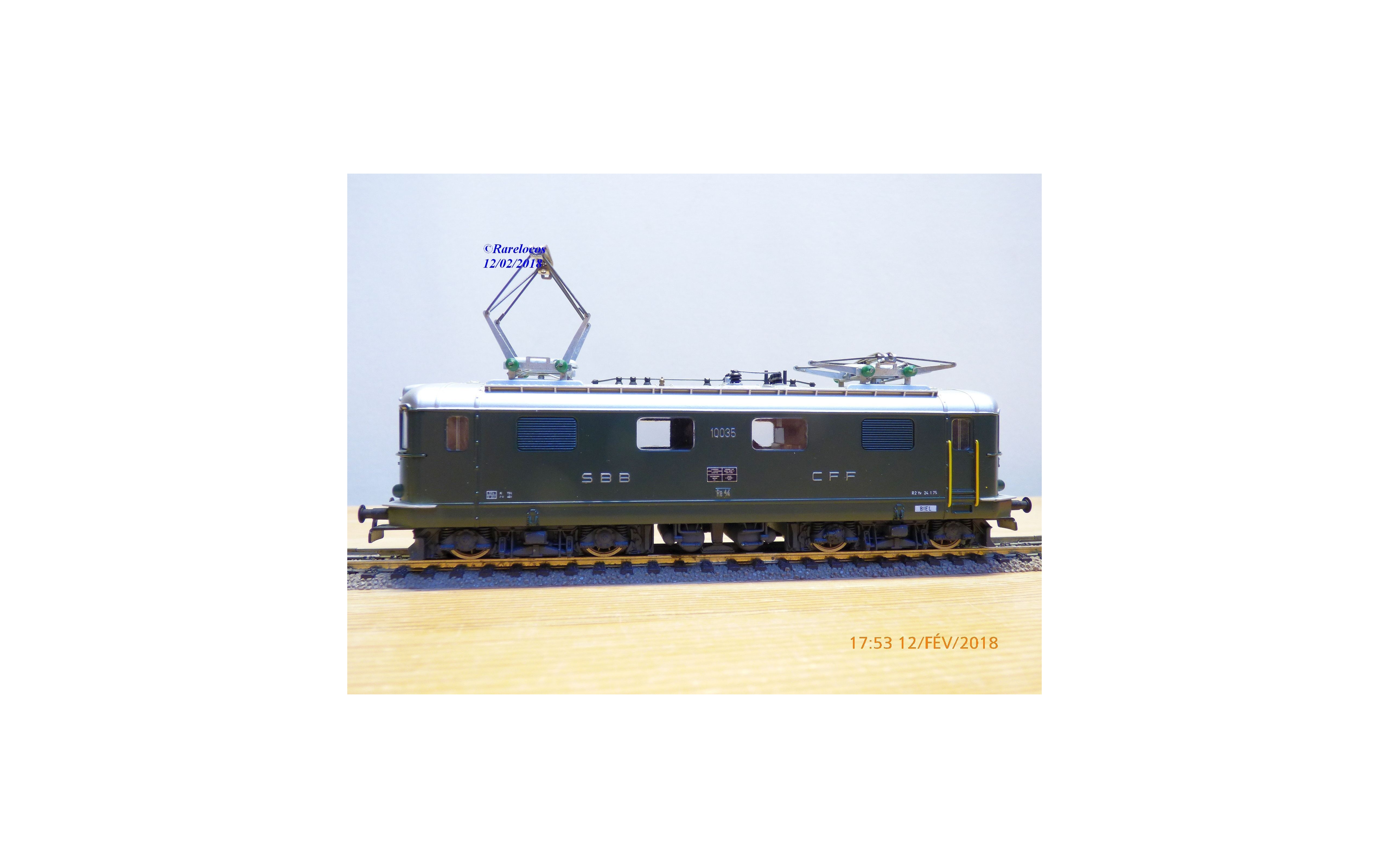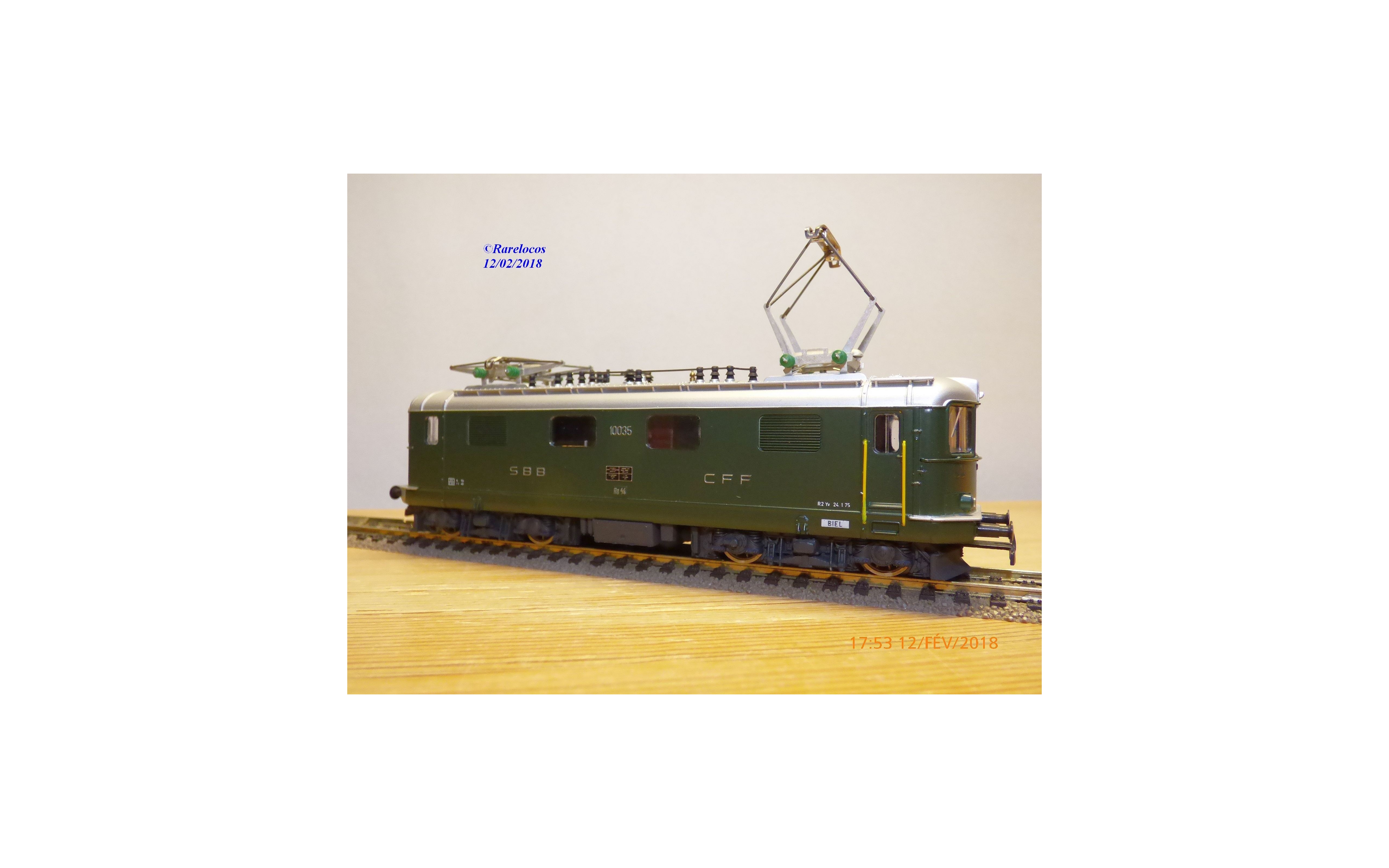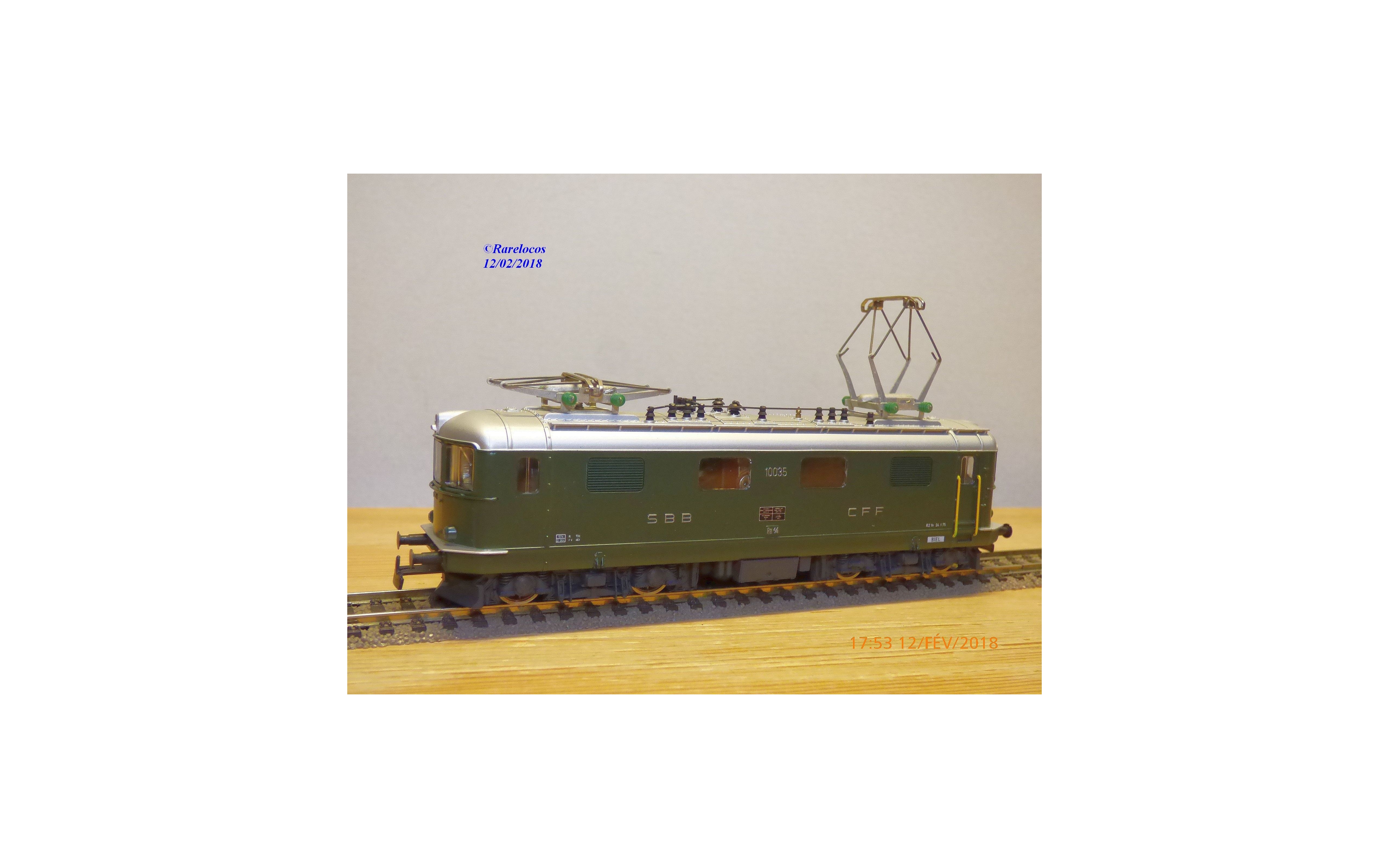 Motrice Bo Bo série Re 4/4 I des chemins de fer suisses ( SBB/CFF/FFS ), tout en métal, livrée vert sapin à toit gris argent, prise de courant par rails ou caténaire testé OK, immatriculation: 10035, boîte d'origine en excellent état .