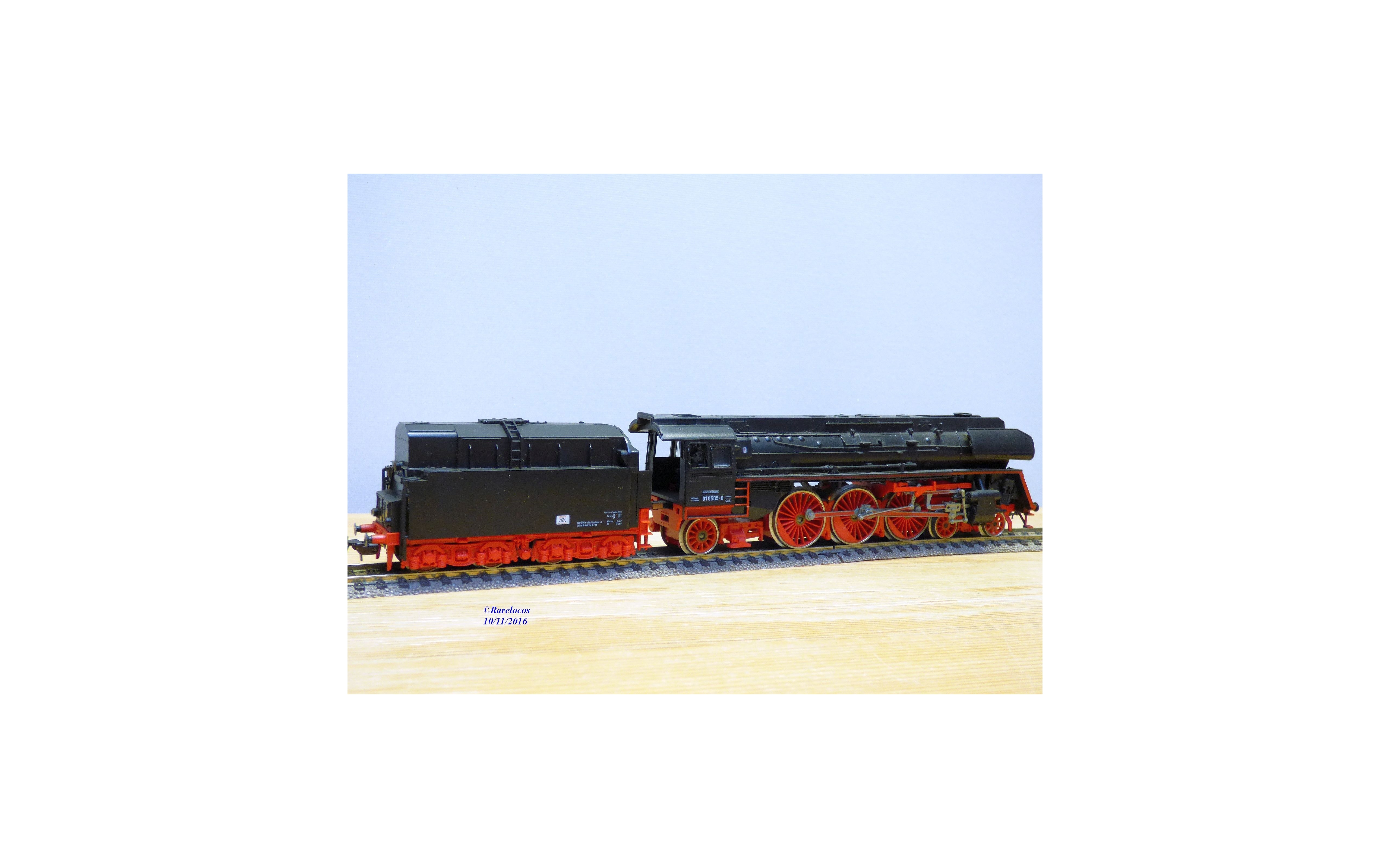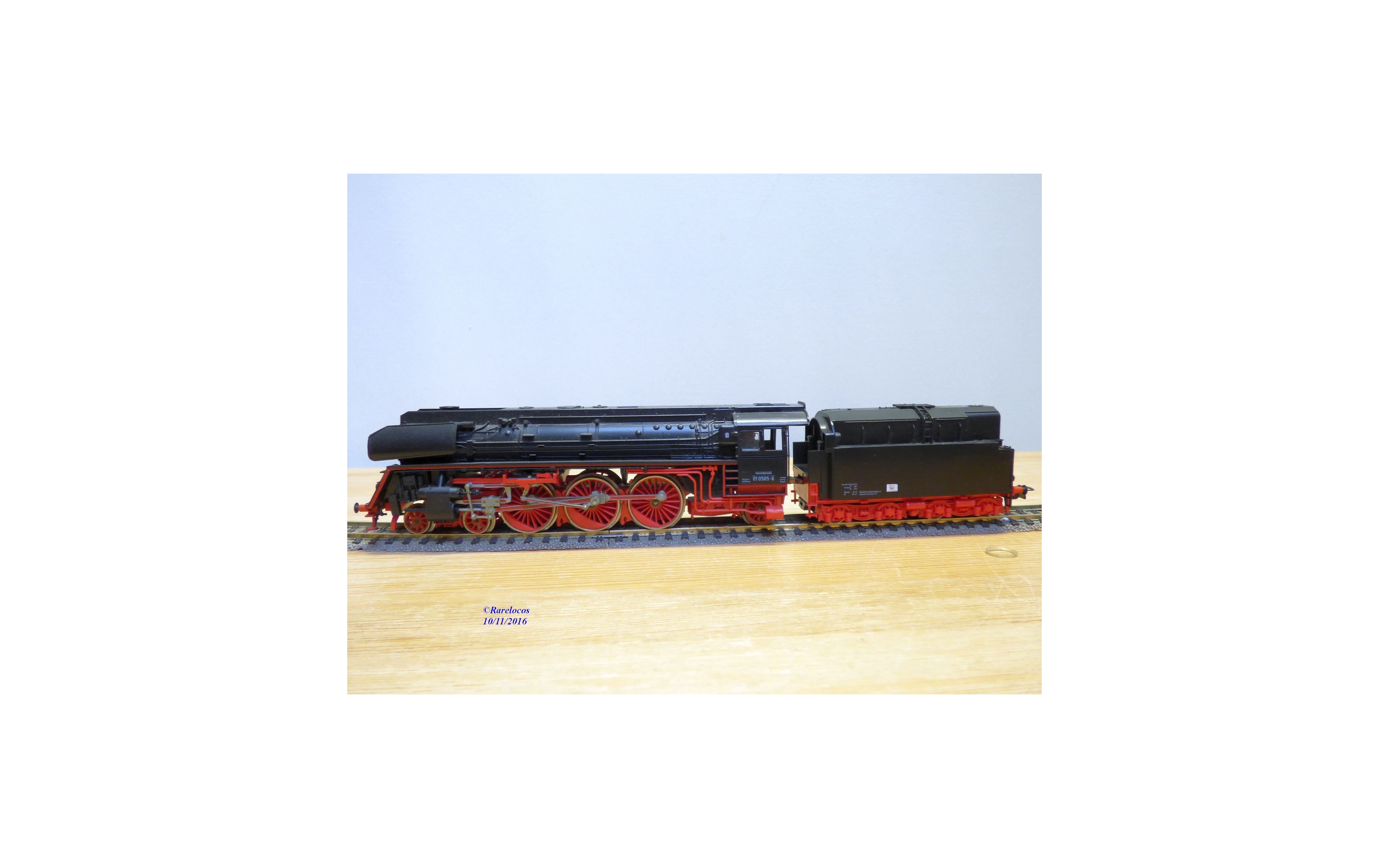 Locomotive Pacific 231 à chauffe au fuel série Br 01 des chemins de fer allemands ( DR ), livrée noire à soubassements rouges,immatriculation : 01 0505-6, notice présente, boîte d'origine en excellent état .