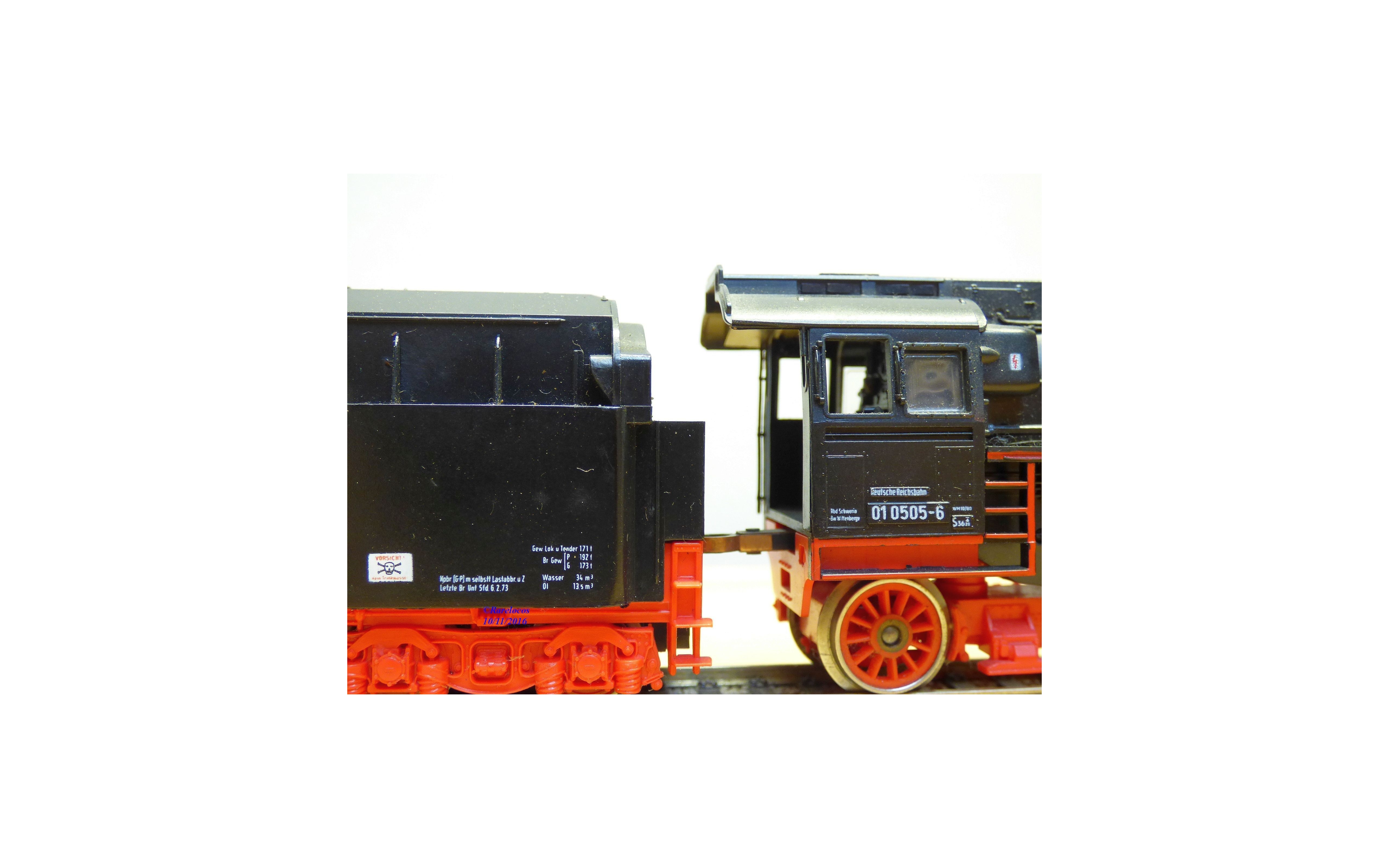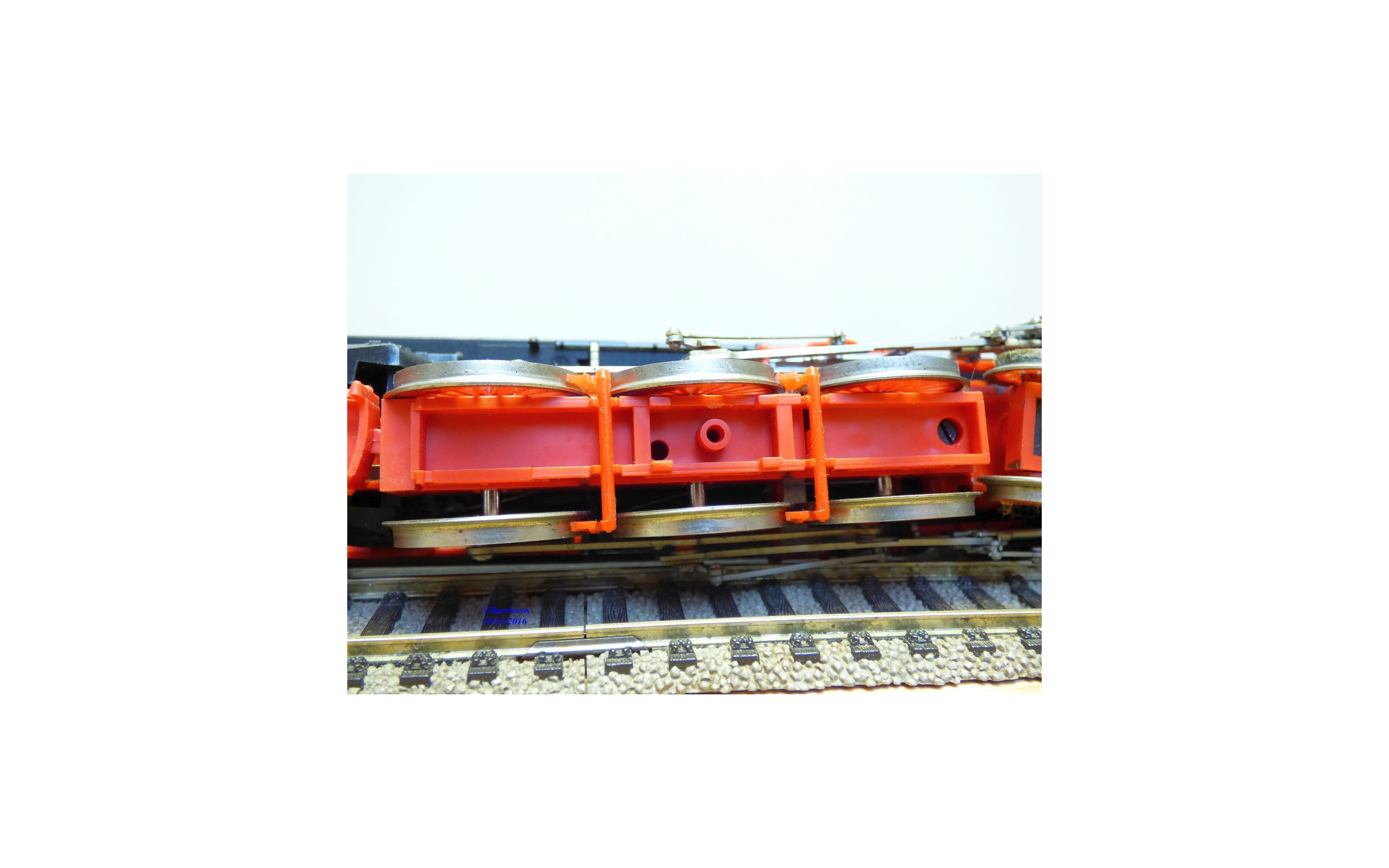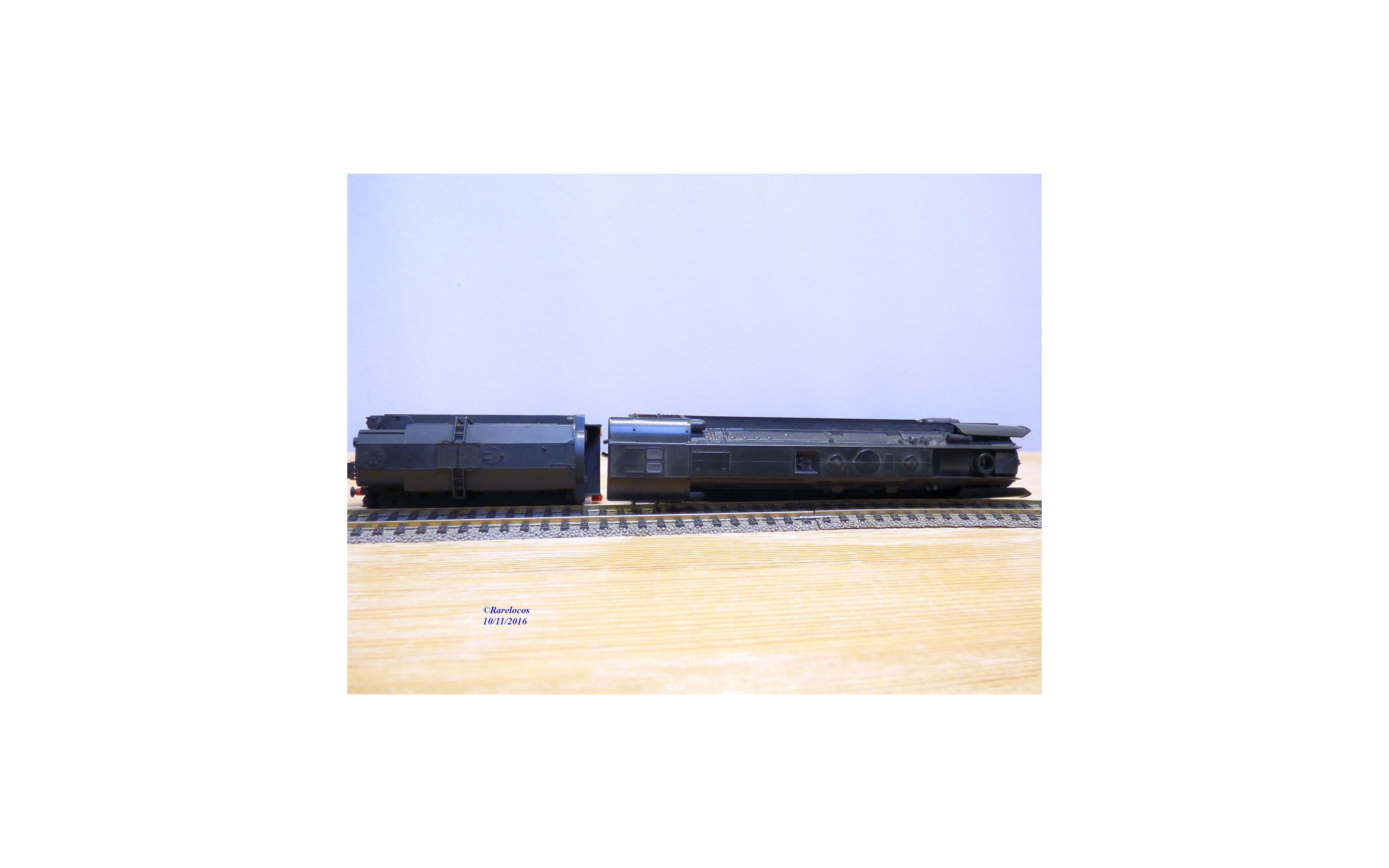 Besoin d'une petite toilette, 2 "diamants" phares manquent sur le tender et les 2 bandages d' origine n' ont pas supportés l' essai sur rails ( voir photos ).