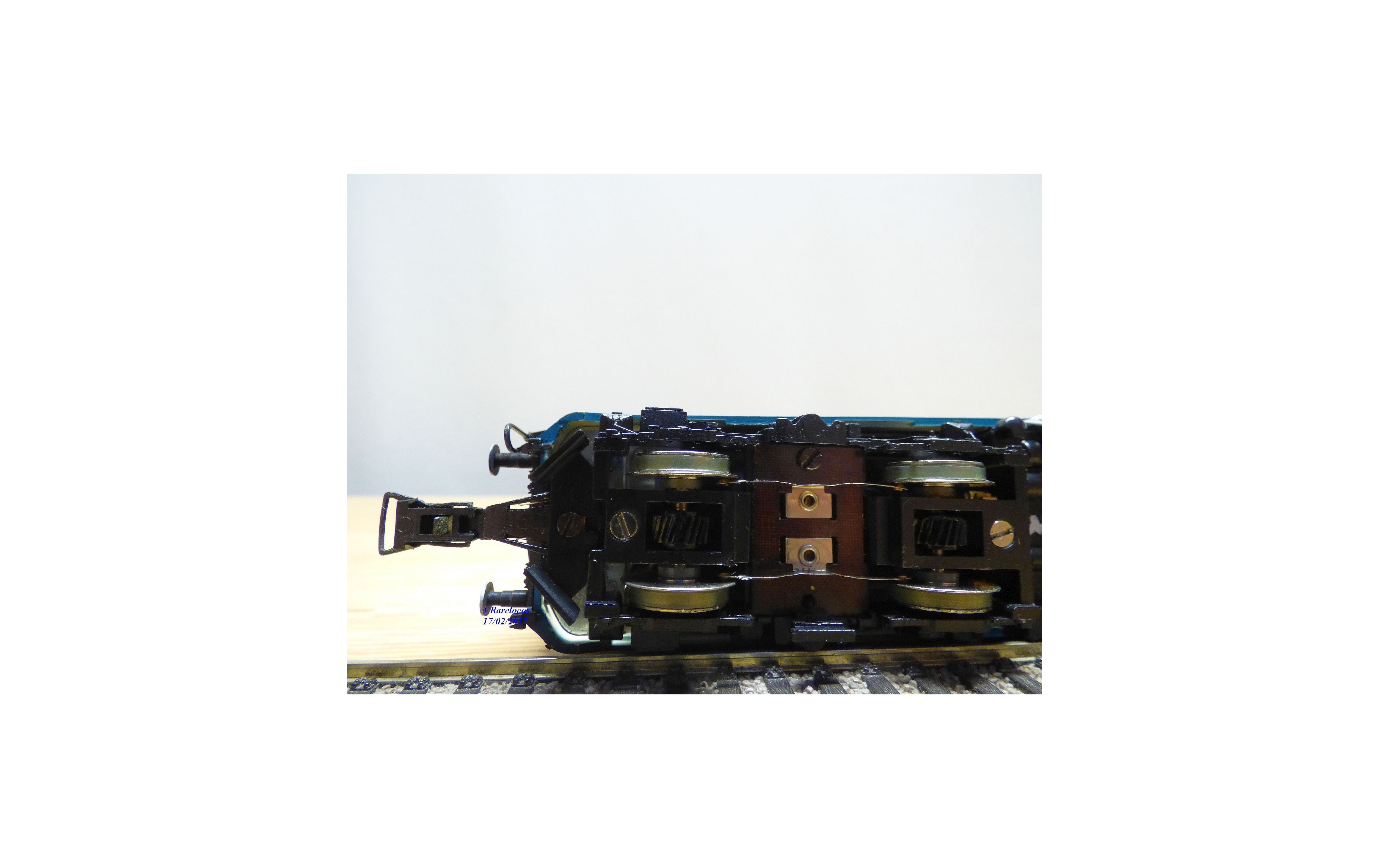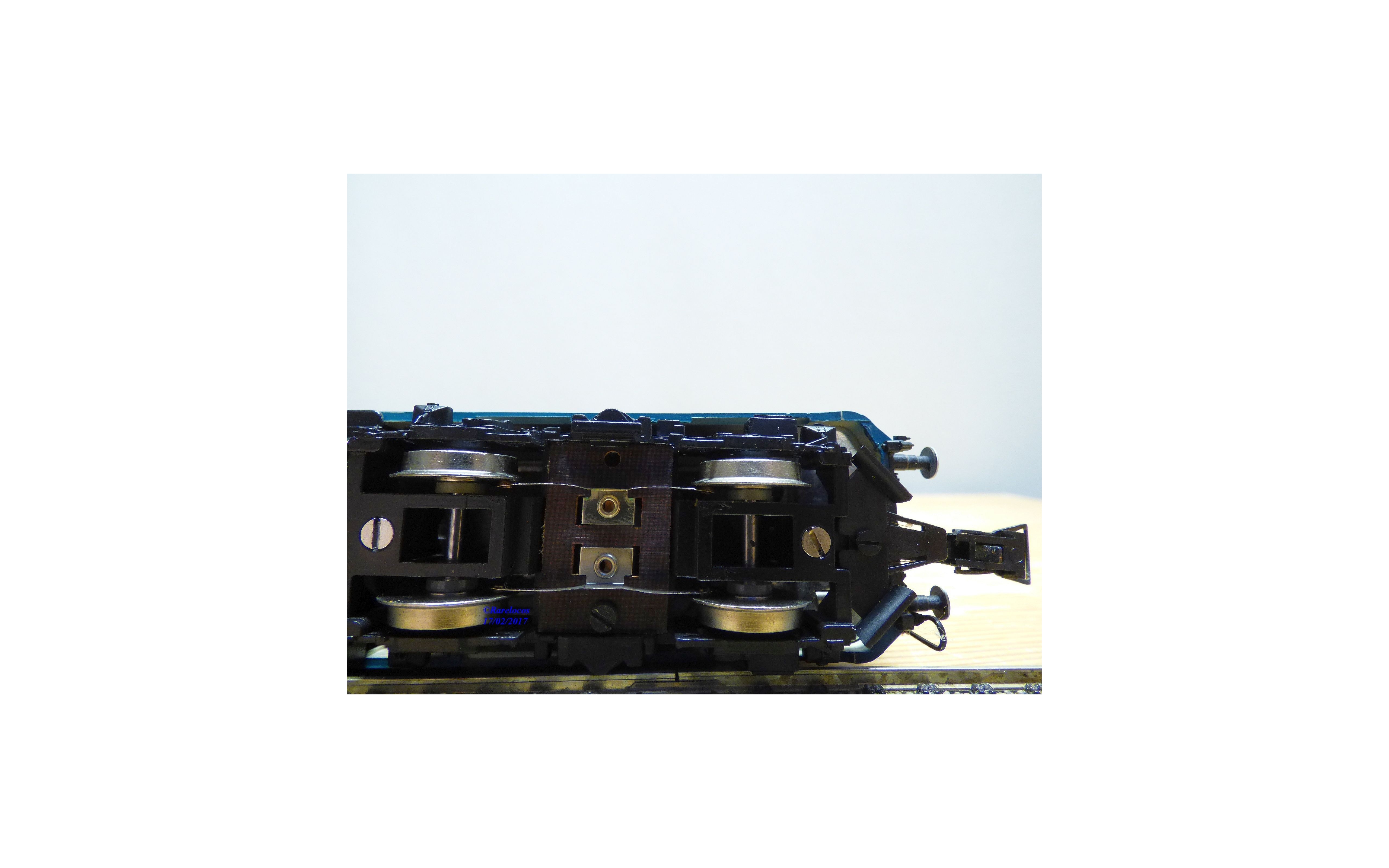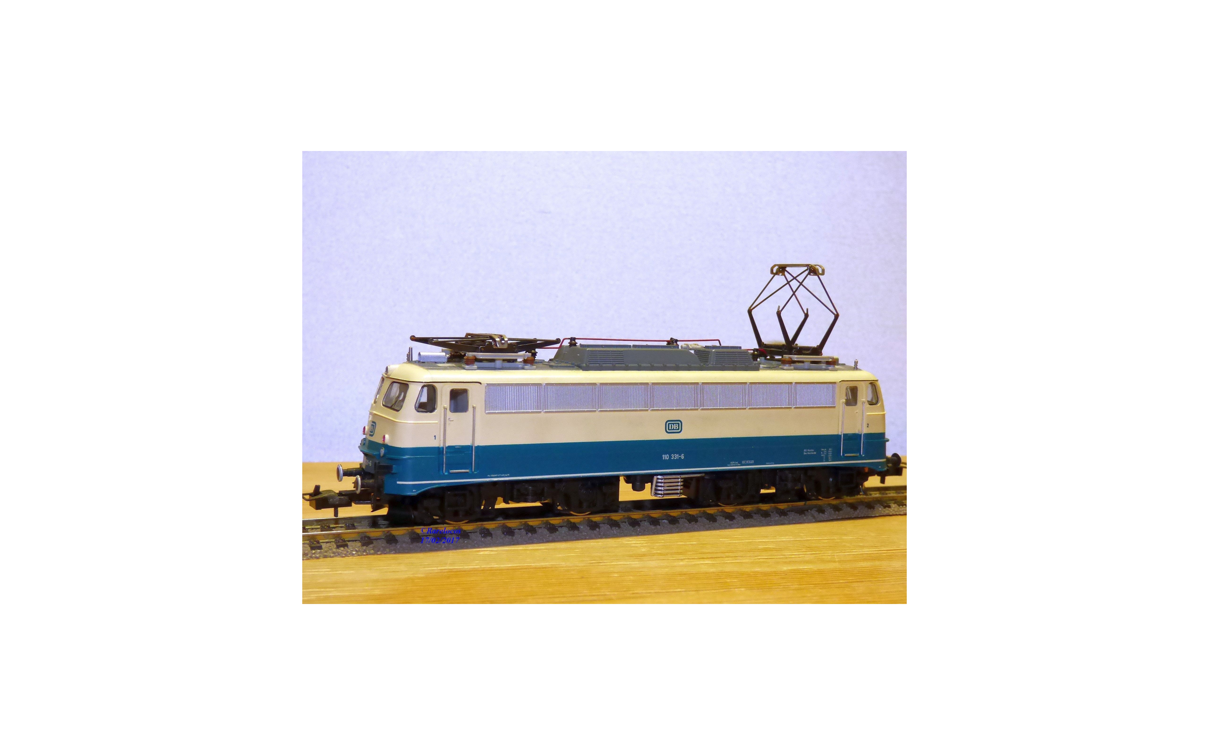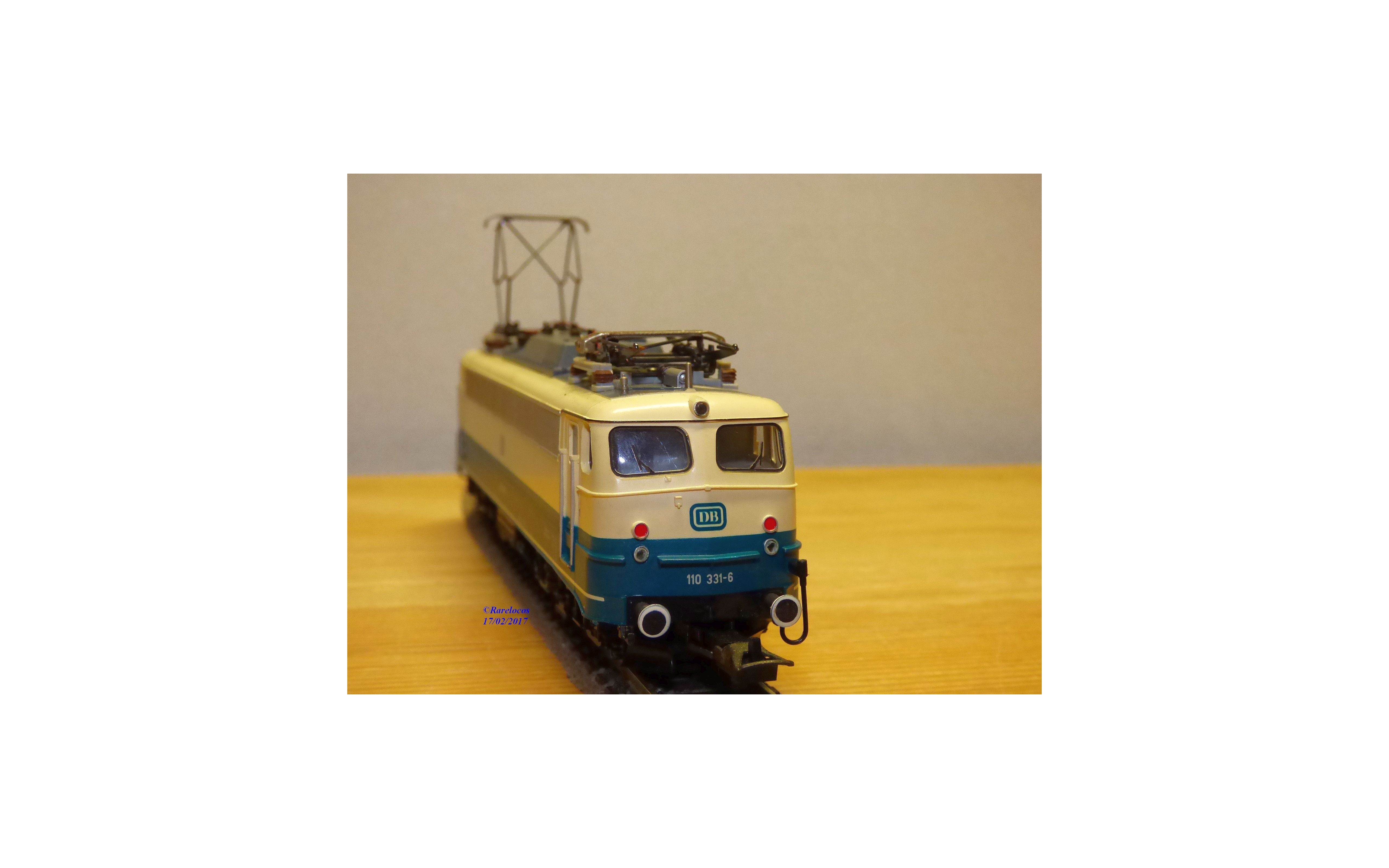 Motrice Bo Bo série E 110 des chemins de fer allemands ( DB ), livrée Rheingold turquoise et crême à toit gris argent, prise de courant par rails et caténaires testée OK, immatriculation : 110 331-6, notice présente, boîte d'origine en état neuf..